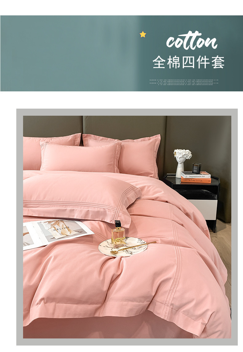 (总)2023新款全棉四件套-富贵花,奶昔白,温柔粉,星辰蓝