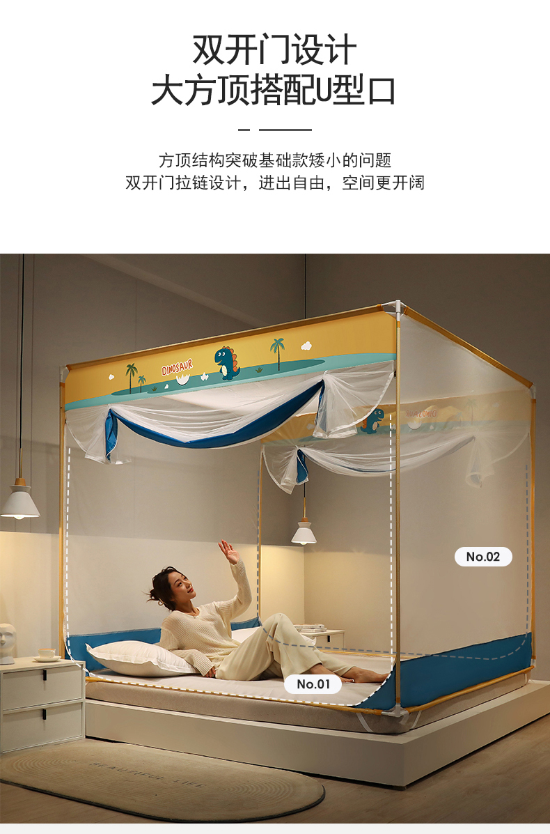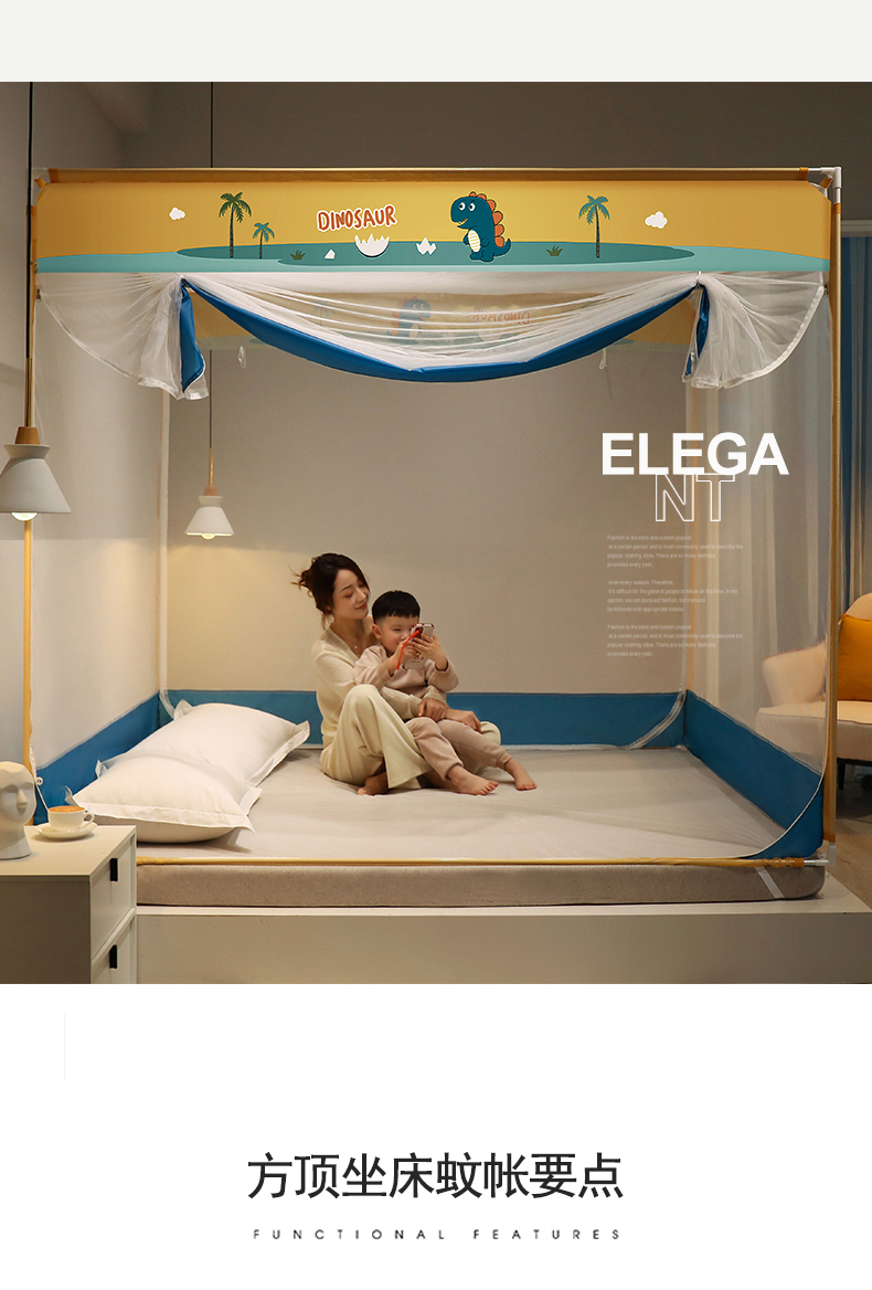 当前位置: 91家纺网 > 商品网购 > 床上用品 > 蚊帐 > 坐床式蚊帐 > 佳梦家纺 2023新款方顶印花坐床蚊帐 恐龙岛