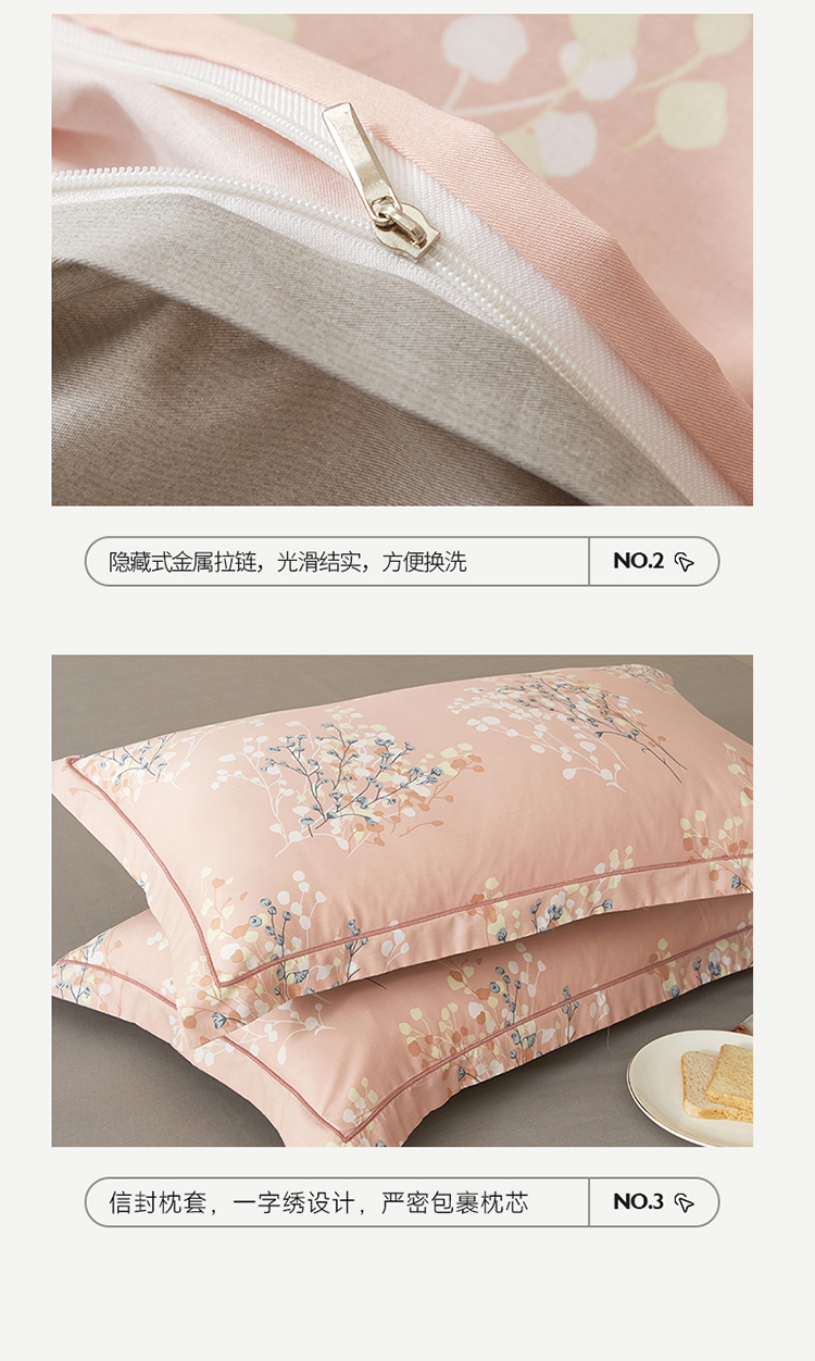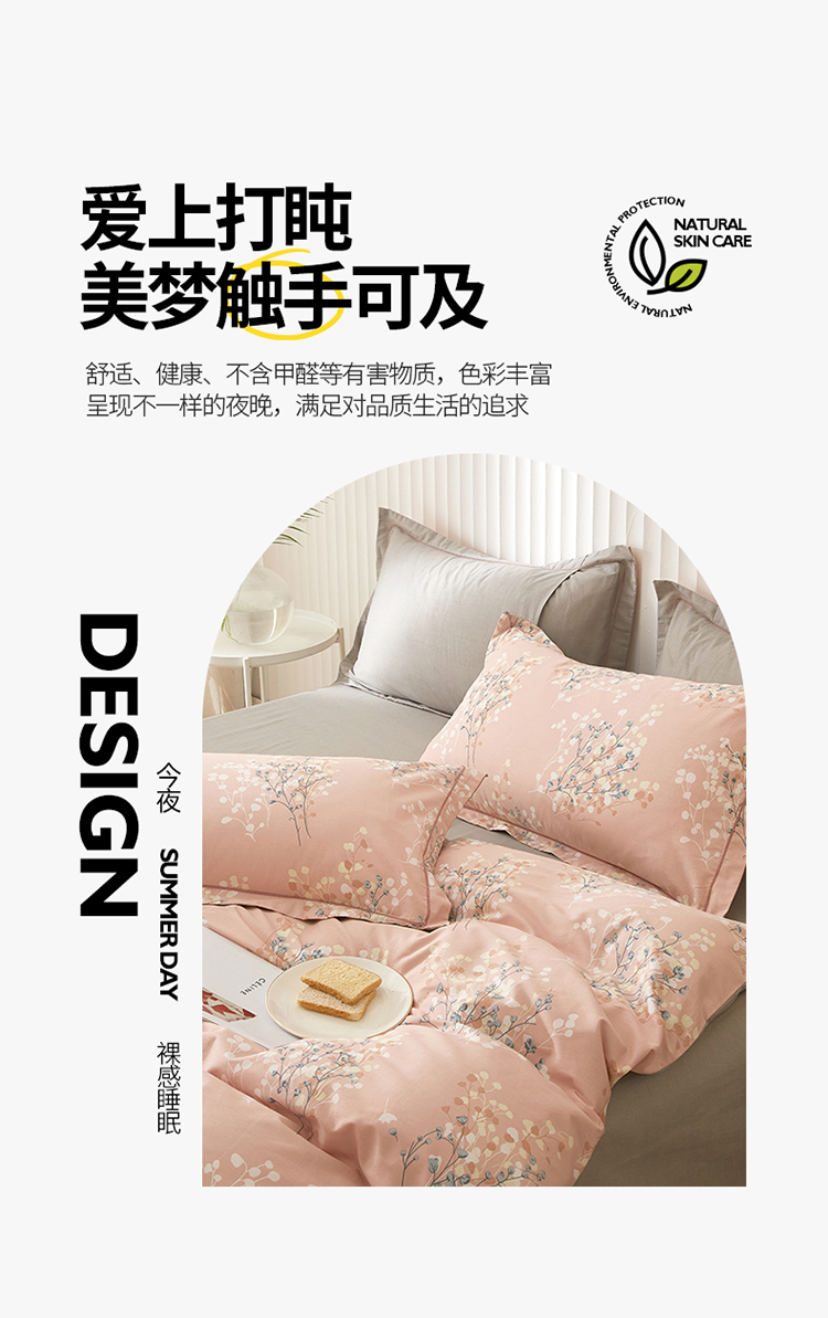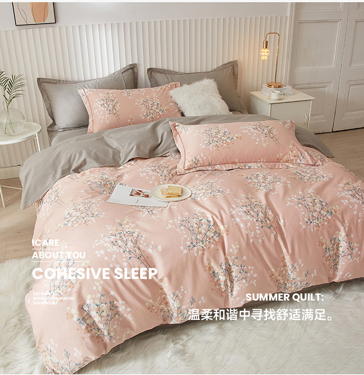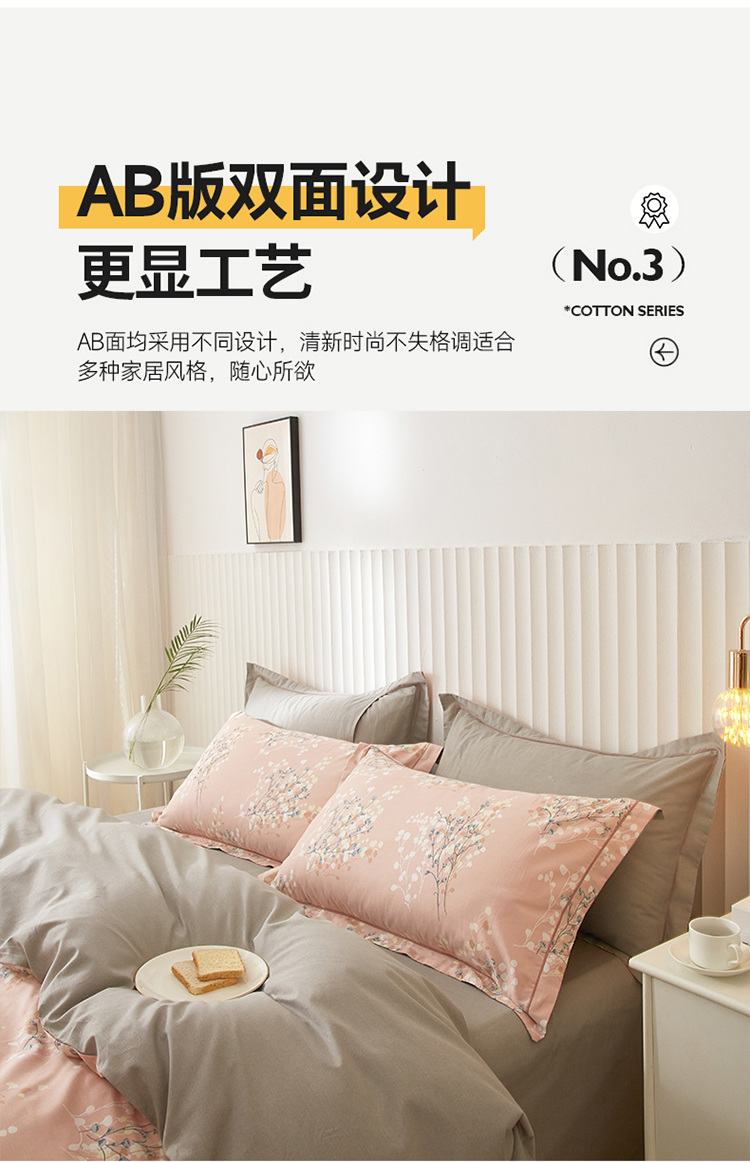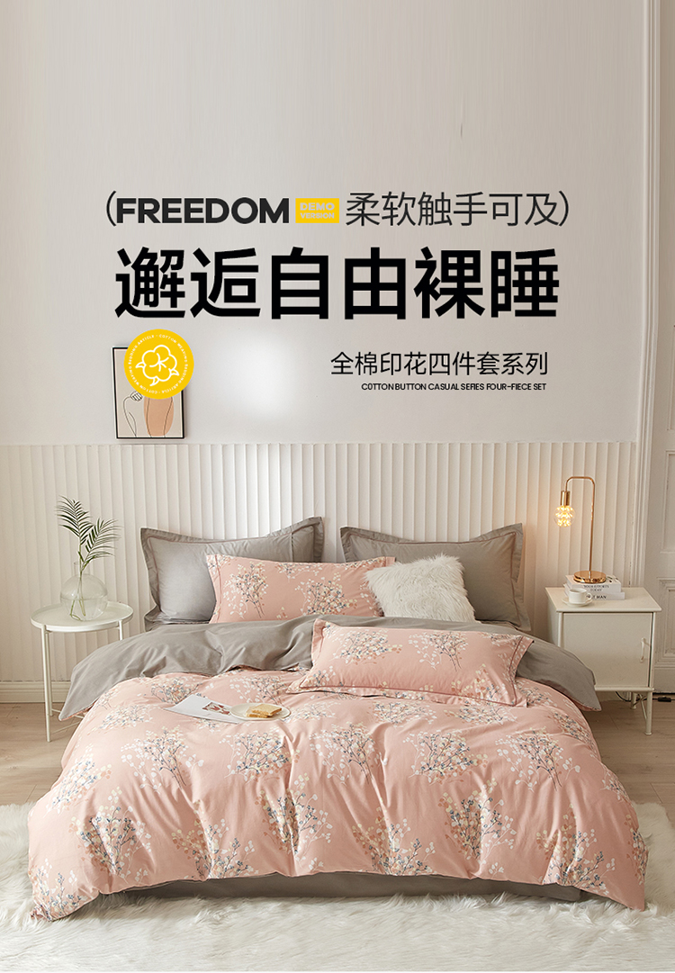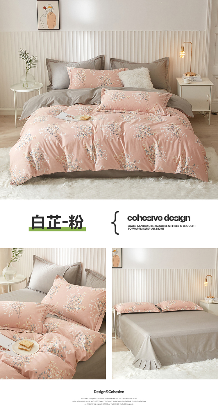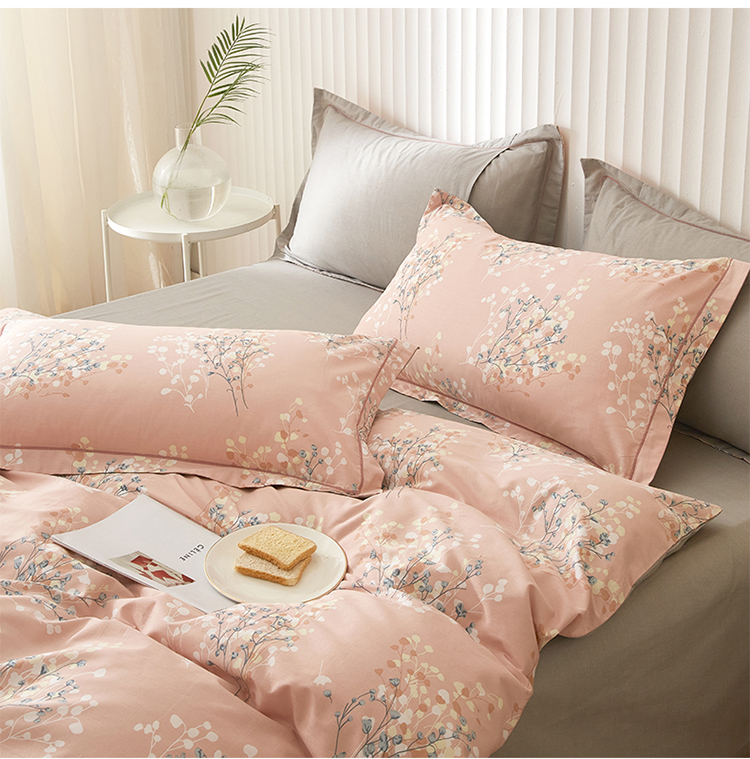沐白家居 2023全棉13376全棉印花四件套 白芷-粉