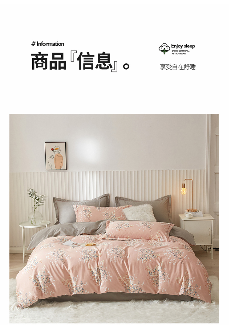 商品名称:沐白家居 2023全棉13376全棉印花四件套 白芷-粉