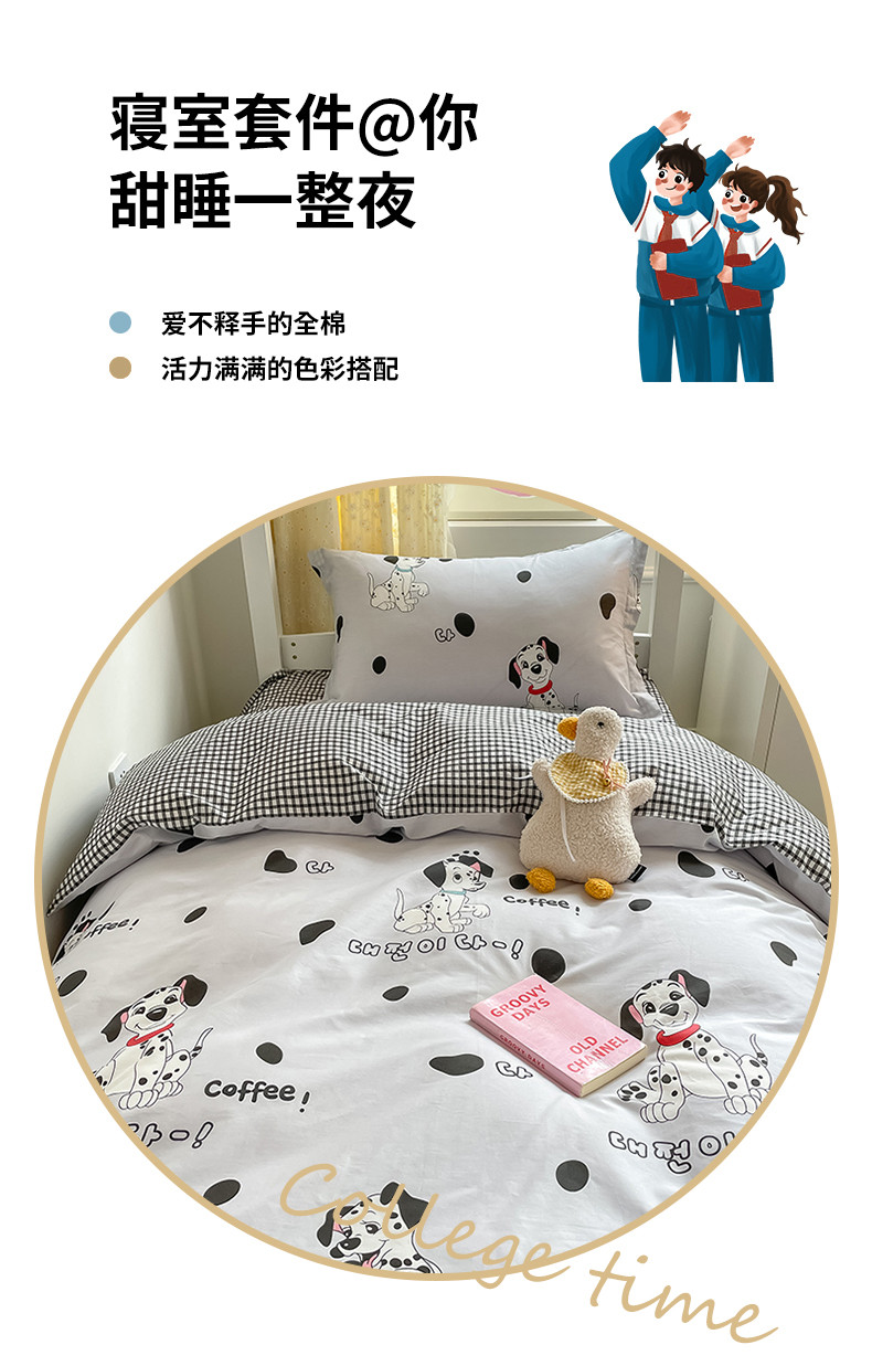 商品名称:金鑫汇 2023新款全棉宿舍印花三件套 小可爱