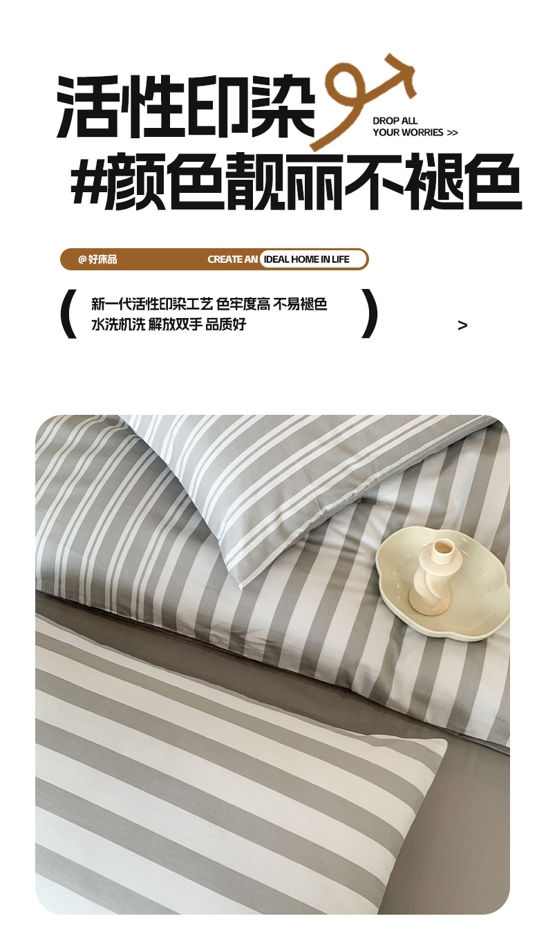 商品名称:澳萝拉 2024新款全棉条纹大版四件套 椰子灰