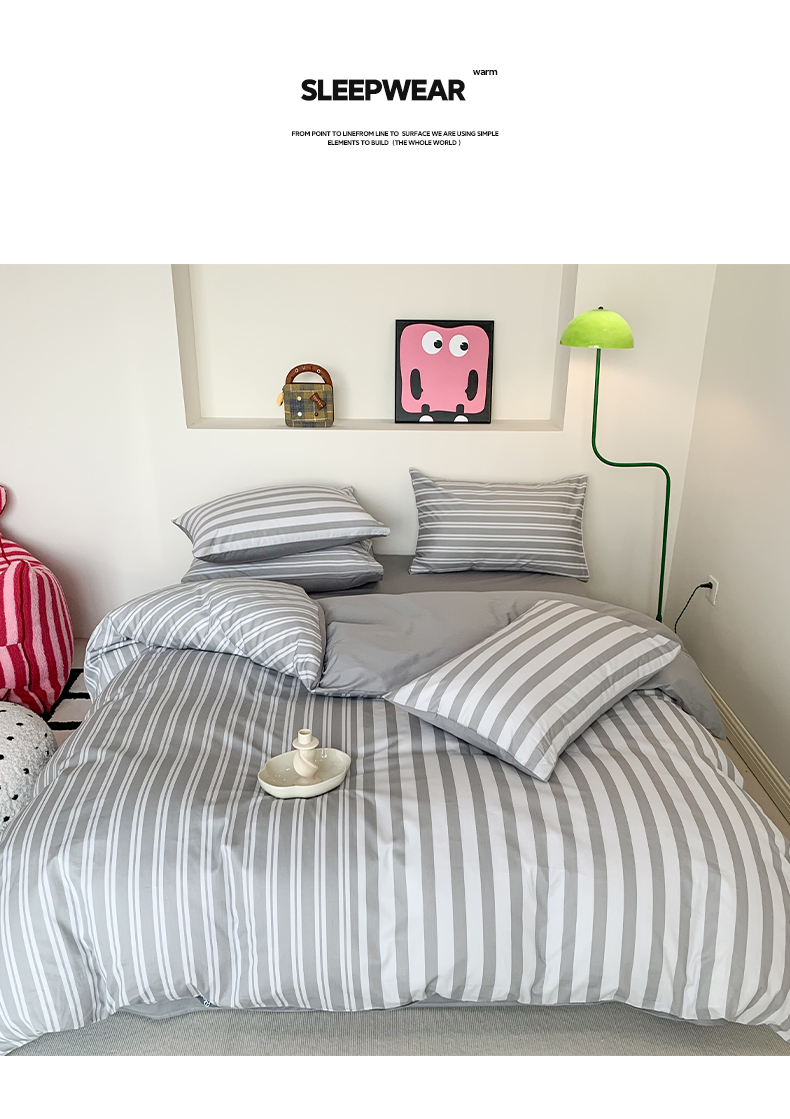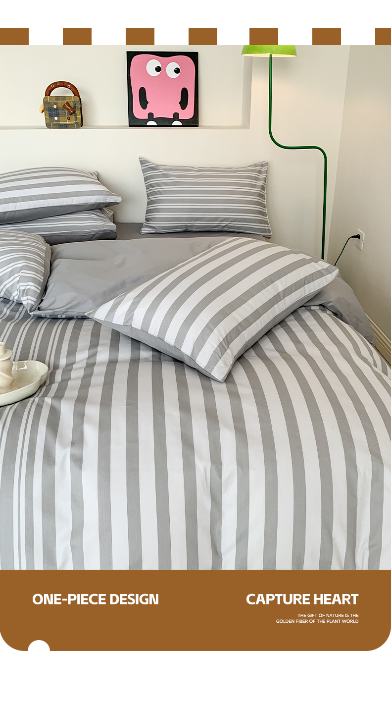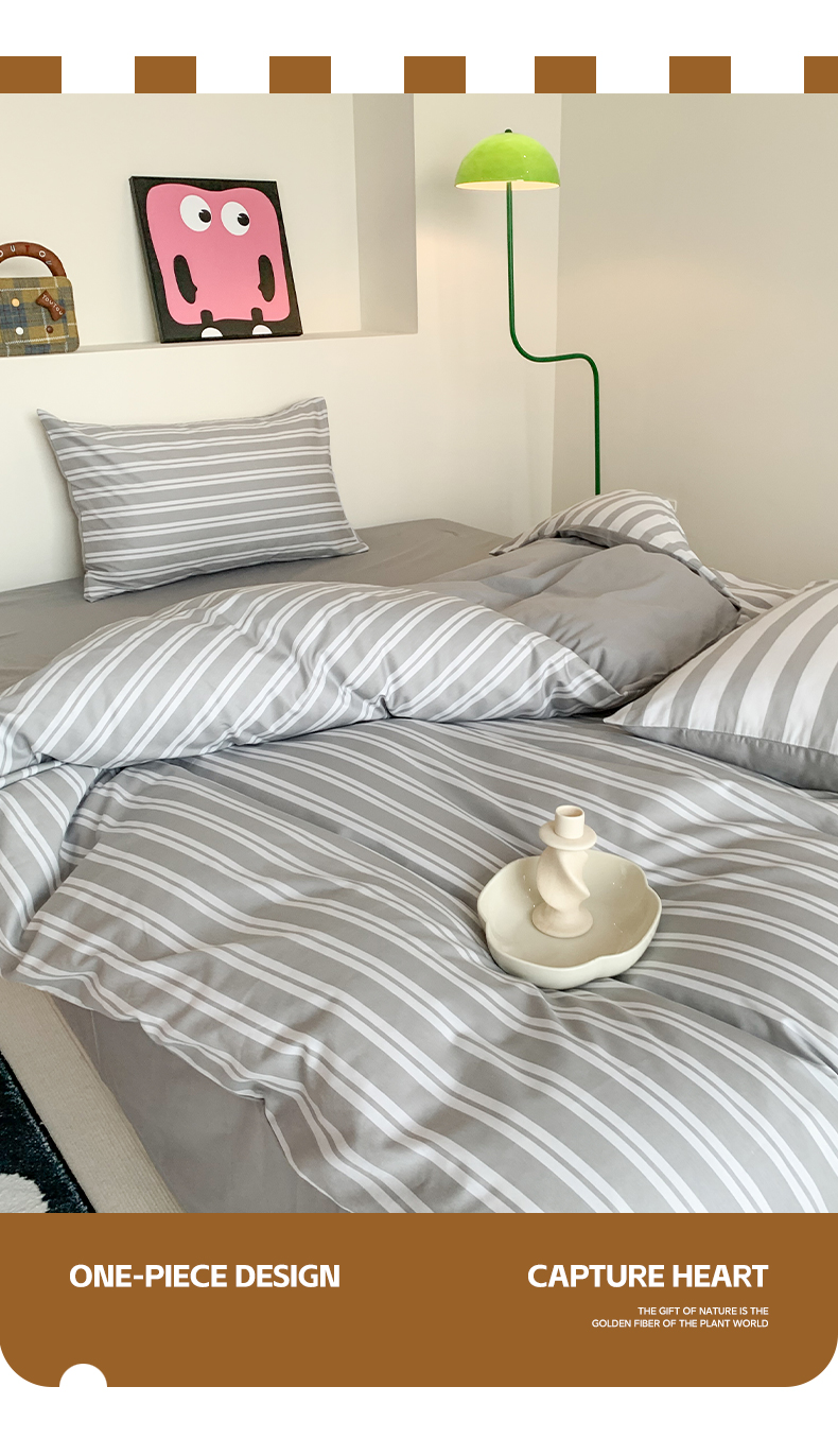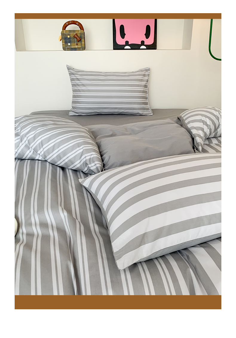 澳萝拉 2024新款全棉条纹大版四件套 椰子灰