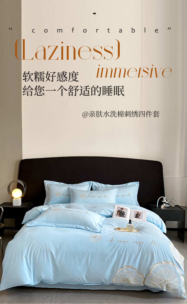 当前位置: 91家纺网 > 商品网购 > 床品套件 > 四件套 > 水洗棉四件套 > 你好美丽 2025新款水洗棉花韵刺绣四件套 花韵蓝