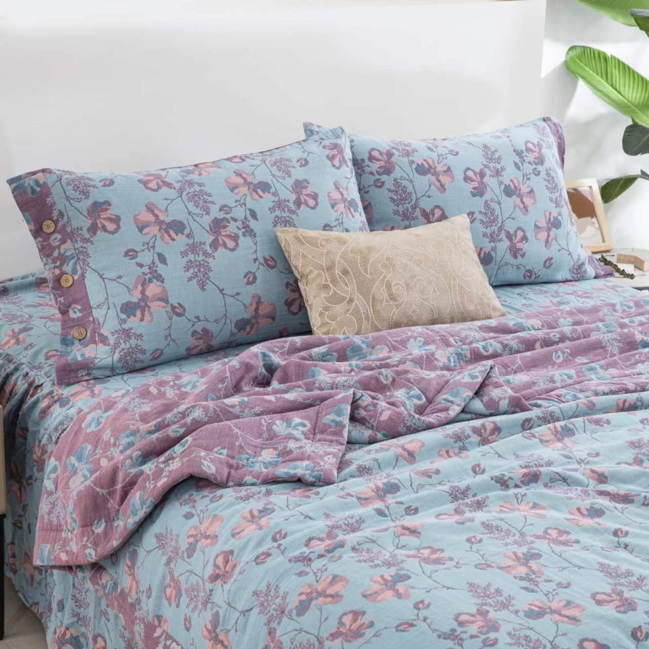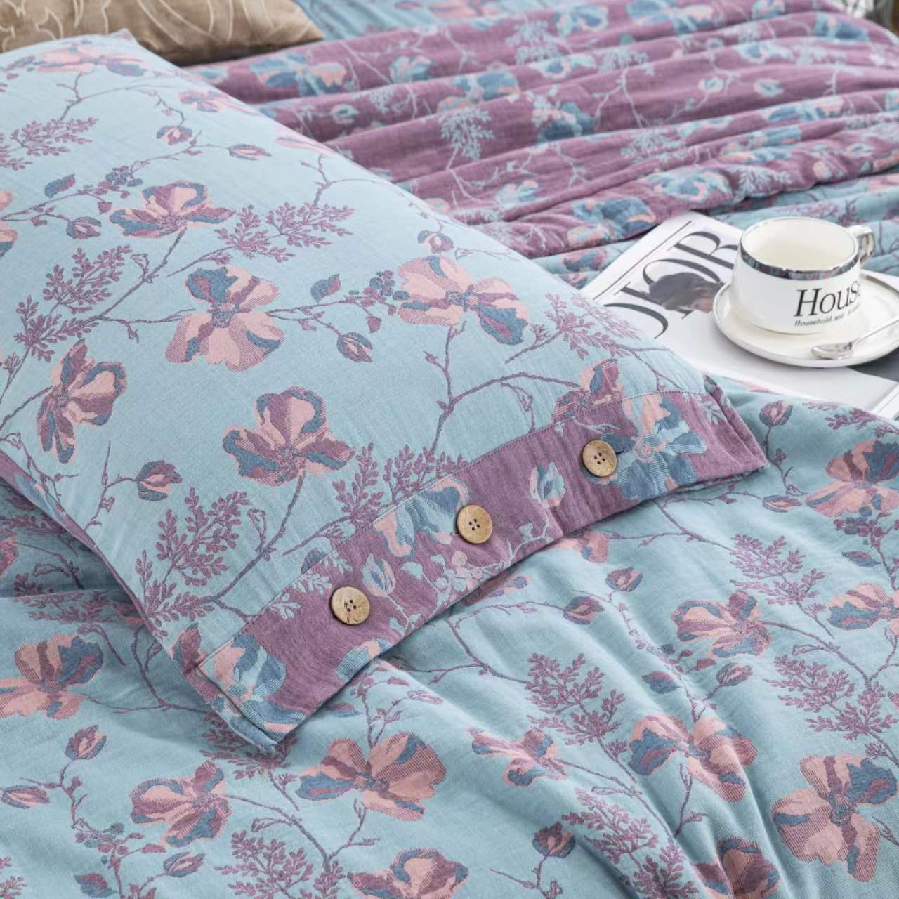 (总)双层纱家居 2025新款纯棉双层纱纽扣款四件套,春雨墨绿,凤尾花,黑茶,红石榴,蝴蝶粉,蝴蝶紫,花絮黄,花絮蓝,流金岁月粉灰,流金岁月紫,陌上花开深蓝,牡丹深紫,牡丹夕颜紫红,秋雨墨绿,亭亭玉立,雾里看花墨蓝,新款薰衣草,新龙凤呈祥,一帆风顺灰,羽毛桔,织梦粉,织梦水墨,织梦紫罗兰