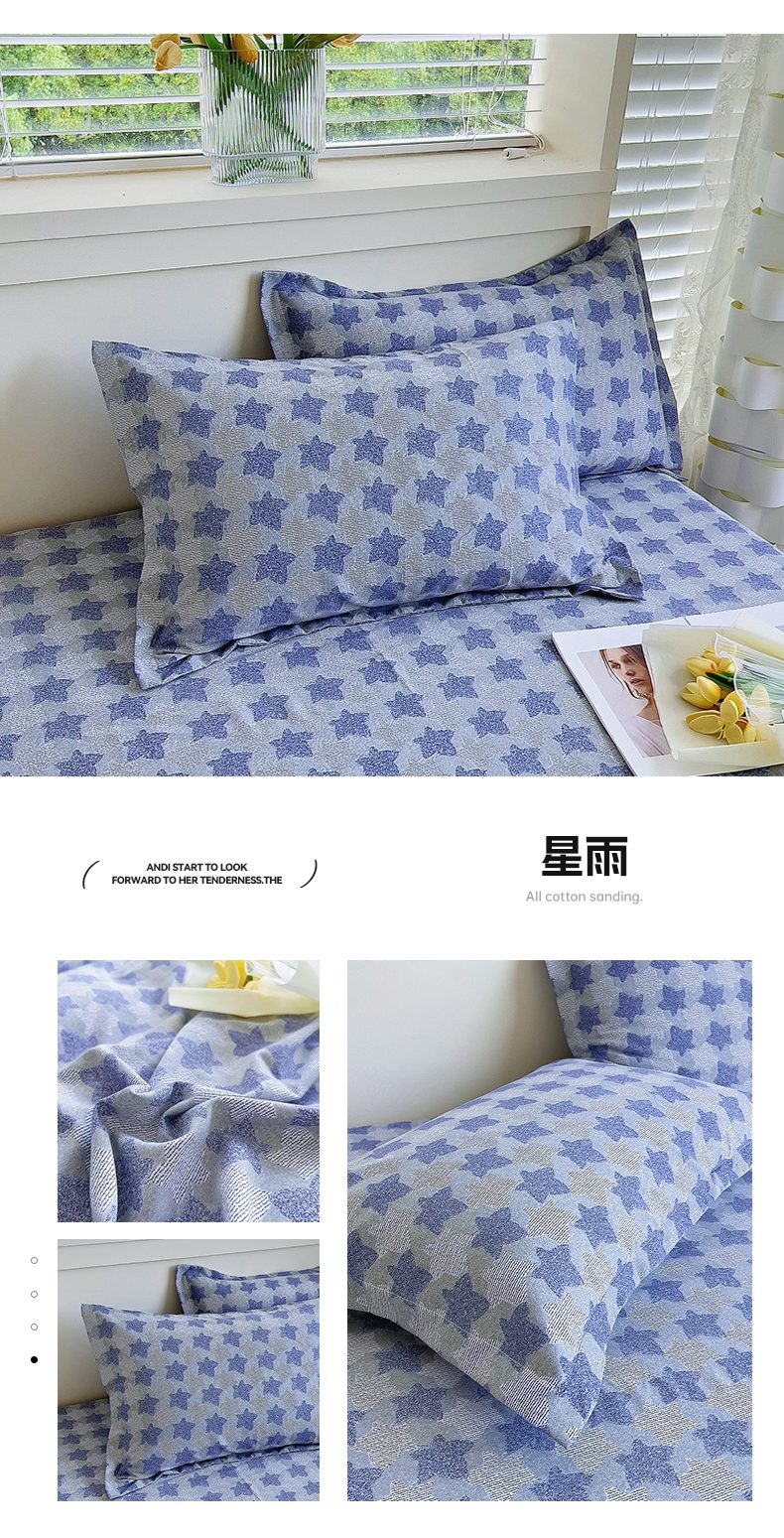 商品名称:优品阁 2024新款全棉磨毛四件套单品系列-单枕套 星雨