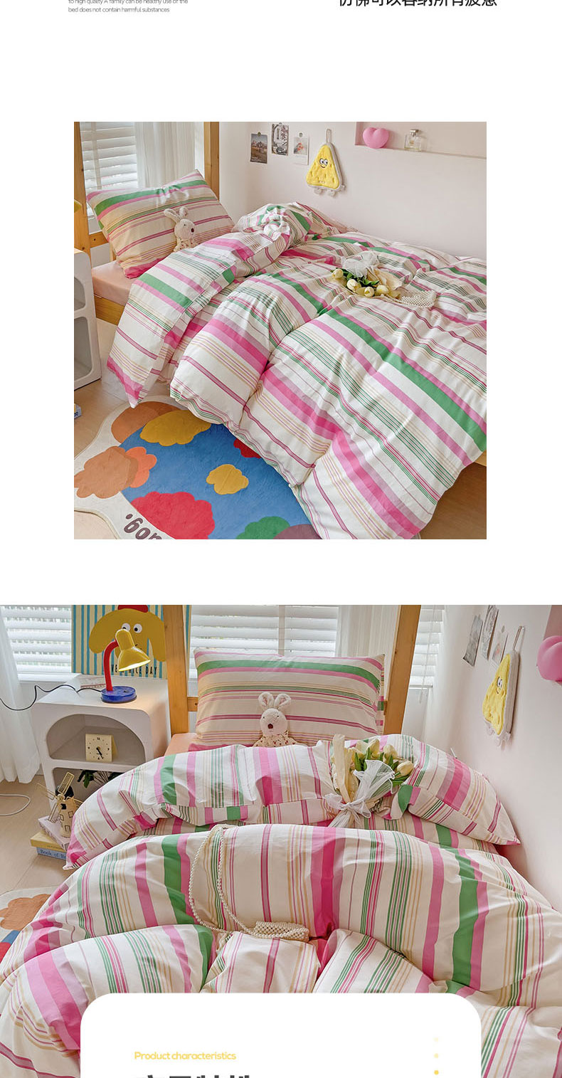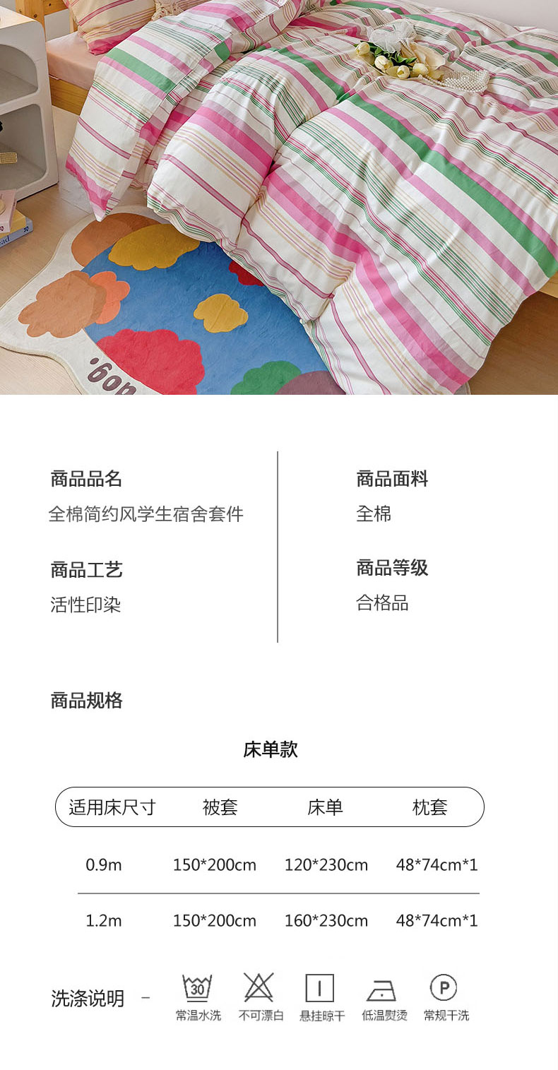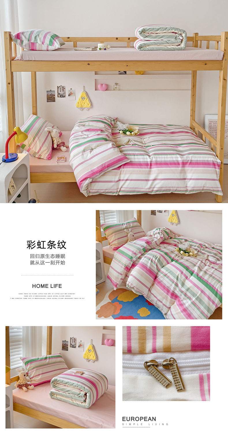 商品名称:梦家居 2024新款全棉简约风学生宿舍三件套 彩虹条纹