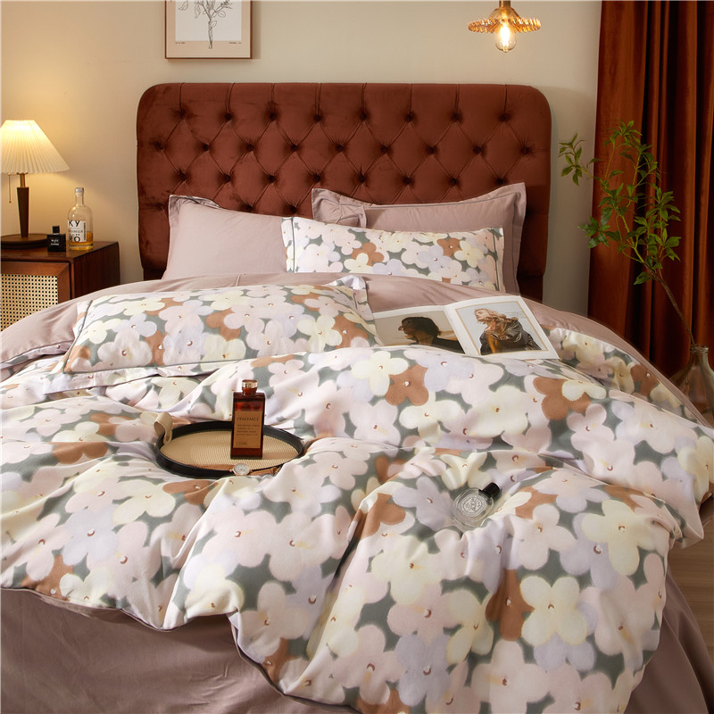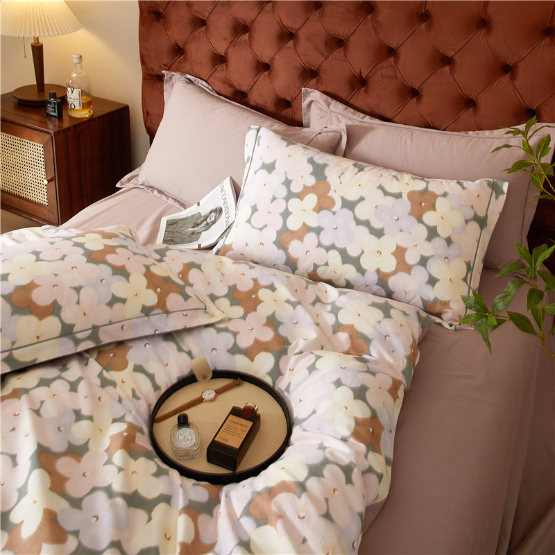 当前位置: 91家纺网 > 商品网购 > 床品套件 > 四件套 > 全棉普通四件套 > 沐白家居 2024新款全棉生态磨毛印花四件套系列 臻爱-豆沙