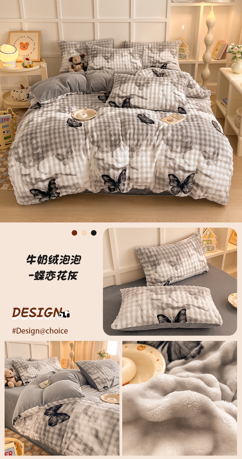 金喜 2024新款牛奶绒印花泡泡四件套 泡泡牛奶绒-暖阳