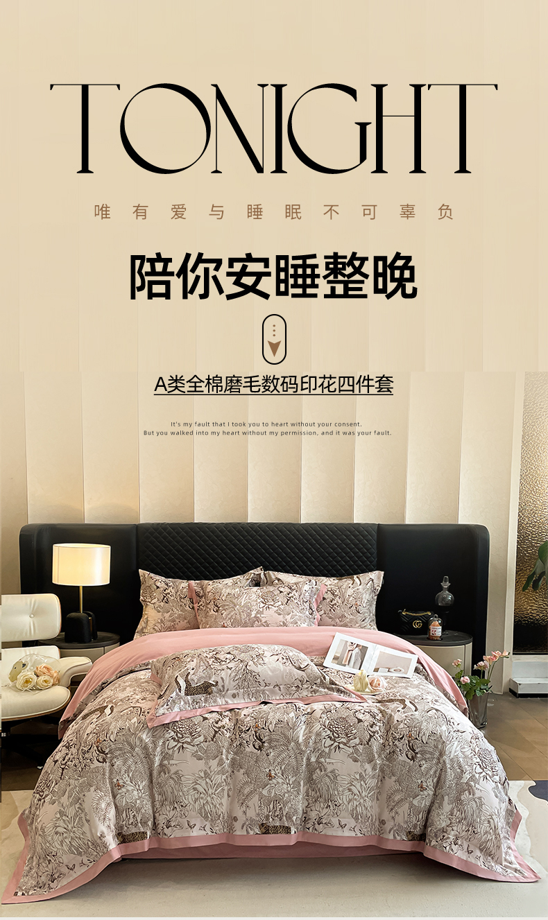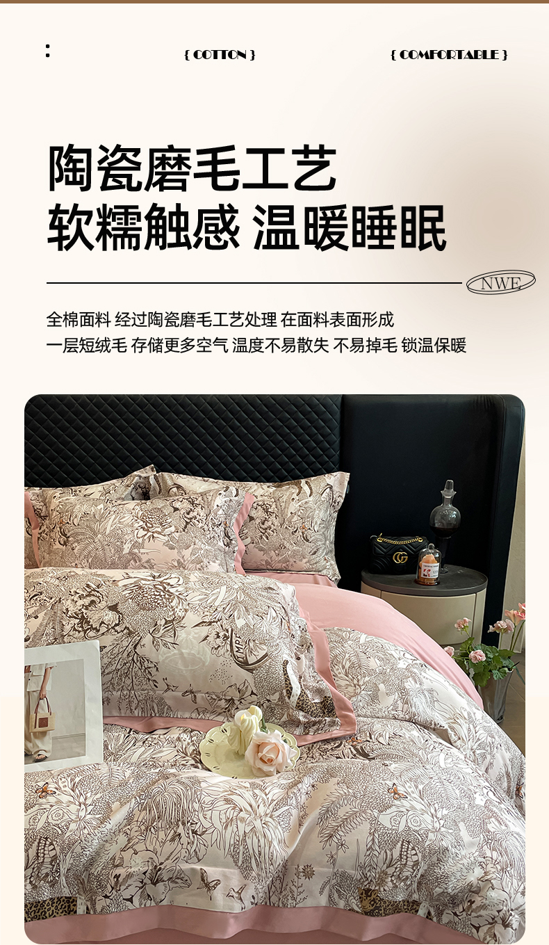商品名称:安妮家居 2024新款A类全棉陶瓷数码印花四件套 艾米-粉