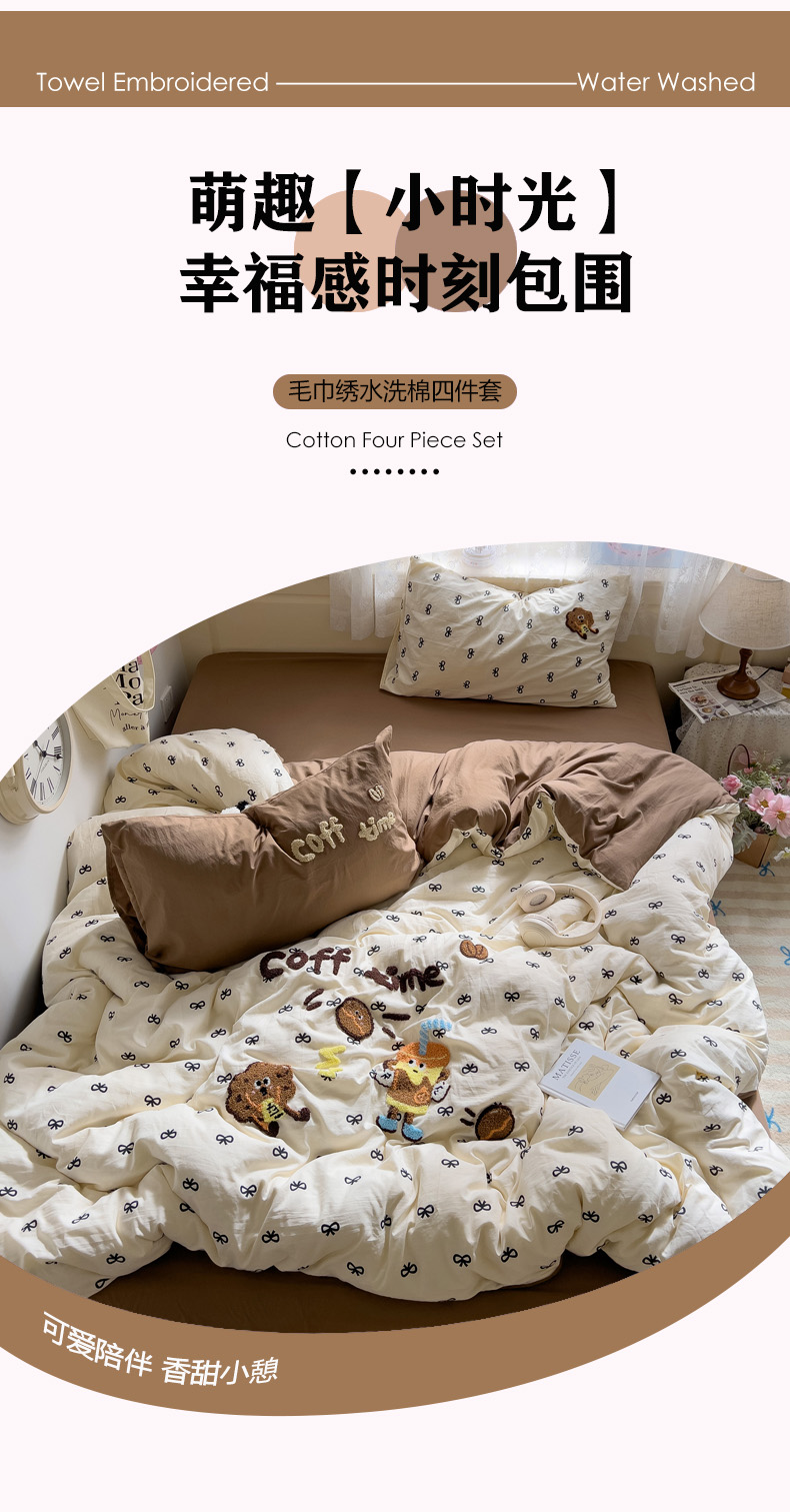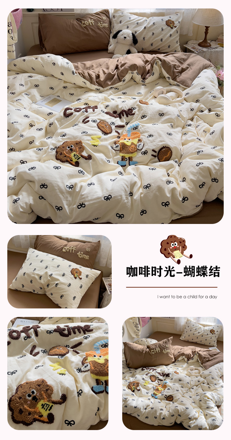 当前位置: 91家纺网 > 商品网购 > 床品套件 > 四件套 > 毛巾绣四件套 > 曼谷家纺 2025新款软糯毛巾绣水洗棉四件套-【买家秀联系微信】专属版权,质检报告 咖啡时光-蝴蝶结