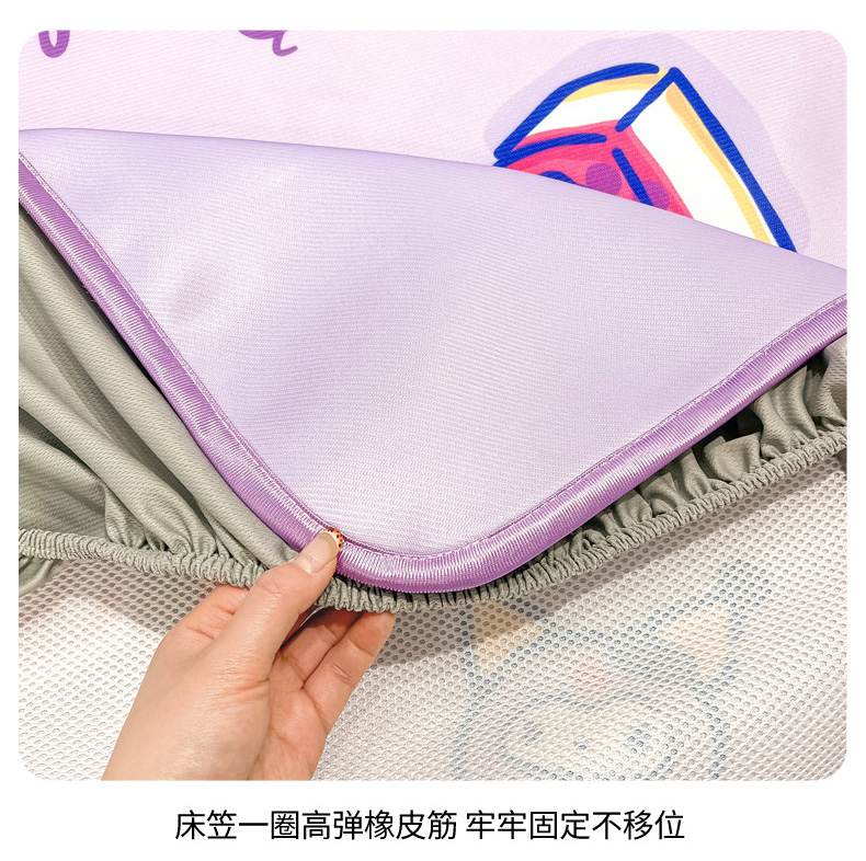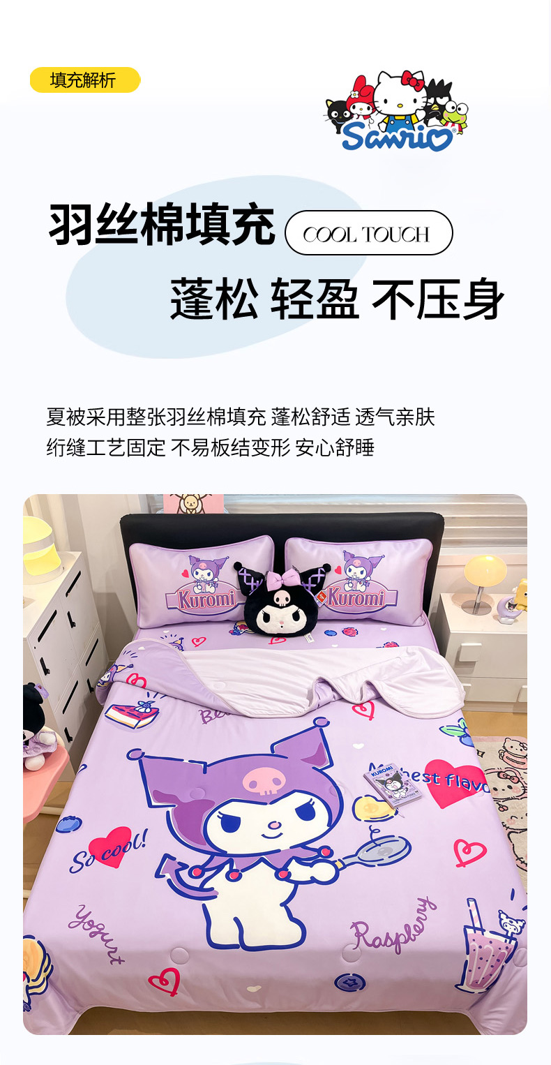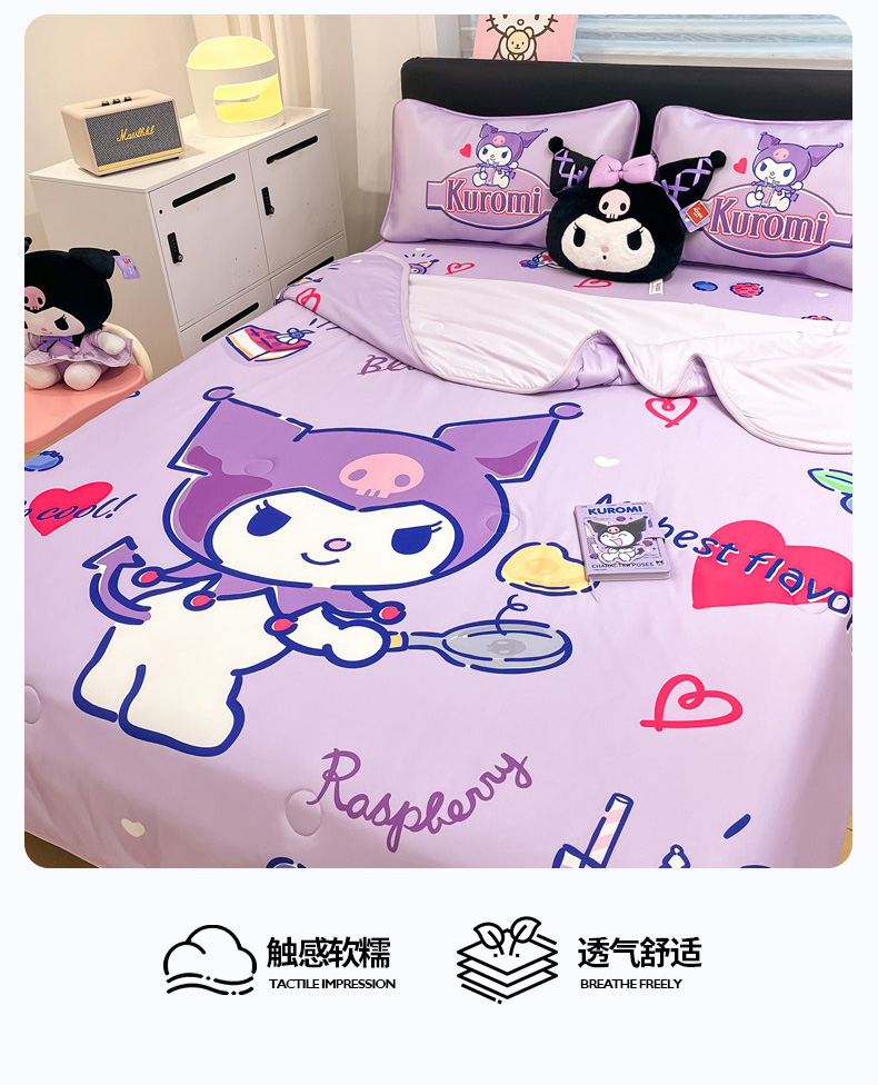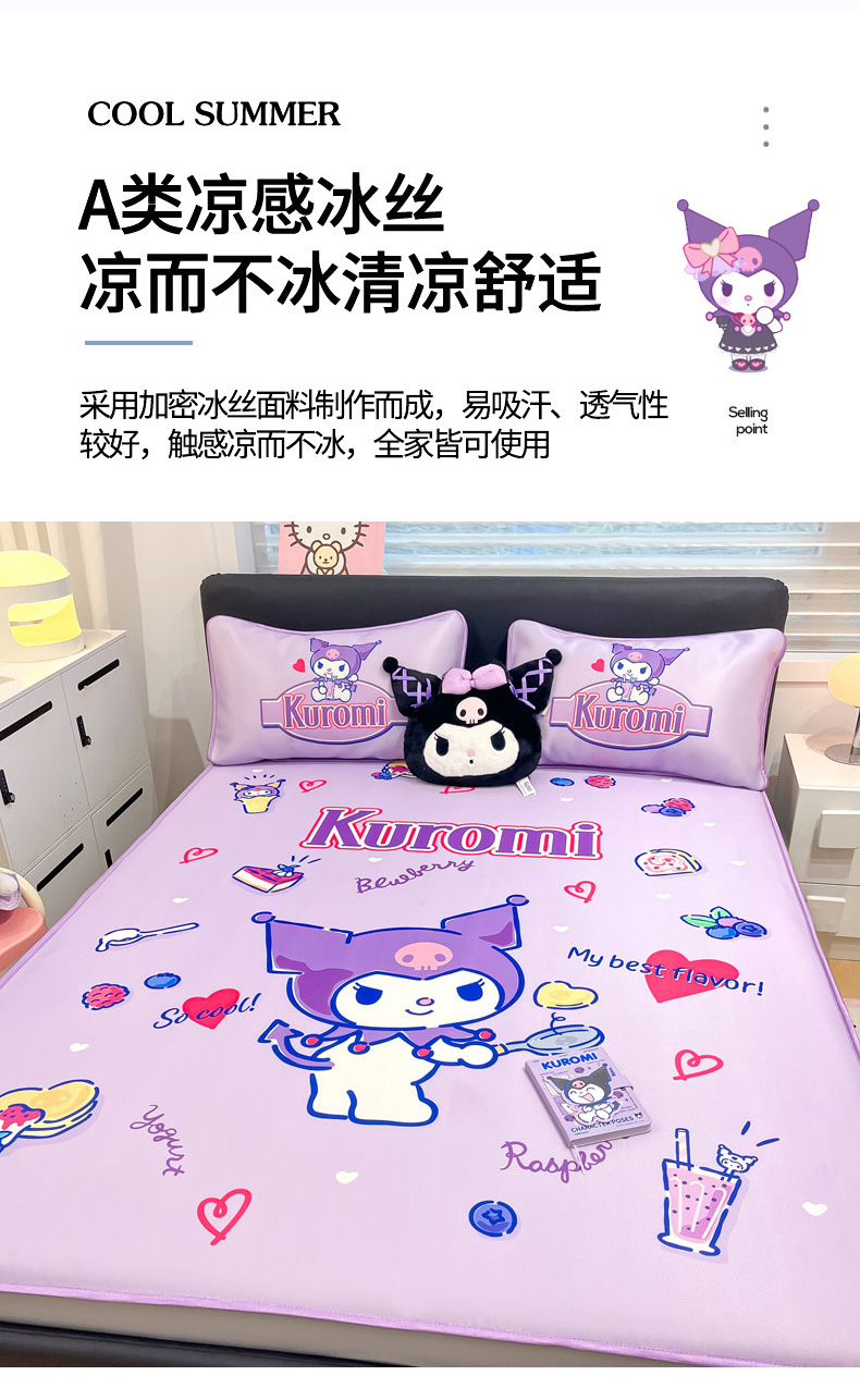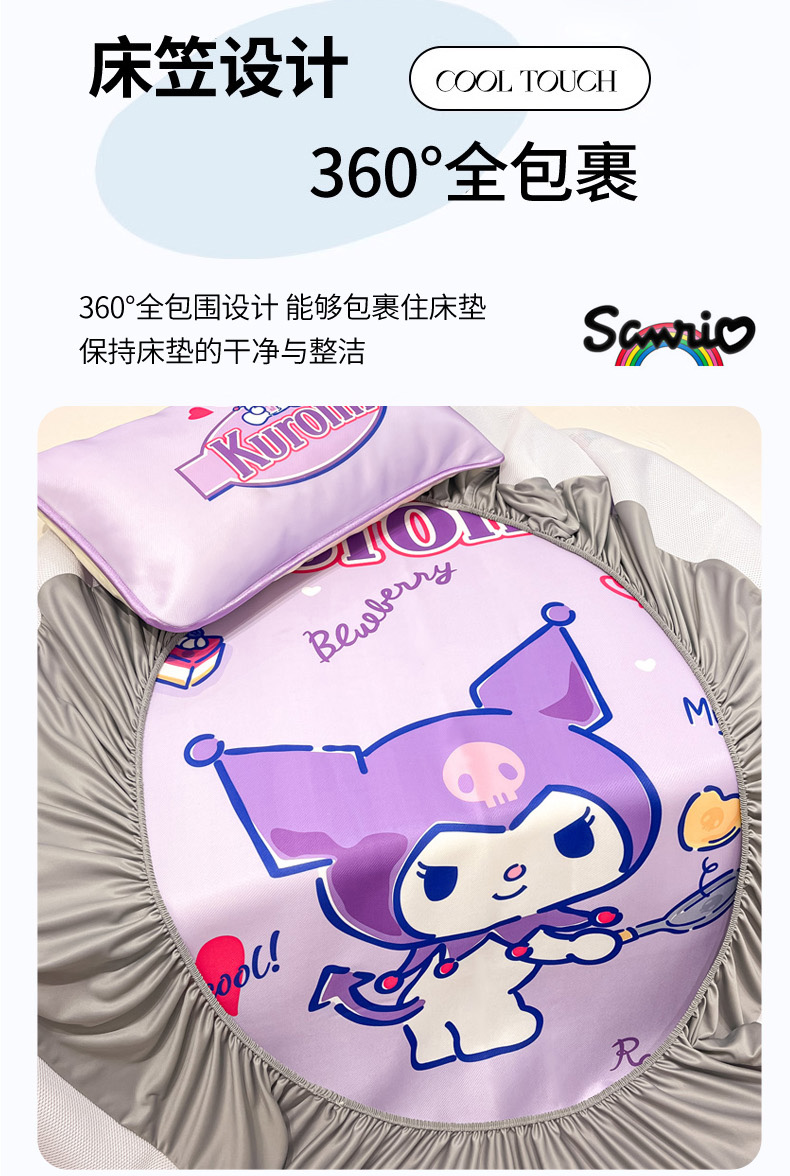 暮思家居 2025新款正版授权A类大版数码印花三丽鸥可机洗1200D冰丝凉席可组合针织棉夏被四件套床笠款 床笠款-蓝莓库洛米