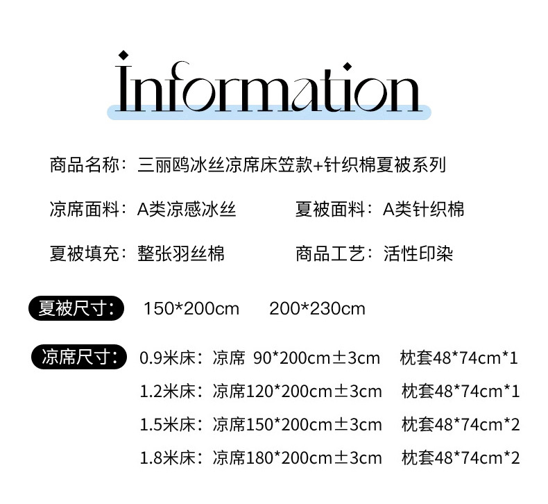 180x200cm凉席+枕套48*74*2 (含防伪码)