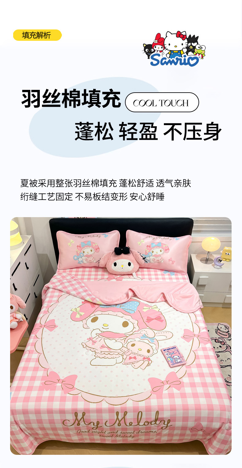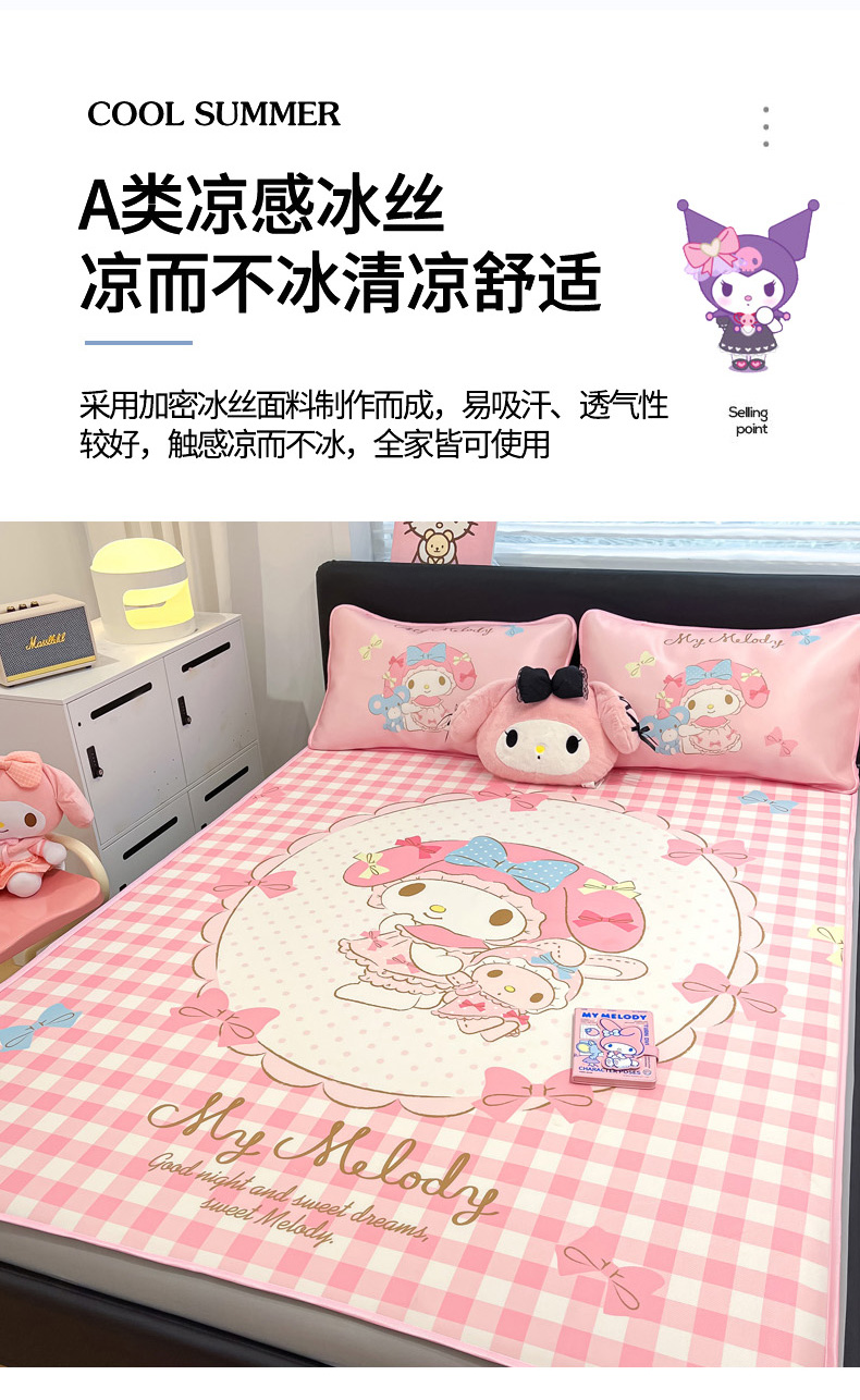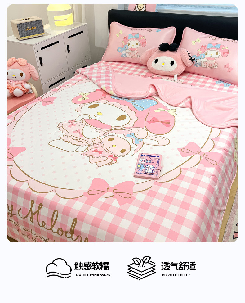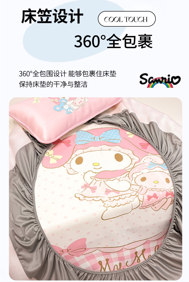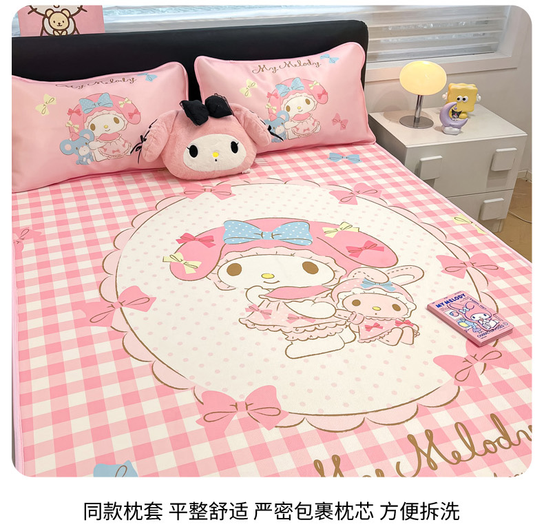 暮思家居 2025新款正版授权A类大版数码印花三丽鸥可机洗1200D冰丝凉席可组合针织棉夏被四件套床笠款 床笠款-相框美乐蒂