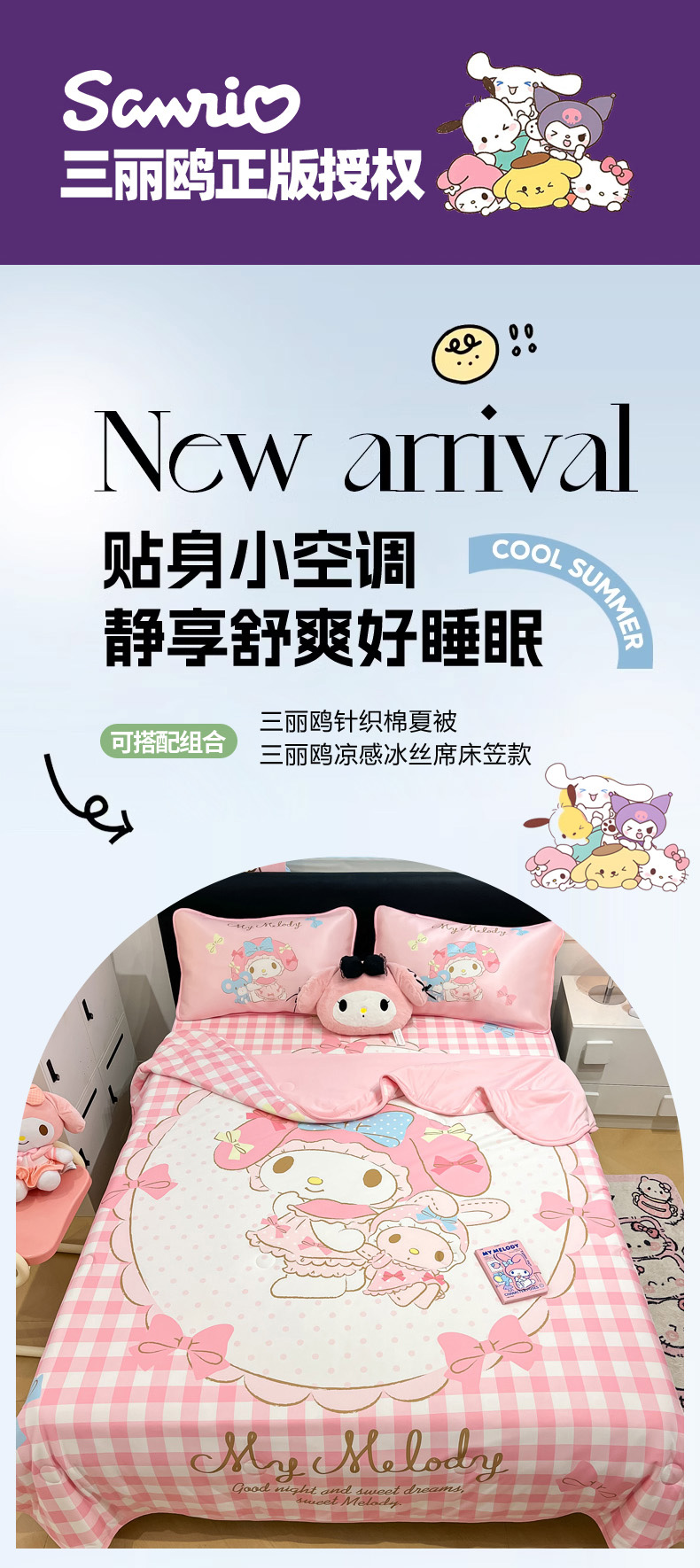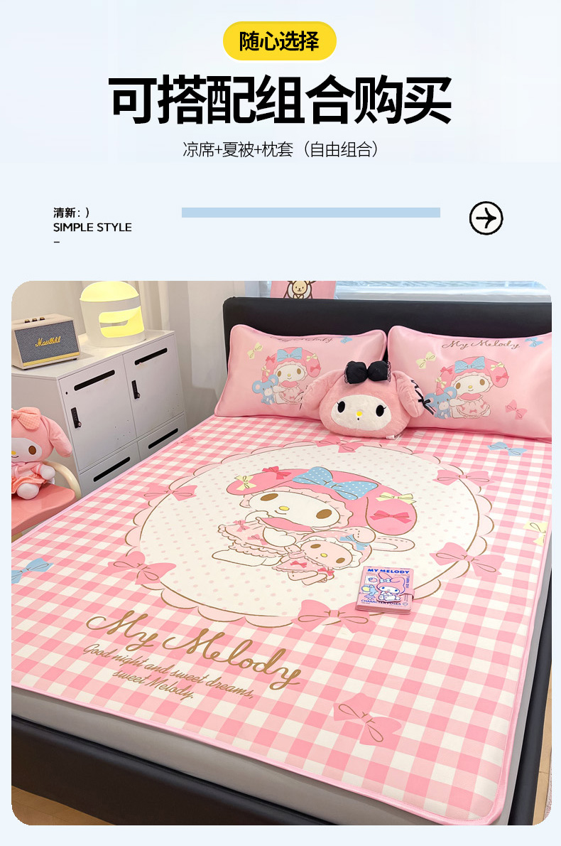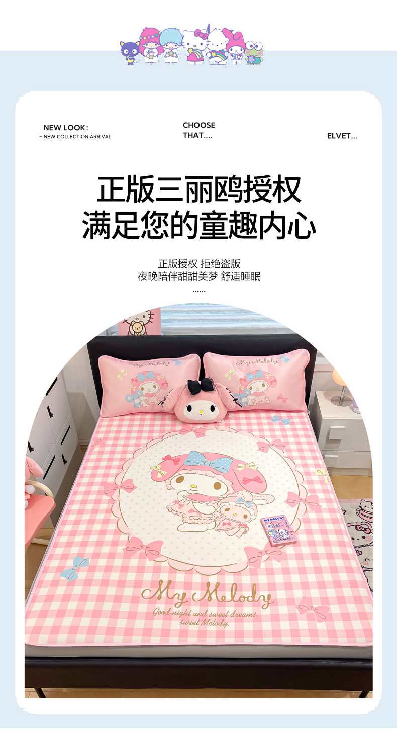 当前位置: 91家纺网 > 商品网购 > 床上用品 > 凉席 > 暮思家居 2025新款正版授权A类大版数码印花三丽鸥可机洗1200D冰丝凉席可组合针织棉夏被四件套床笠款 床笠款-相框美乐蒂