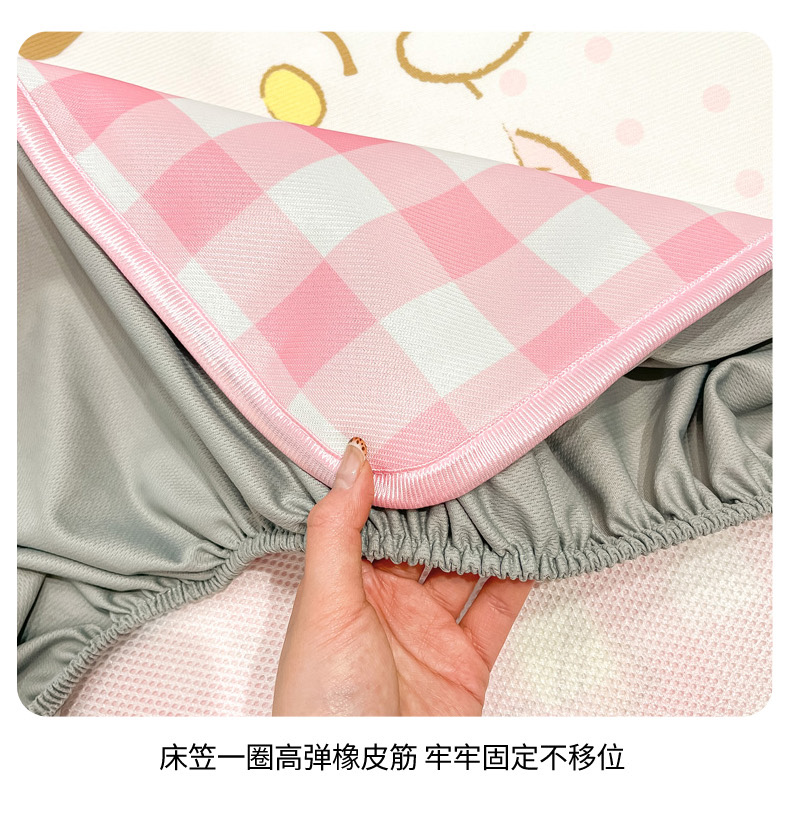 • 91家纺网 家纺一手货源 找家纺 暮思家居 2025新款正版授权A类大版数码印花三丽鸥可机洗1200D冰丝凉席可组合针织棉夏被四件套床笠款 床笠款-相框美乐蒂