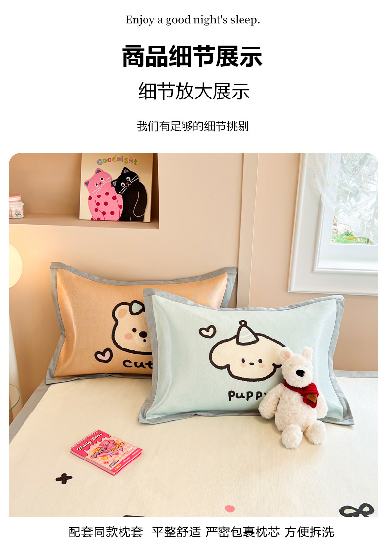 (总)慕尚家纺 2025新款全棉印花学生三件套套件,艾米熊,彩色爱心狗,铃兰花,美食派对,萌宠乐园,书生猫咪,桃心狗,汪可爱,旺旺,樱桃