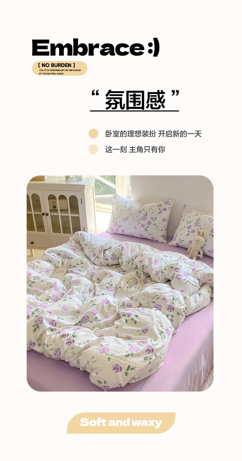 当前位置: 91家纺网 > 商品网购 > 床品套件 > 四件套 > 全棉普通四件套 > 【提供买家秀】2025直播云感皱皱棉四件套水洗棉简约风小碎花被套床笠三件套-细节图 组合