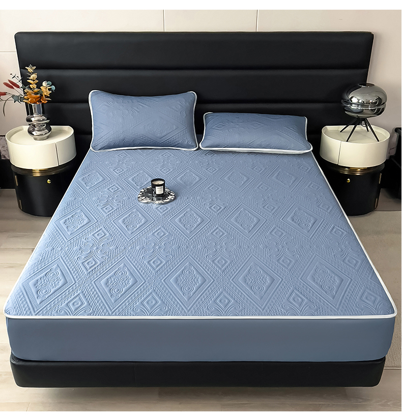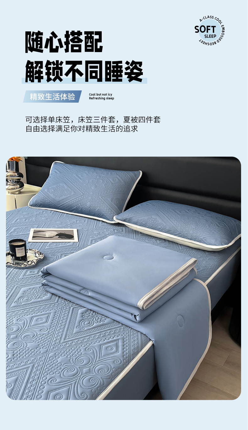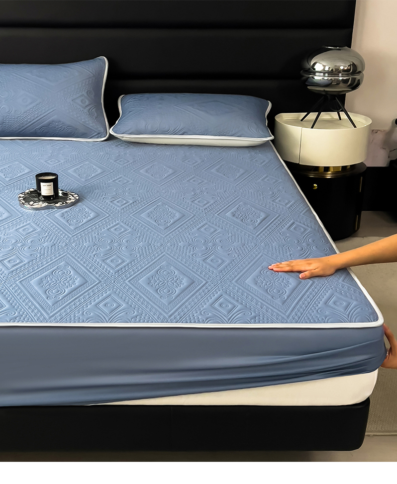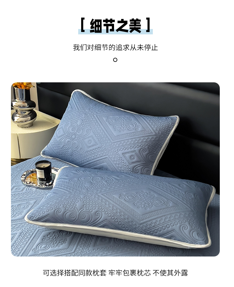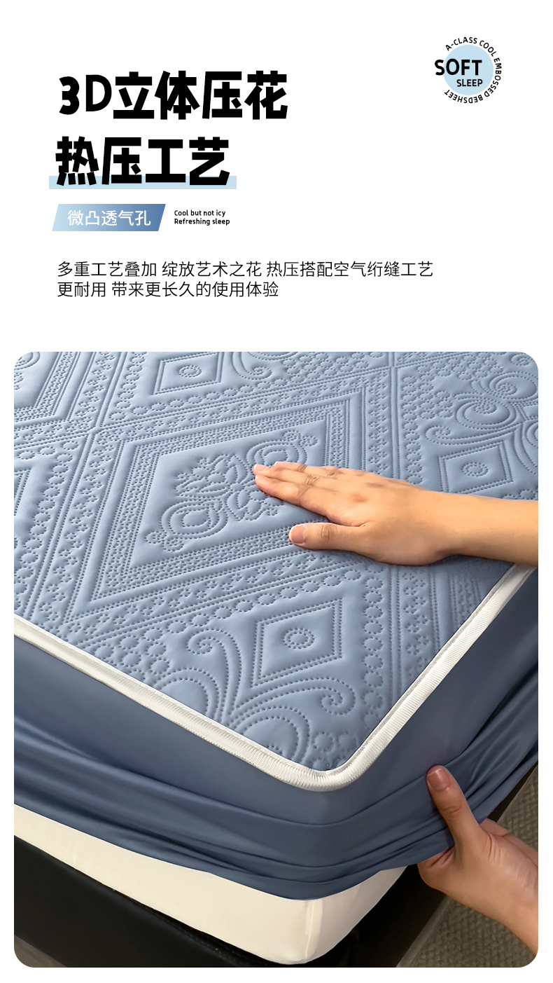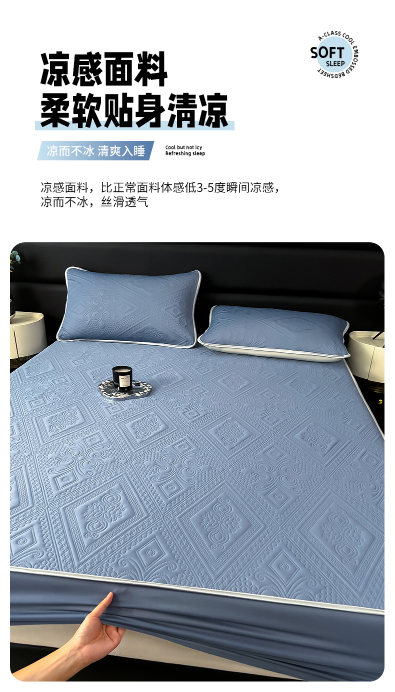 世纪绒品 2025新款A类凉感压花单床笠单夏被 深海蓝灰-单床笠