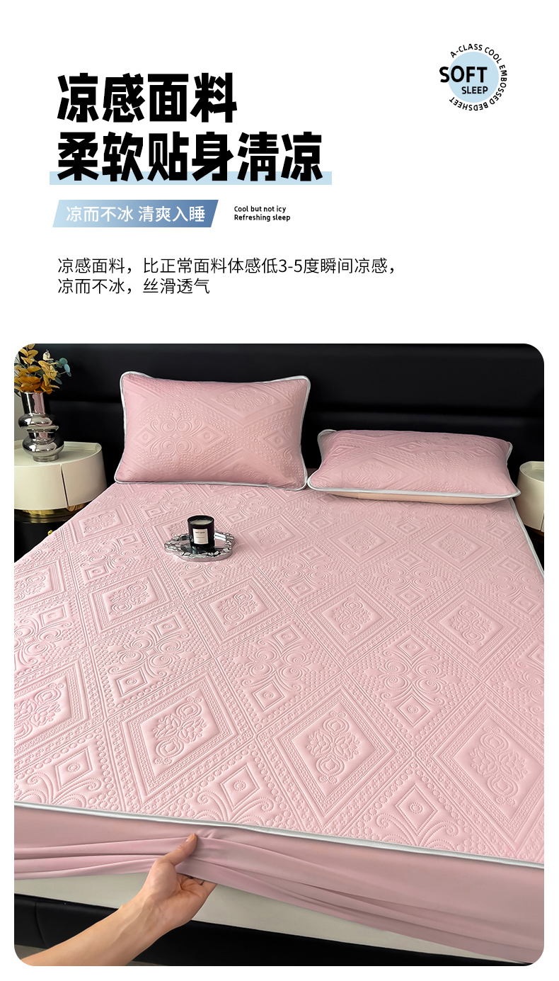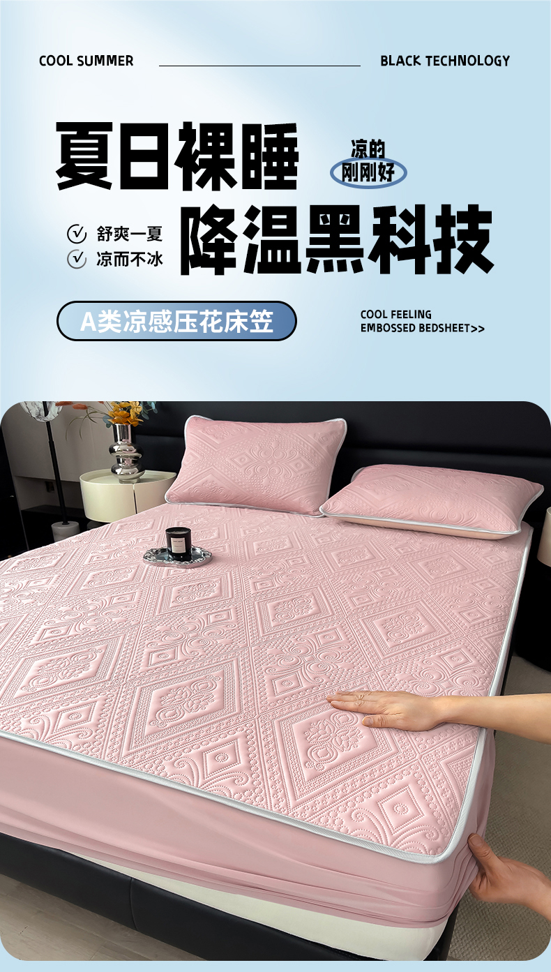 • 91家纺网 家纺一手货源 找家纺 世纪绒品 2025新款A类凉感压花单床笠单夏被 柔光粉-单夏被
