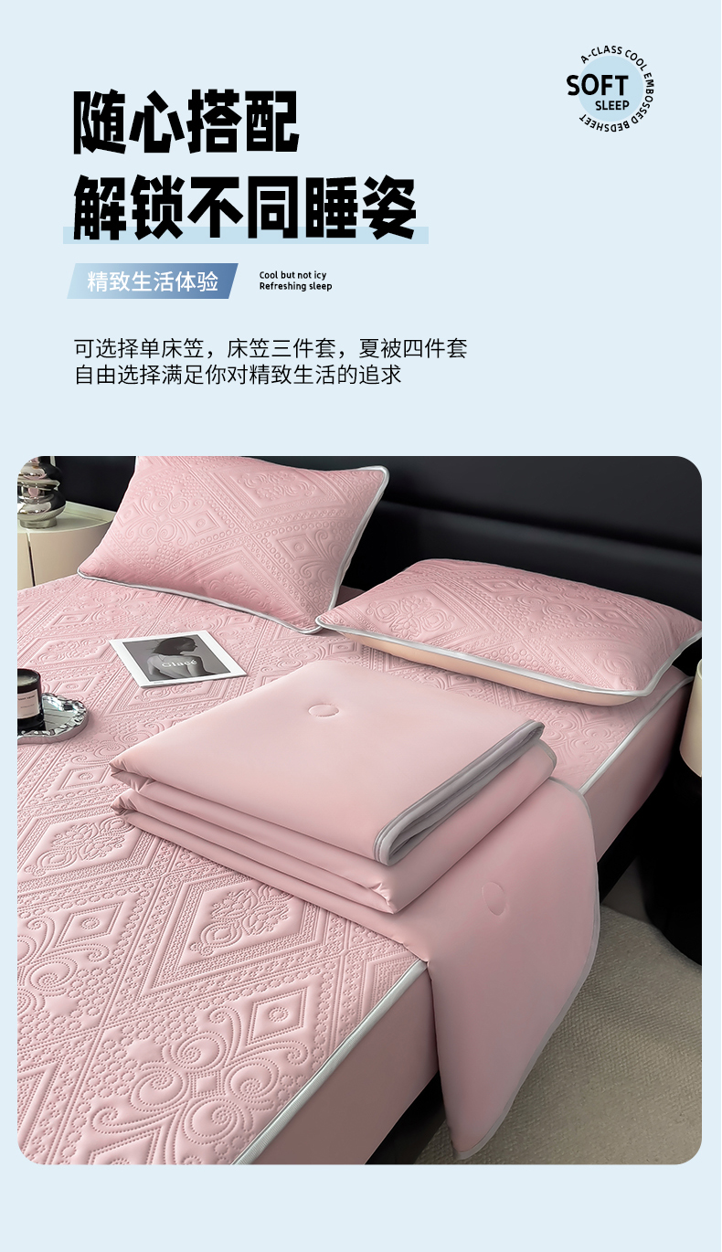 世纪绒品 2025新款A类凉感压花单床笠单夏被 柔光粉-单夏被