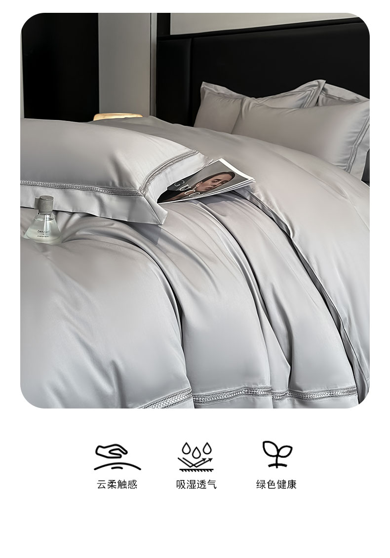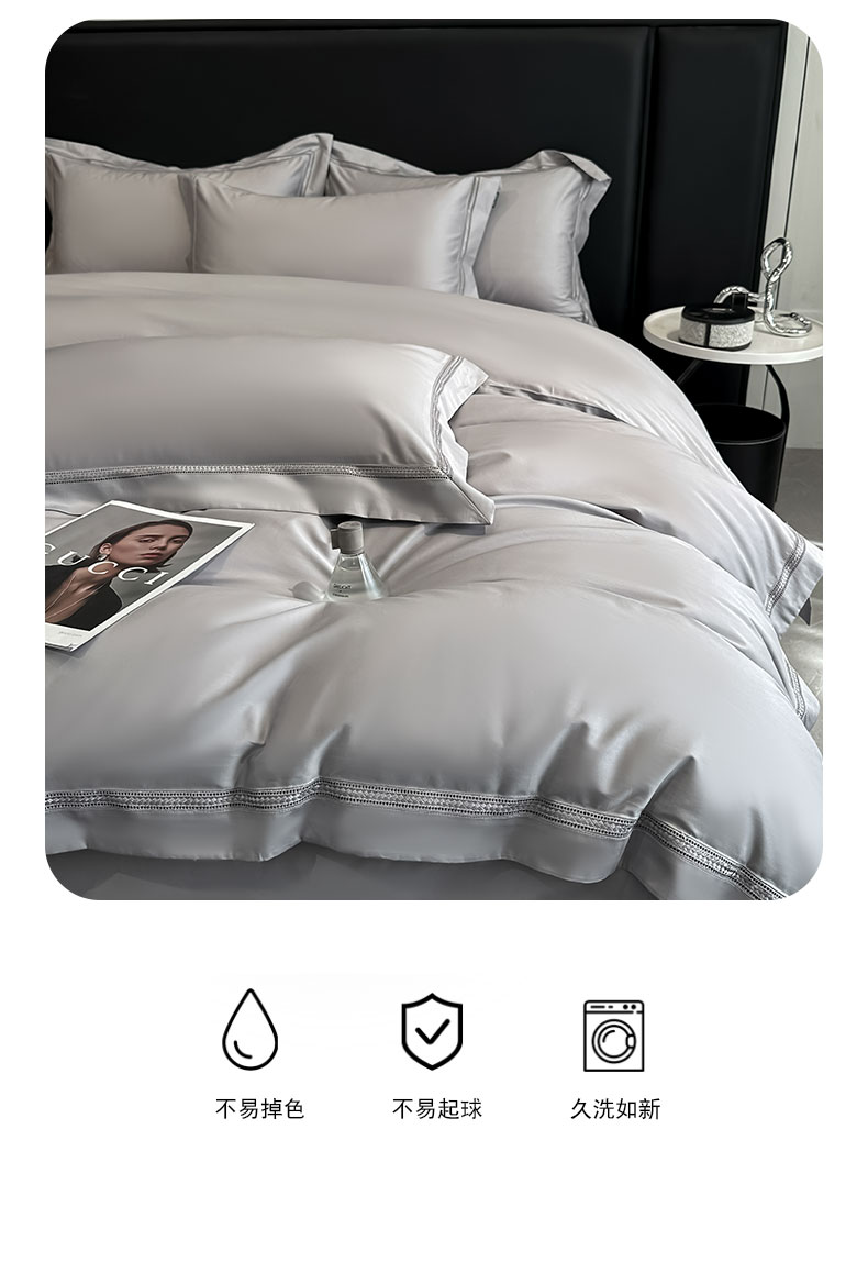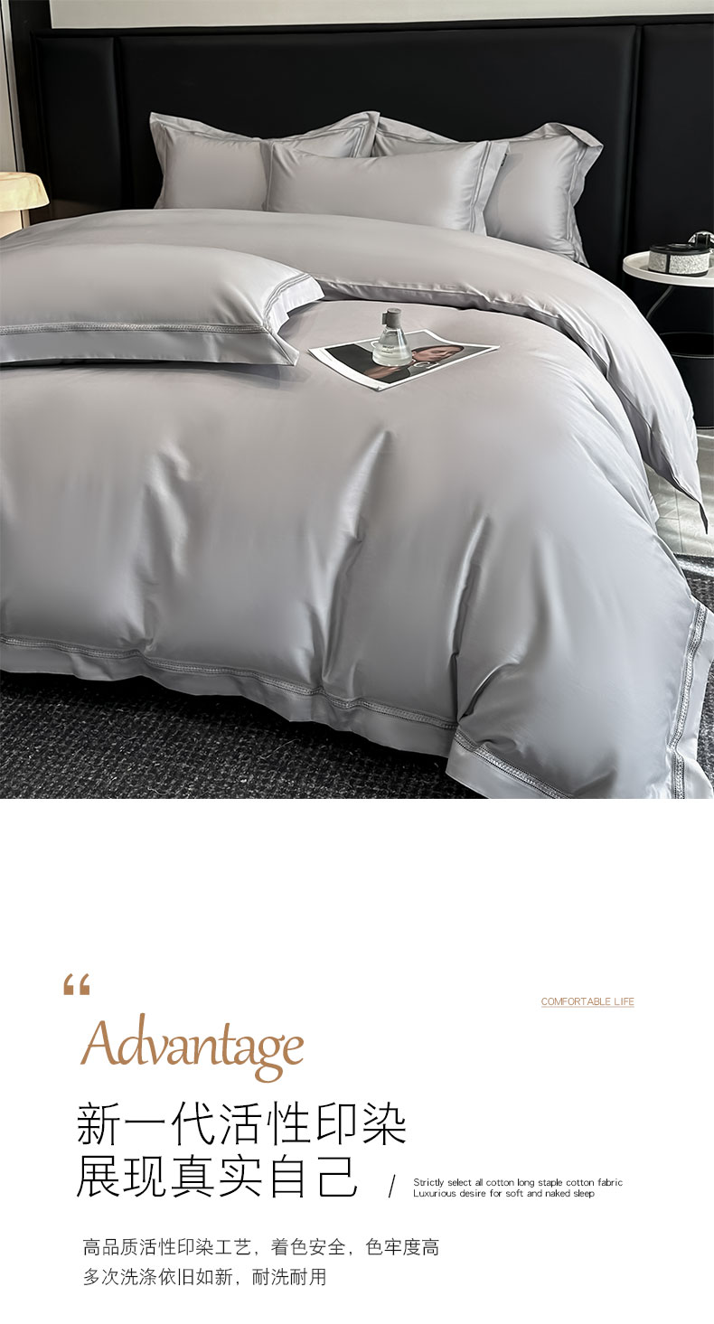(总)安妮家居 2025新款100S长绒棉贡缎纯色四件套,水漾蓝,胧月灰,奶白色,蔷薇粉,柔缦紫,砂砾咖