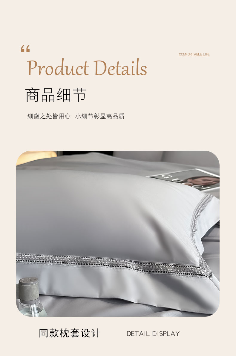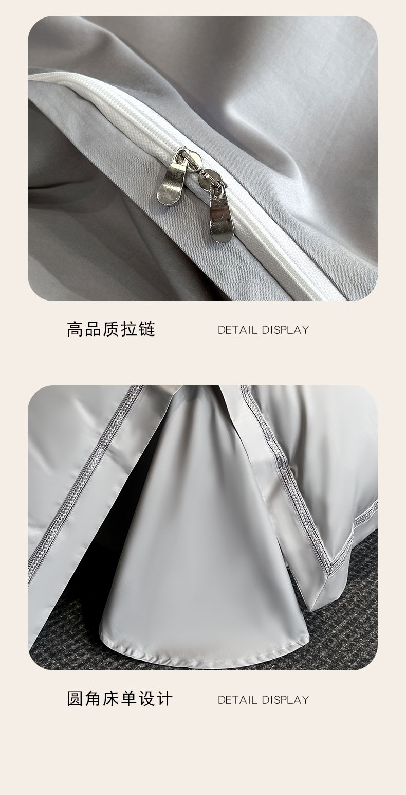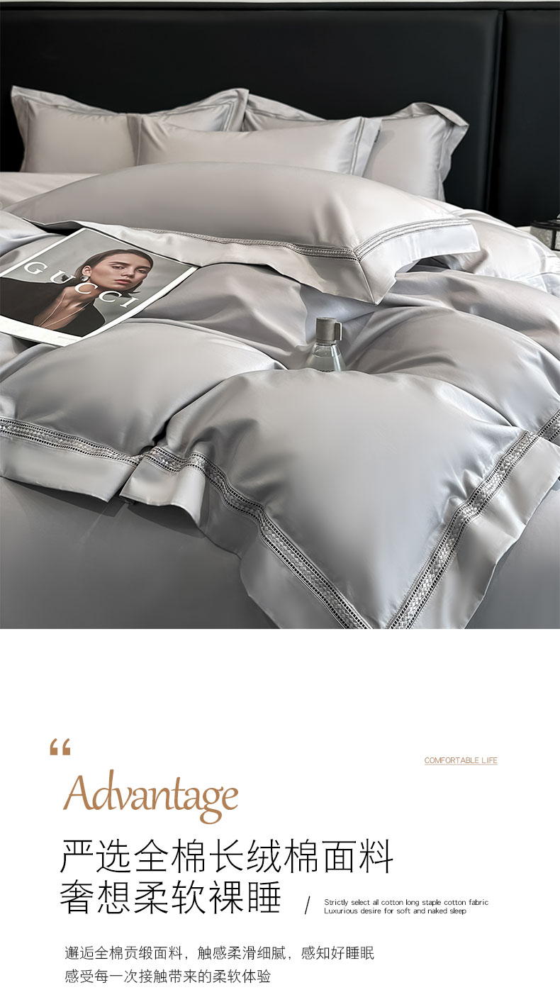 (总)安妮家居 2025新款100S长绒棉贡缎纯色四件套,水漾蓝,胧月灰,奶白色,蔷薇粉,柔缦紫,砂砾咖