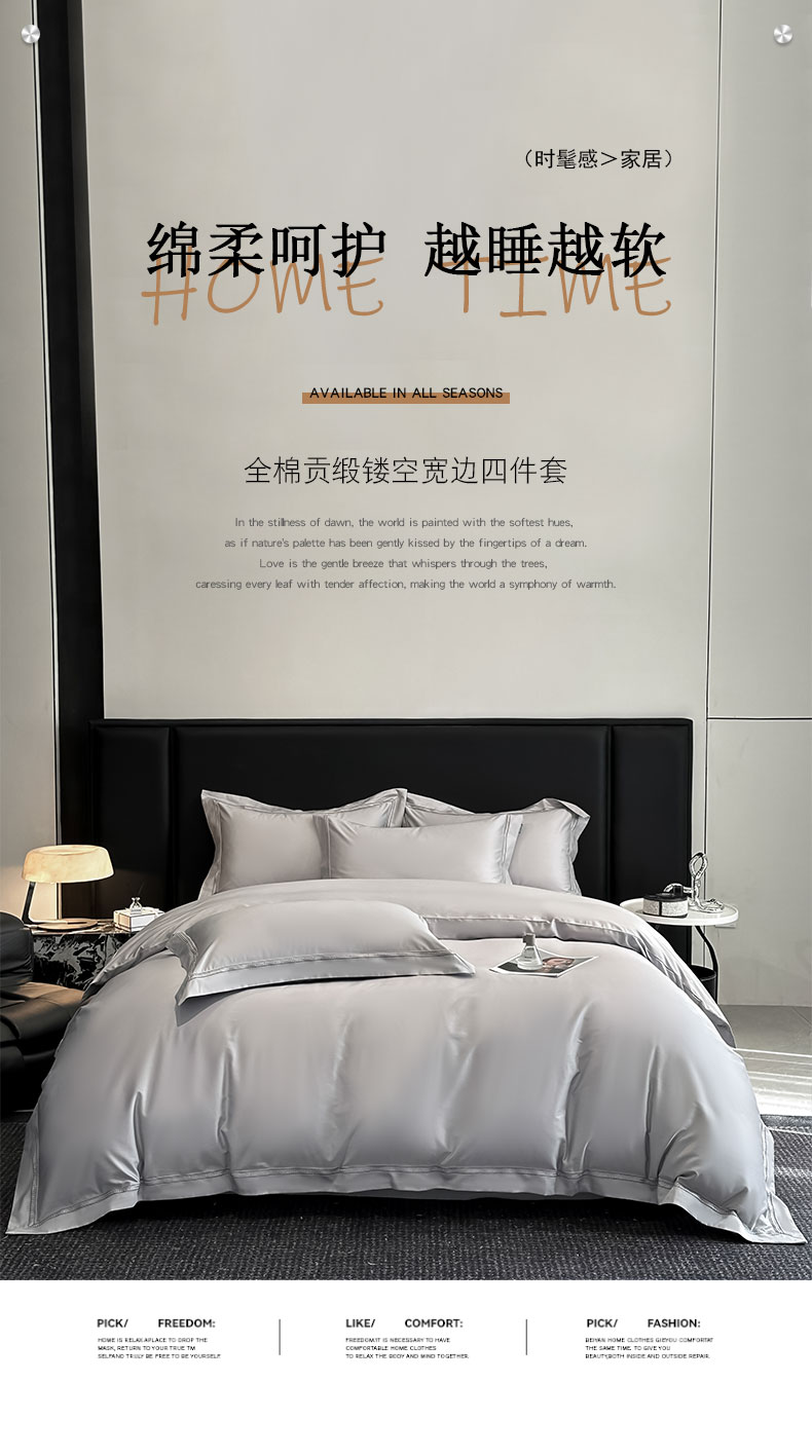 (总)安妮家居 2025新款全棉纯棉100%丝光喷气13376镂空刺绣四件套-海瑟薇,海瑟薇-白,海瑟薇-粉,海瑟薇-蓝,海瑟薇-紫