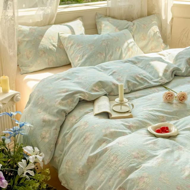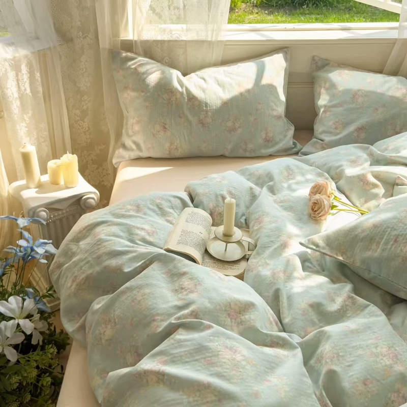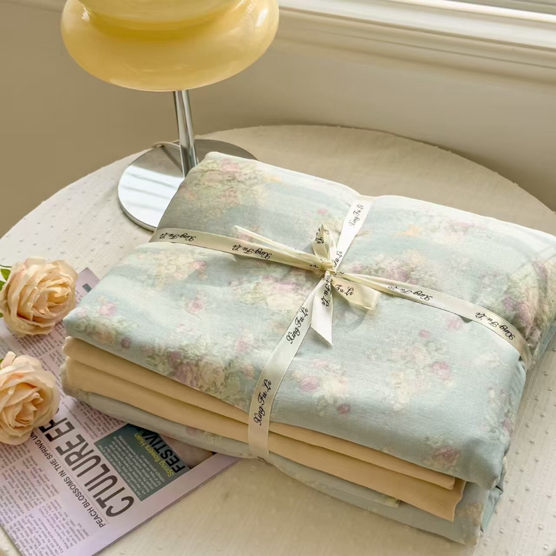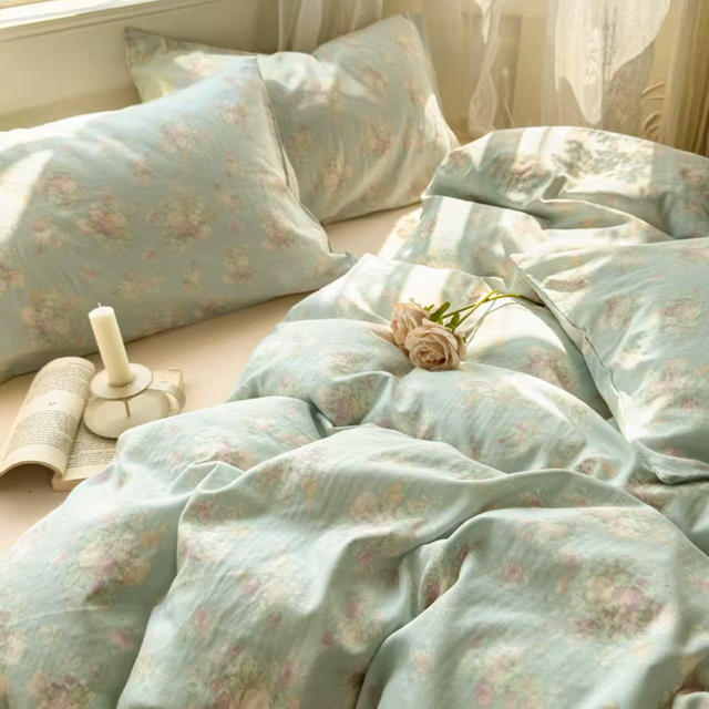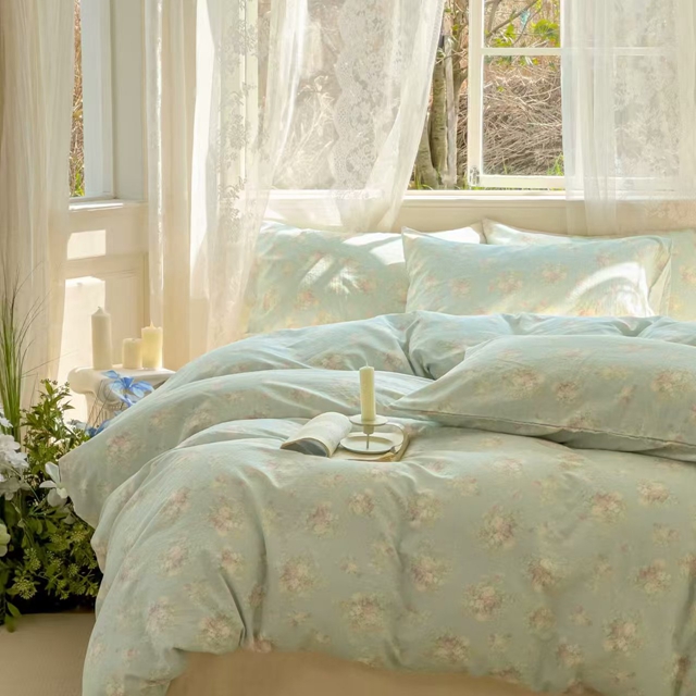 栩裕纺织 2025新款全棉双层纱四件套 慕斯绿