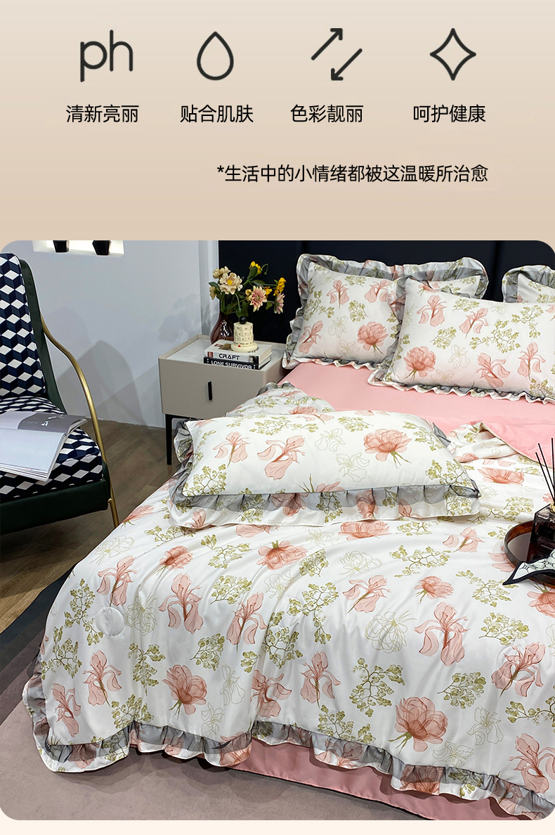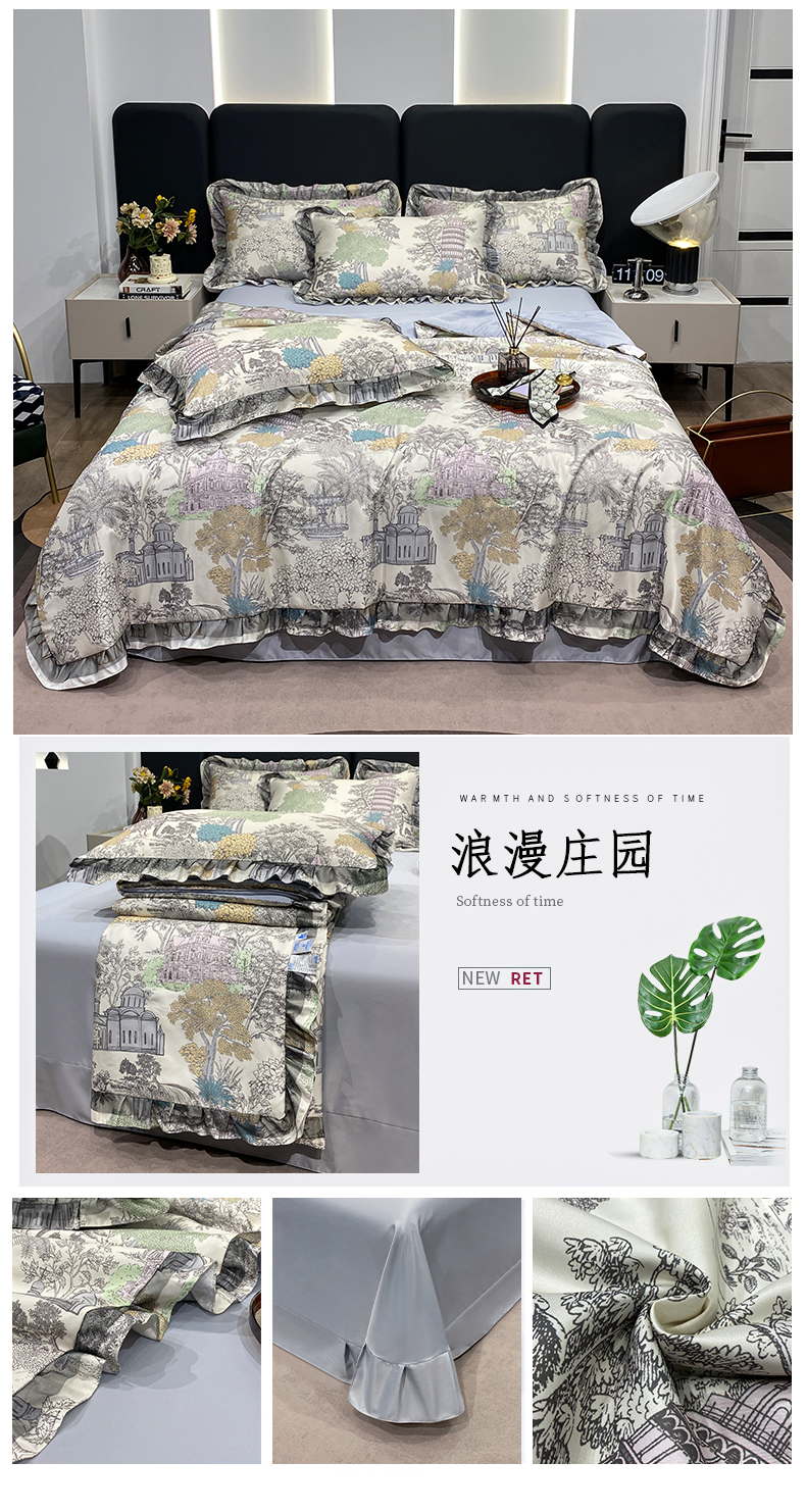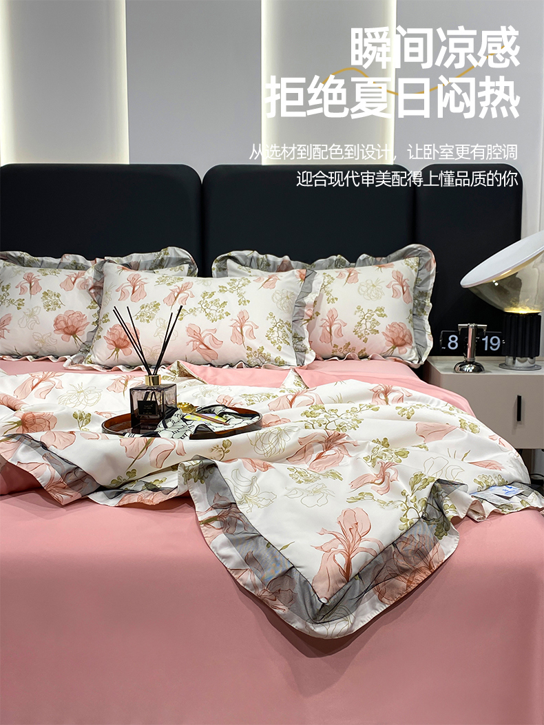 • 91家纺网 家纺一手货源 找家纺 宇彬家纺 2025直播新品水洗真丝冰丝双层花边天丝夏被夏天空调被夏凉被可水洗单夏被枕套三件套床单夏被四件套 暮光森林 灰