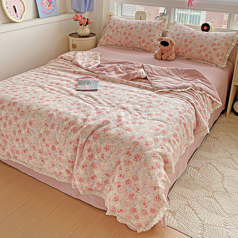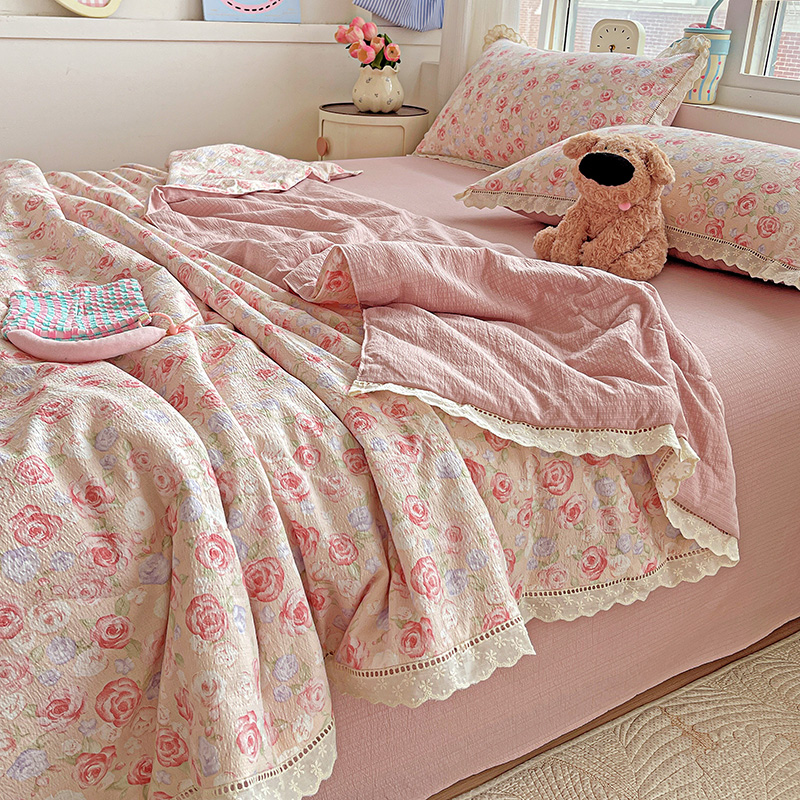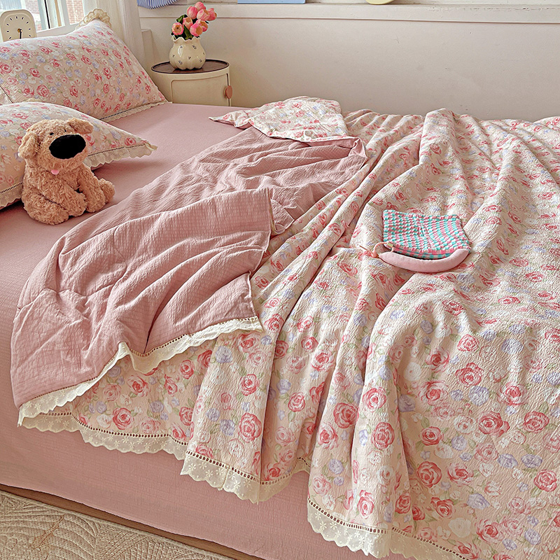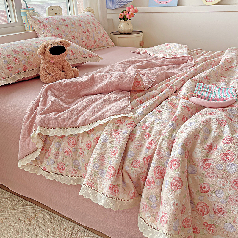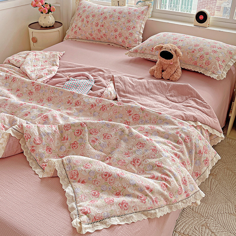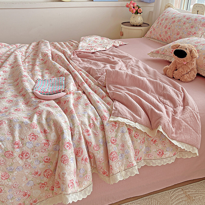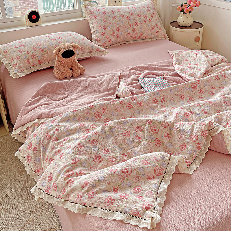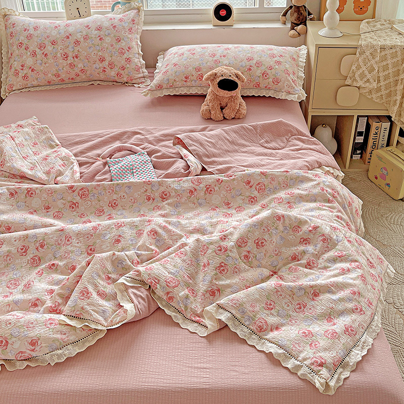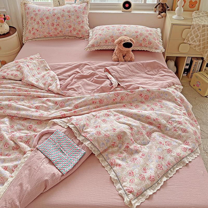 2025新款云感皱皱纱全棉花边款夏被四件套