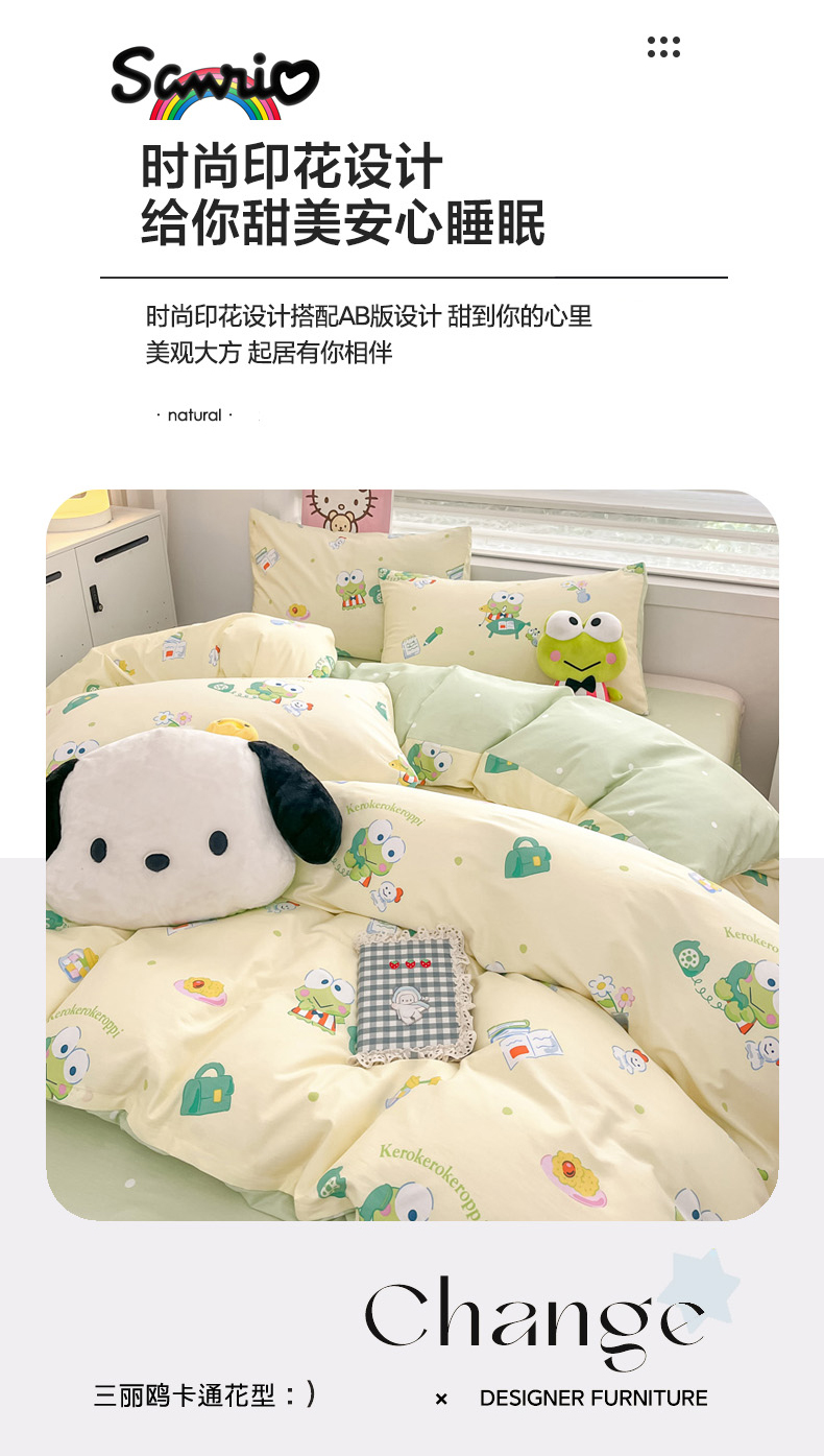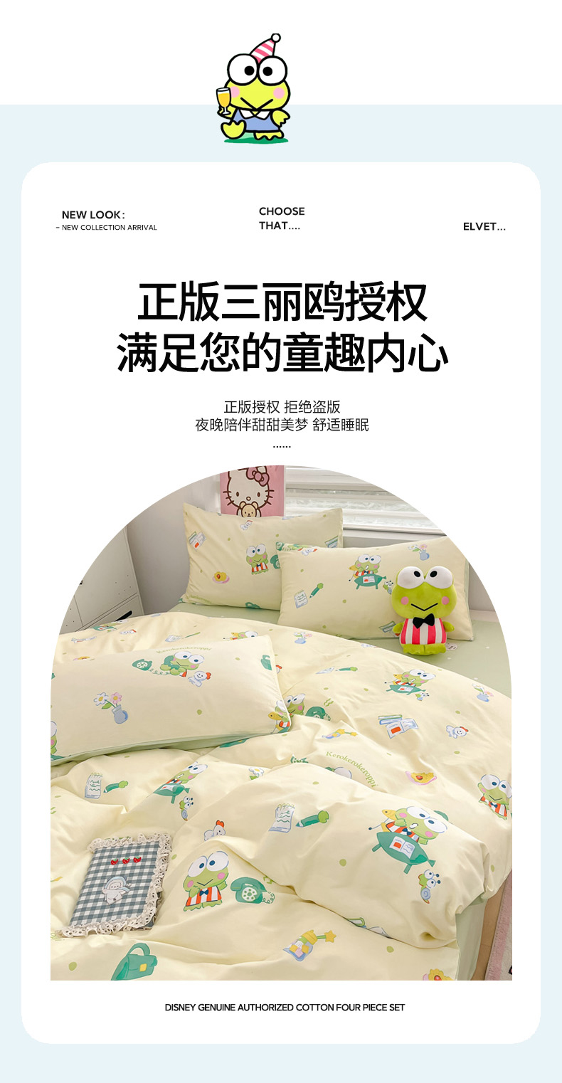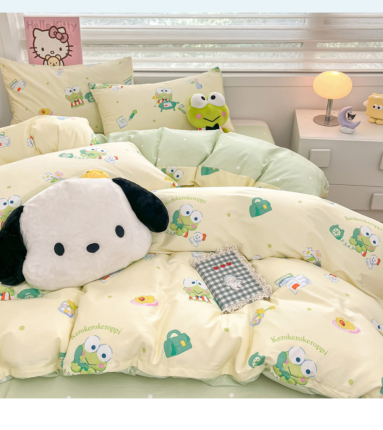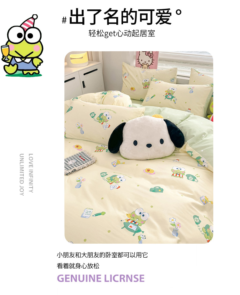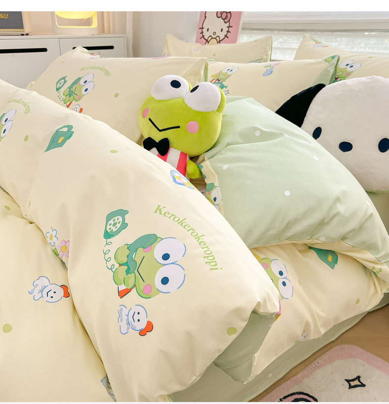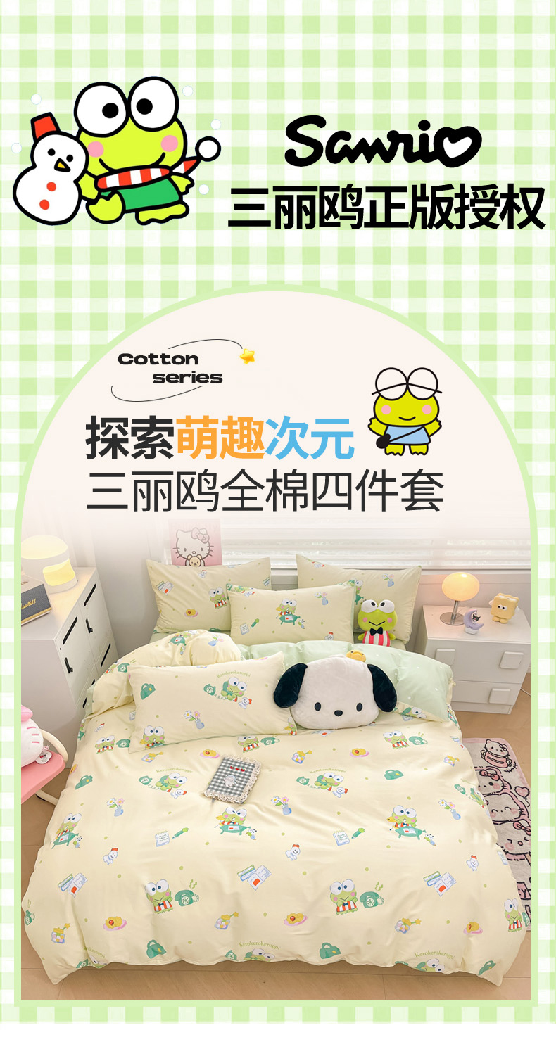 当前位置: 91家纺网 > 商品网购 > 床品套件 > 四件套 > 全棉普通四件套 > 暮思家居 2025新款正版授权三丽鸥全棉纯棉四件套系列-第三批 萌萌大眼蛙