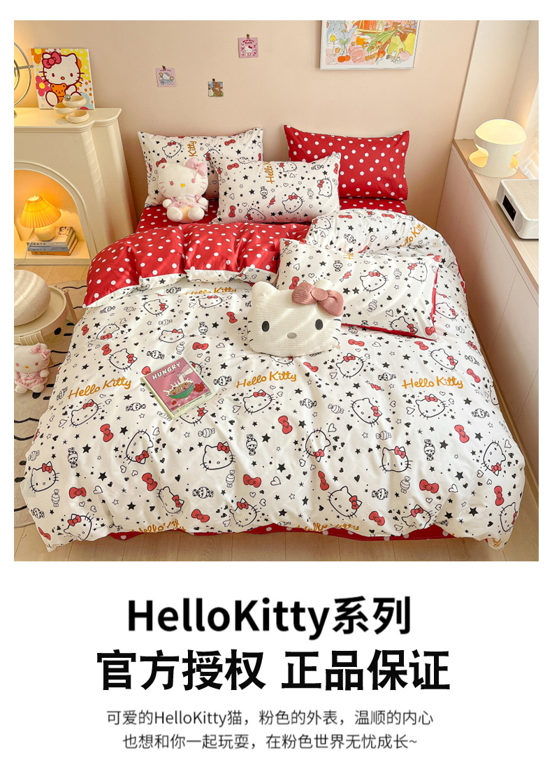 当前位置: 91家纺网 > 商品网购 > 床品套件 > 四件套 > 全棉普通四件套 > 暮思家居 2025新款正版授权三丽鸥全棉纯棉四件套系列-第三批 糖果KT