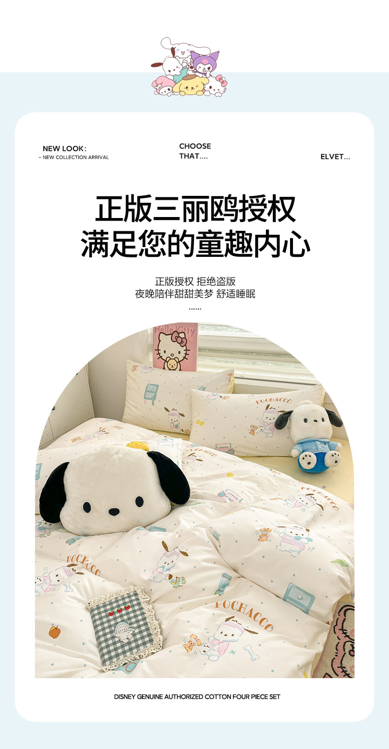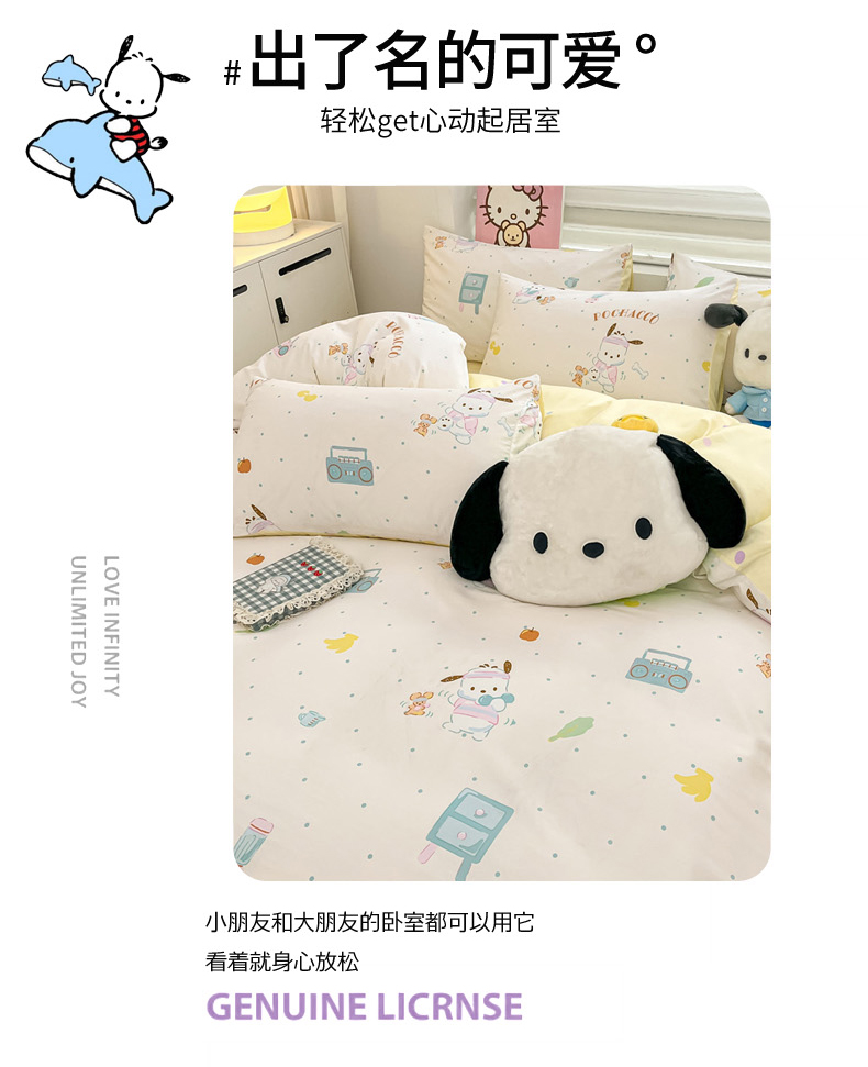 当前位置: 91家纺网 > 商品网购 > 床品套件 > 四件套 > 全棉普通四件套 > 暮思家居 2025新款正版授权三丽鸥全棉纯棉四件套系列-第三批 运动帕恰狗