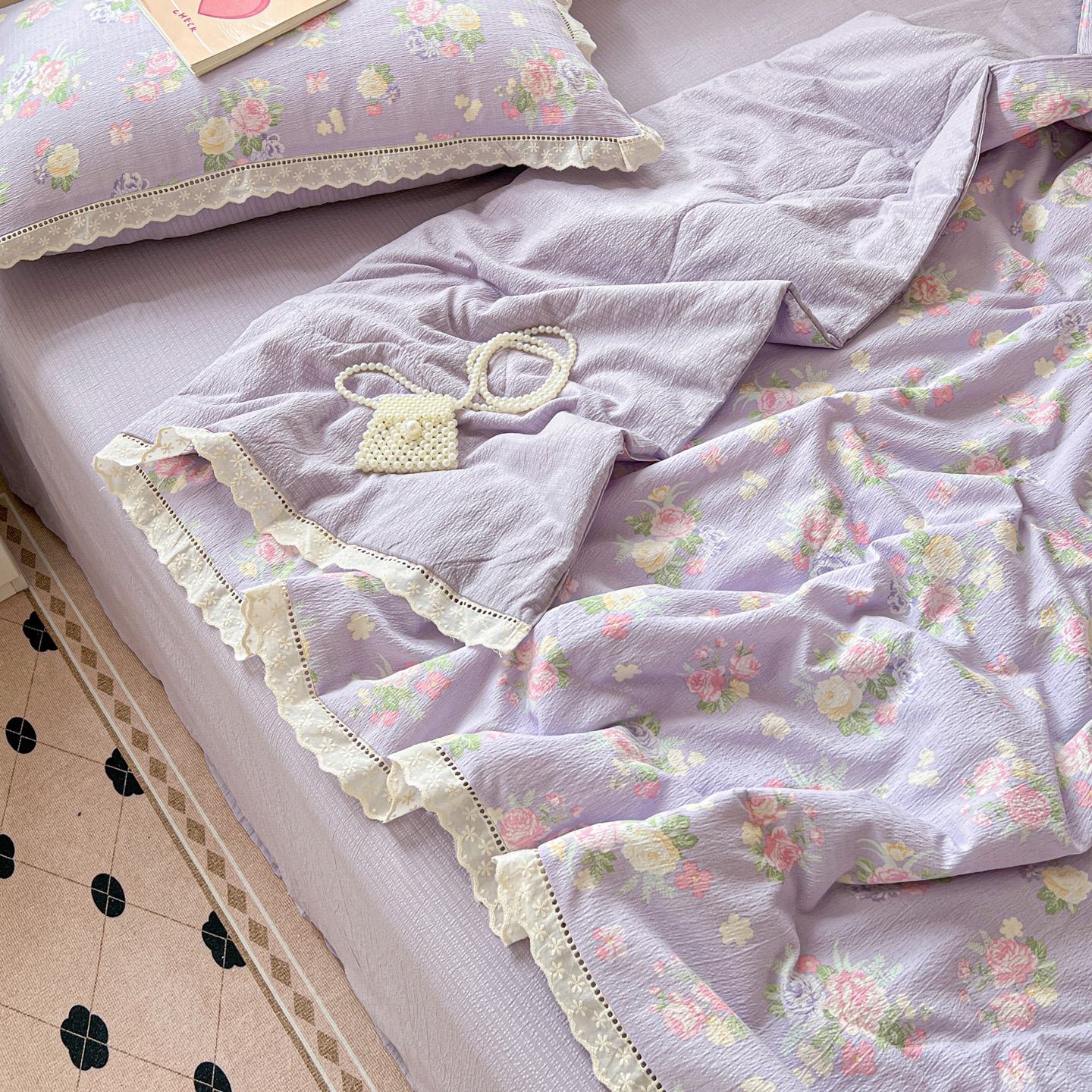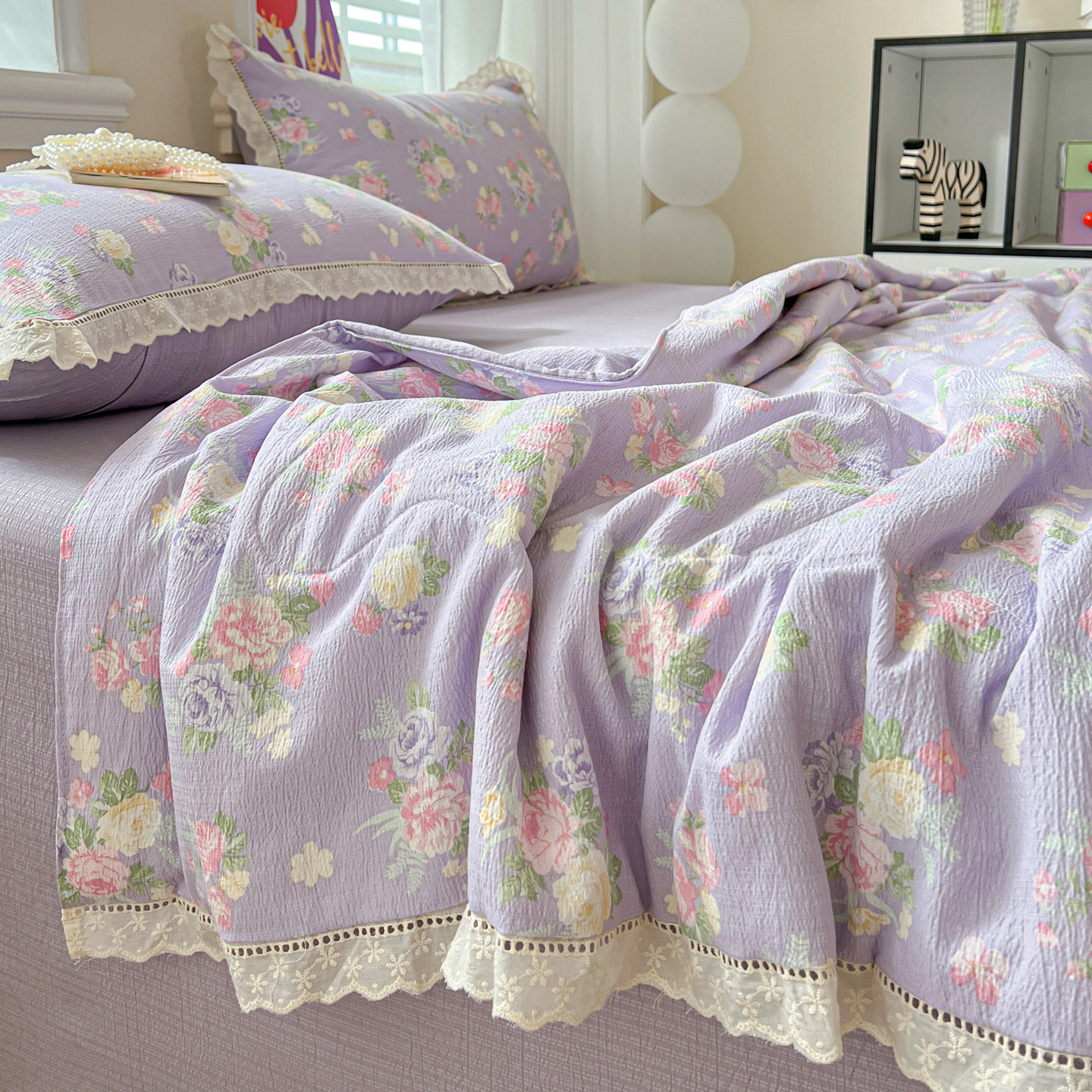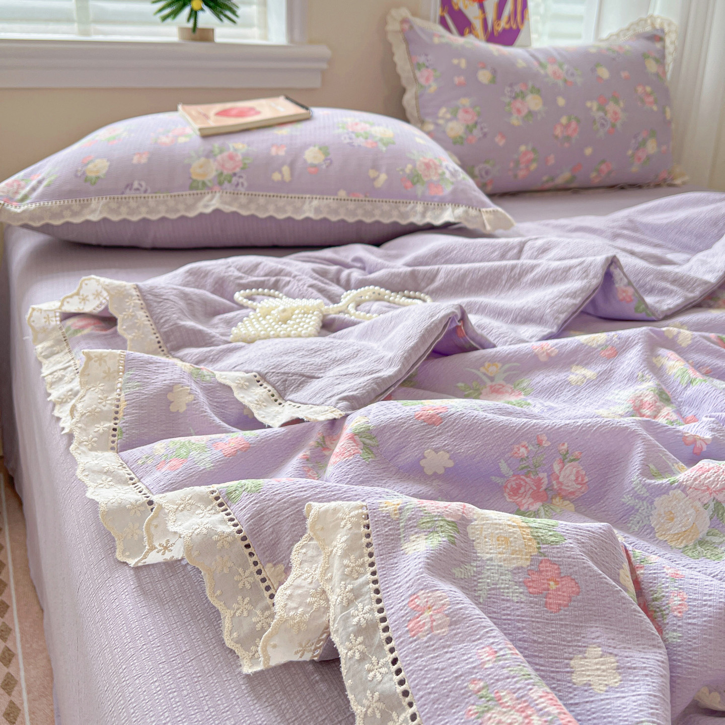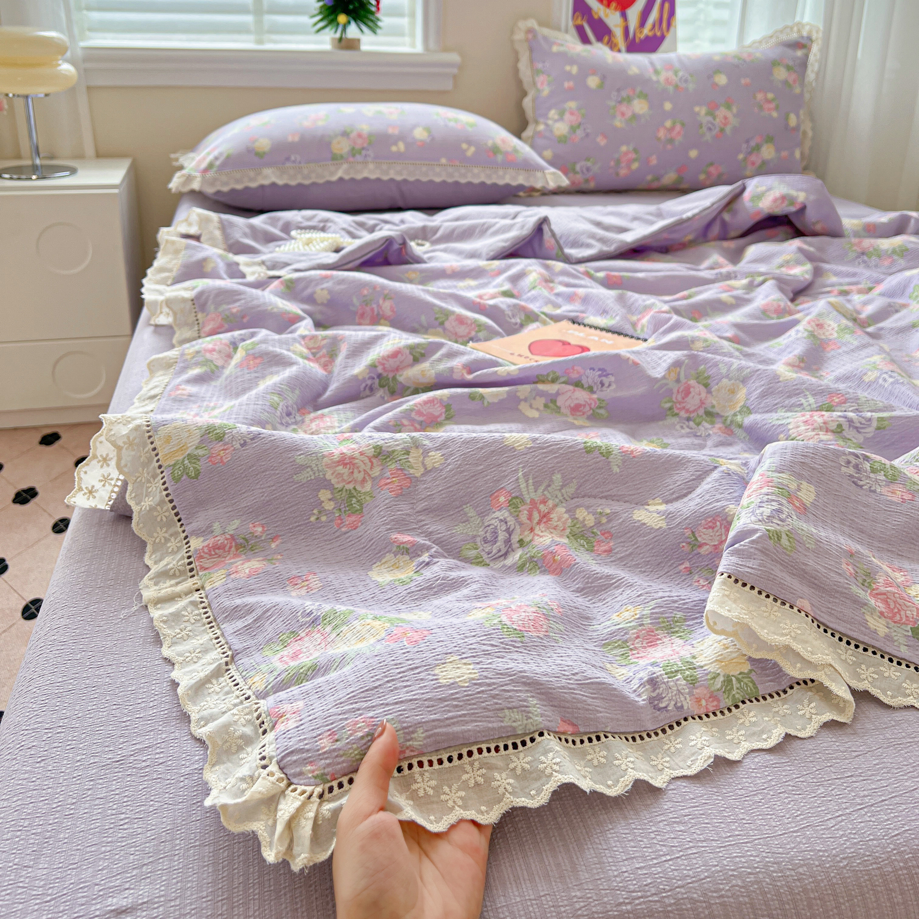 2025新款云感皱皱纱全棉花边款夏被四件套 黎漫