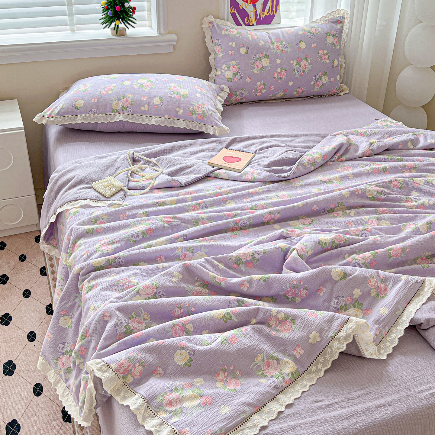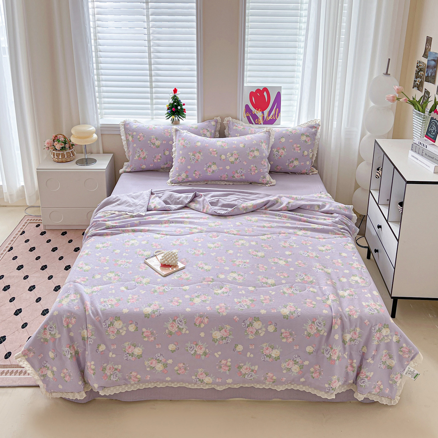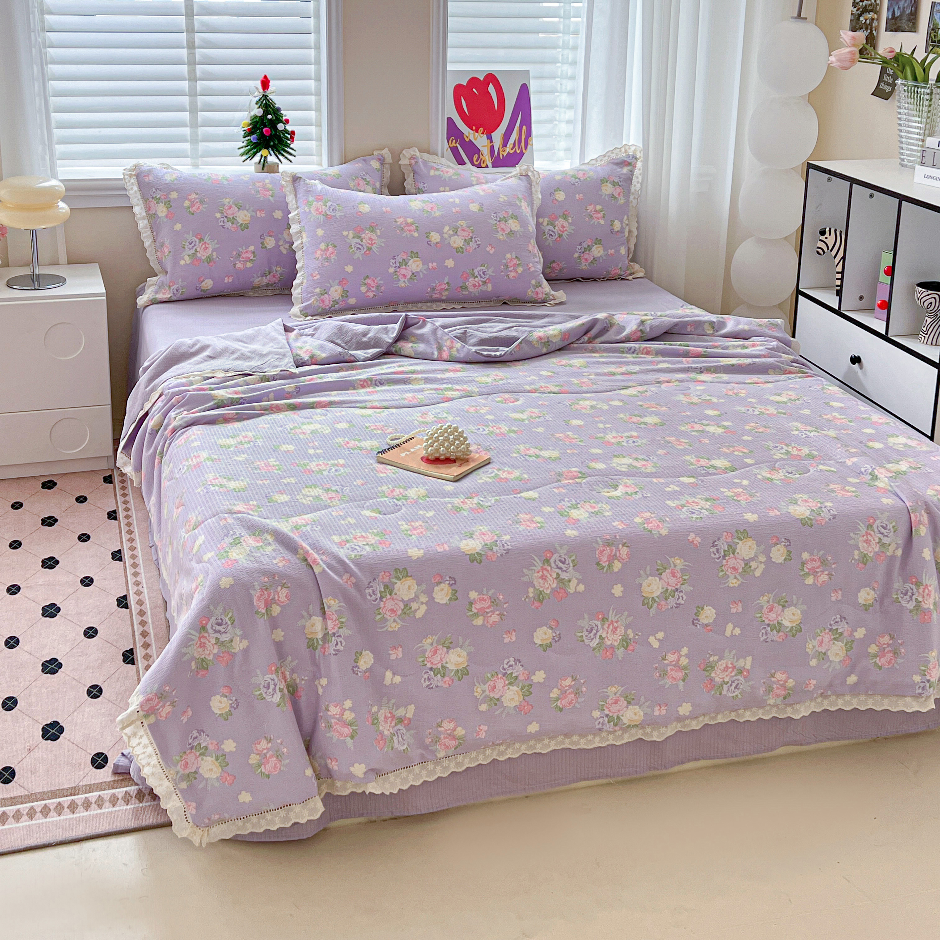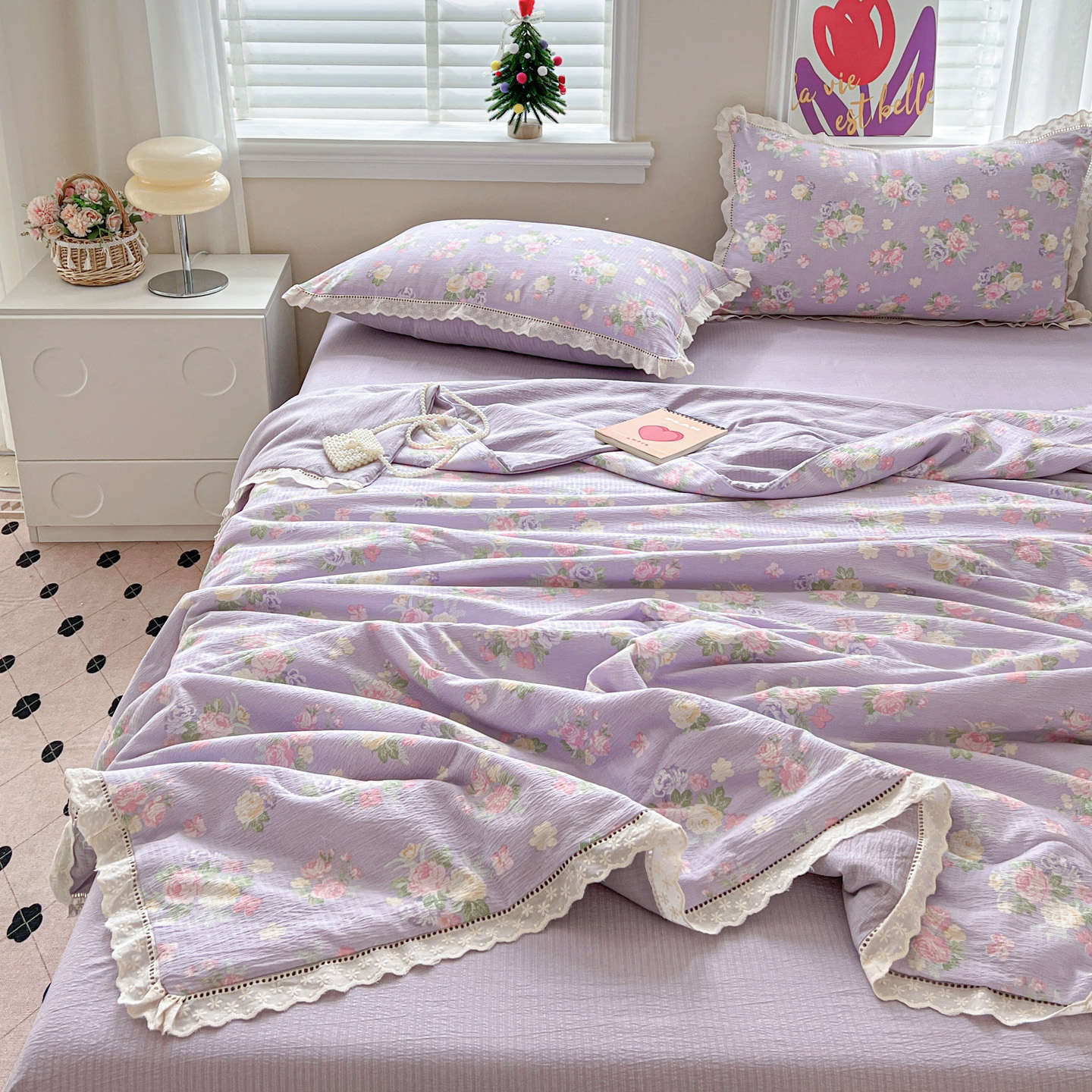2025新款云感皱皱纱全棉花边款夏被四件套 黎漫
