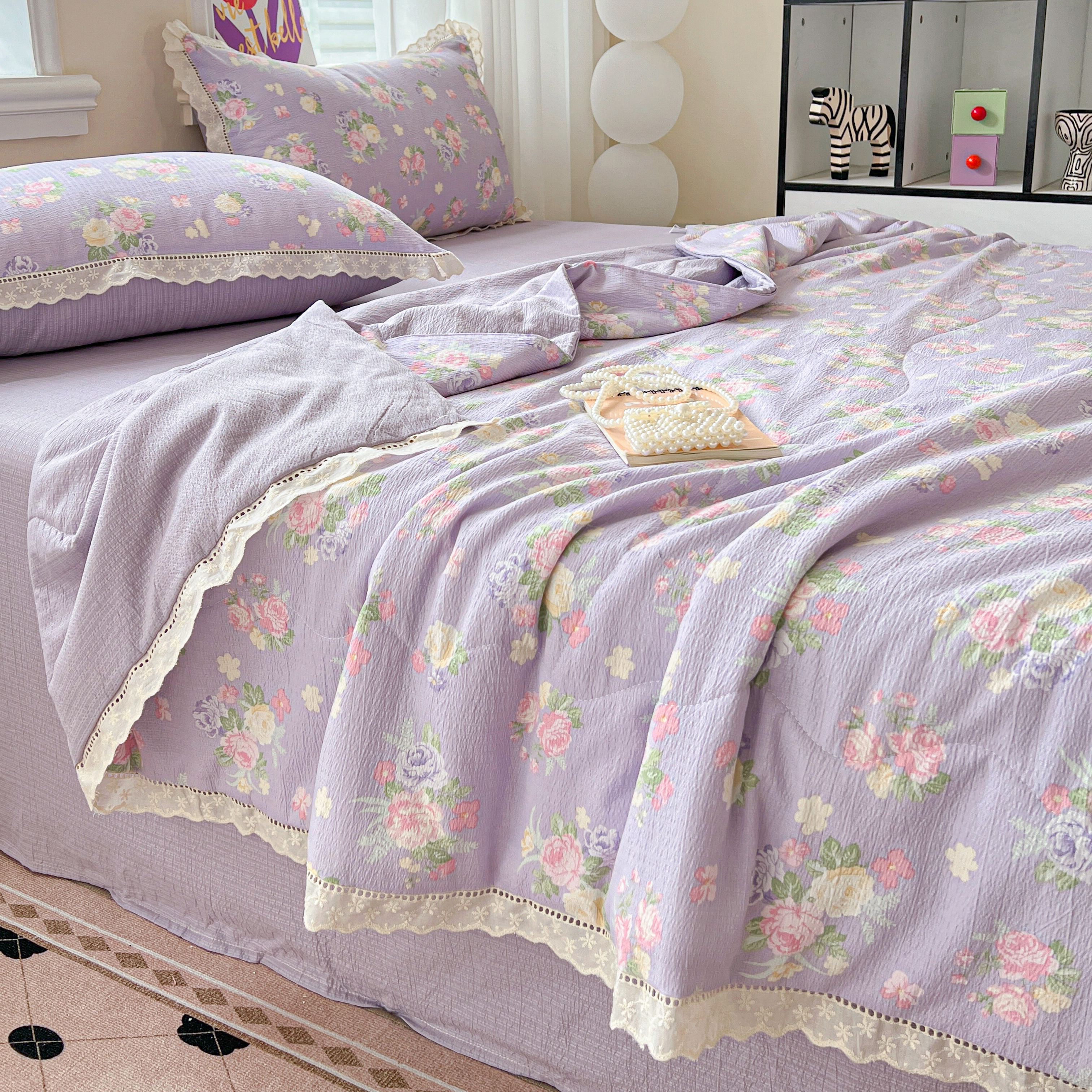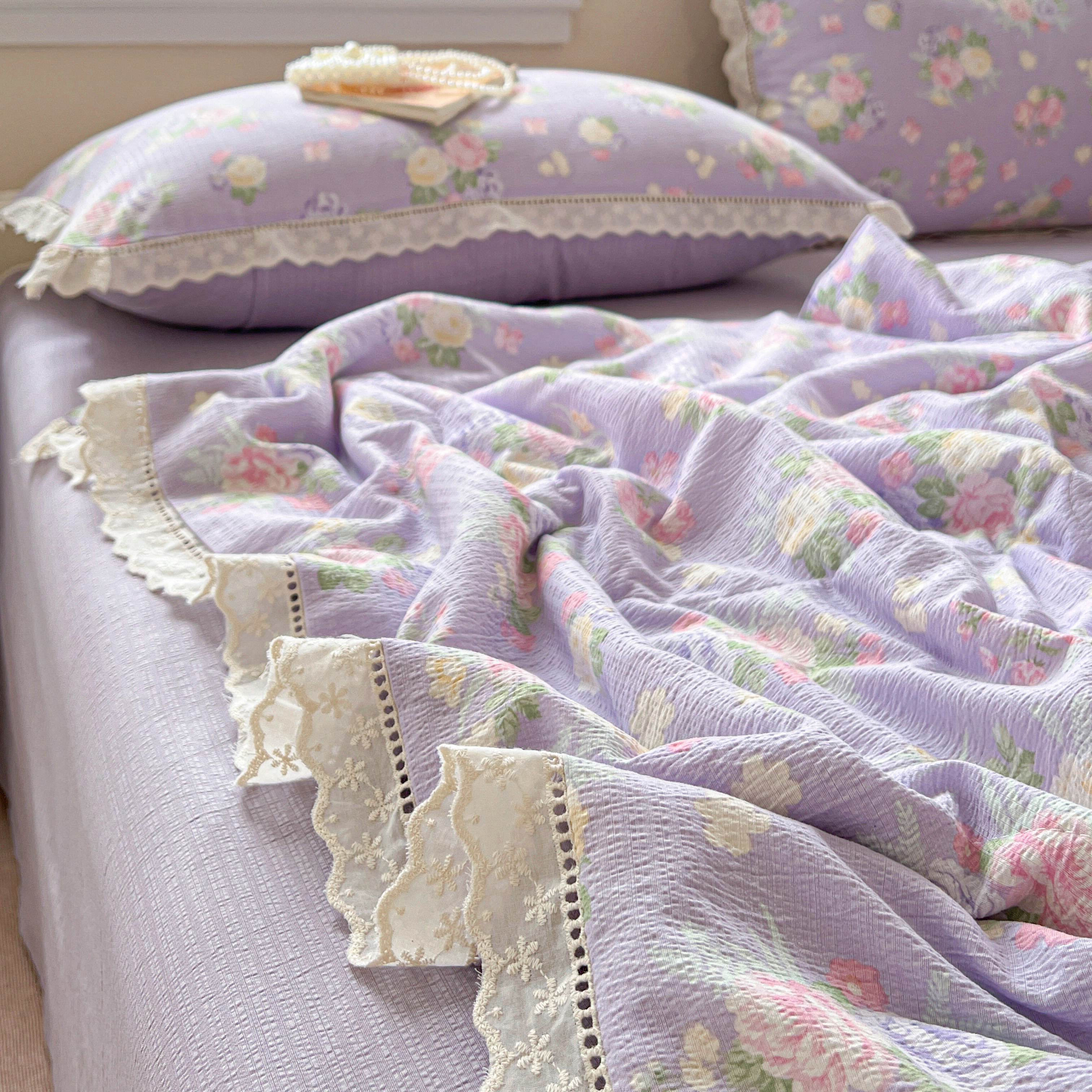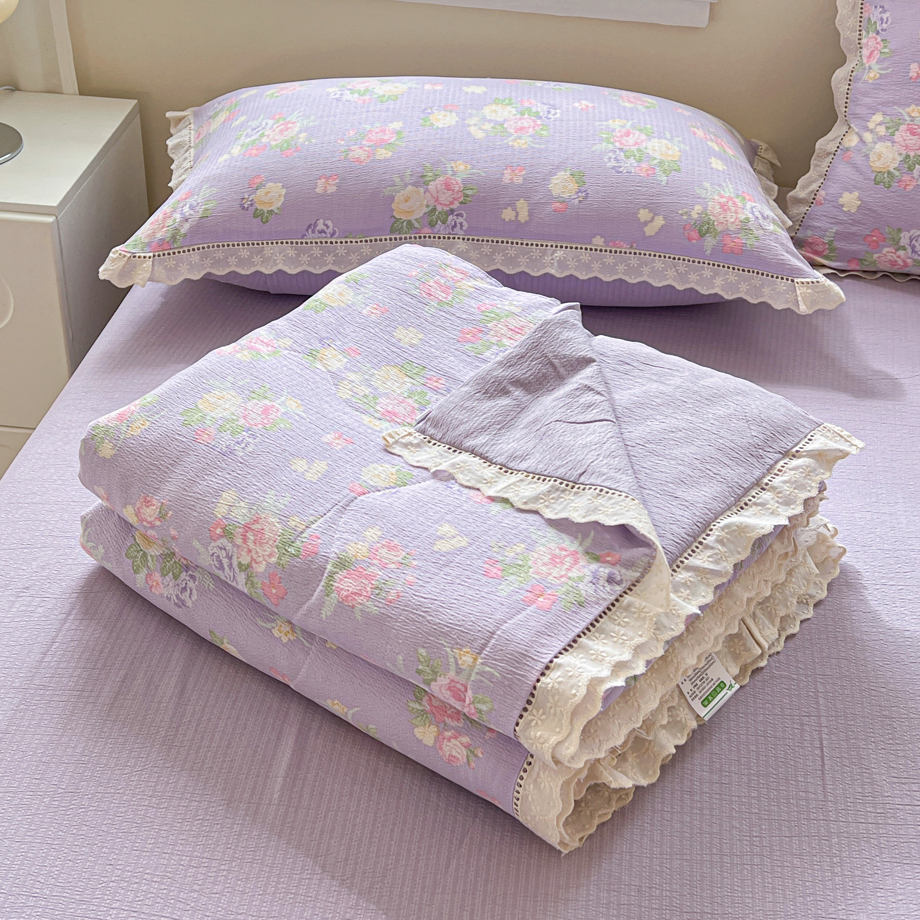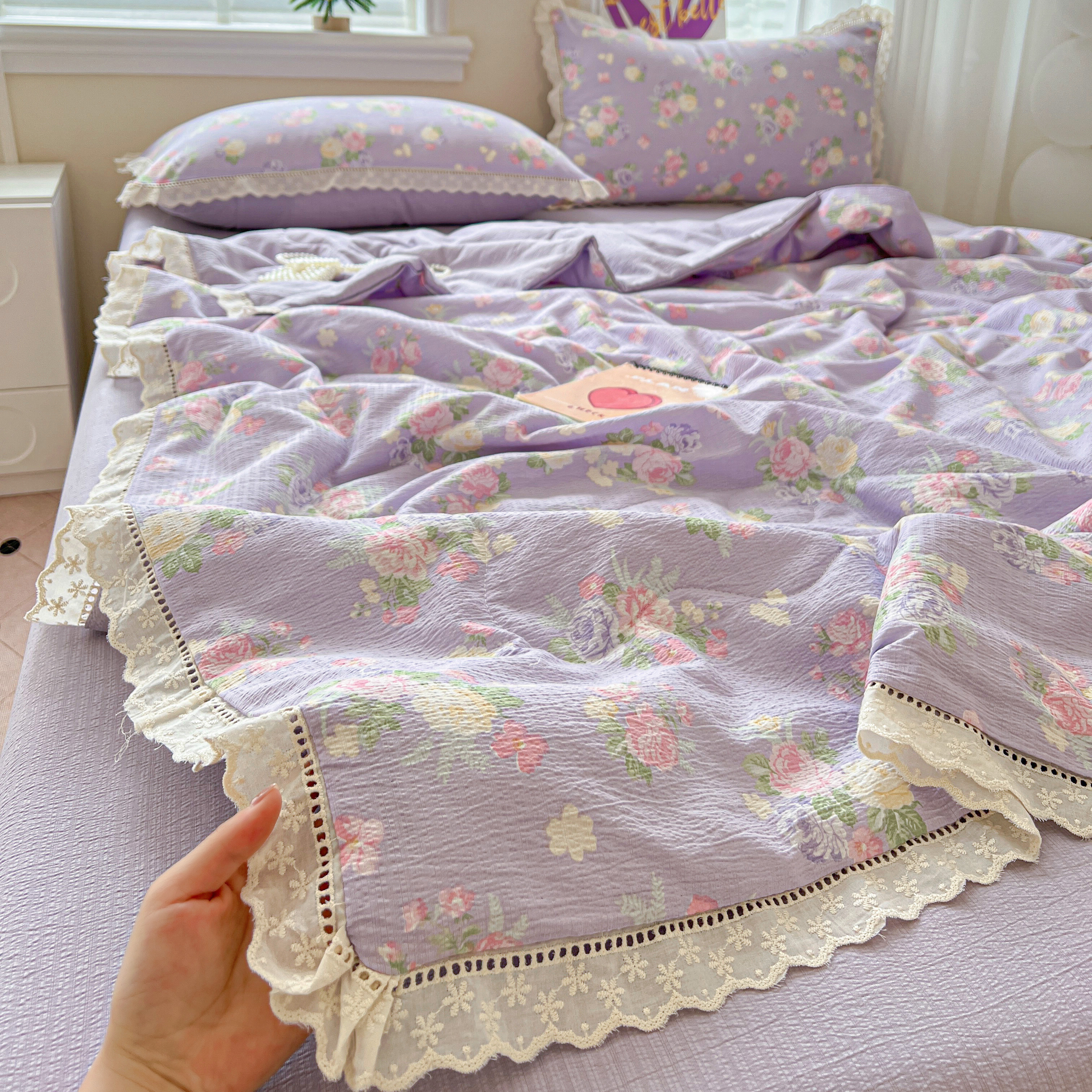 2025新款云感皱皱纱全棉花边款夏被四件套 黎漫