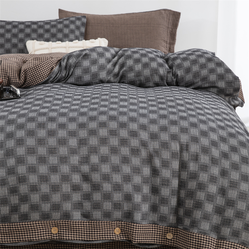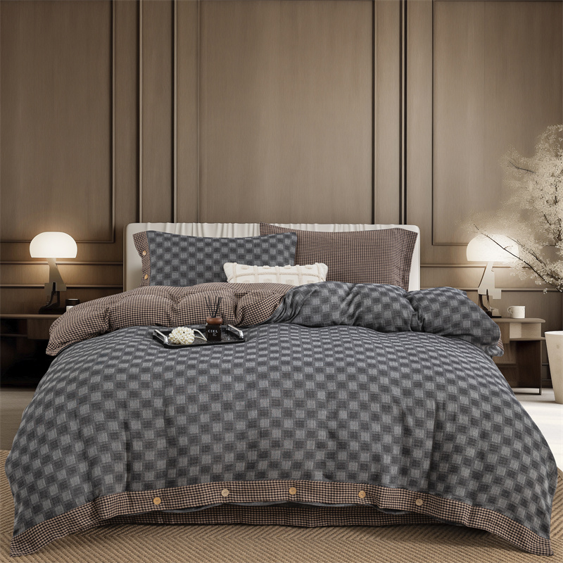 (总)双层纱家居 2025新款黑大格双层纱四件套,黑大格
