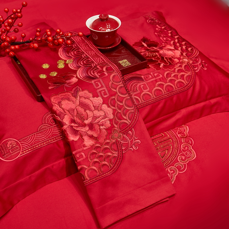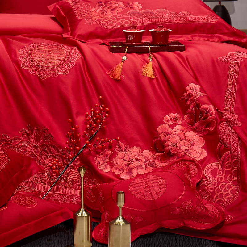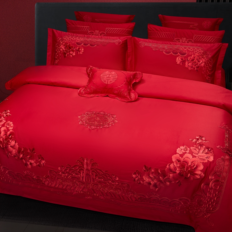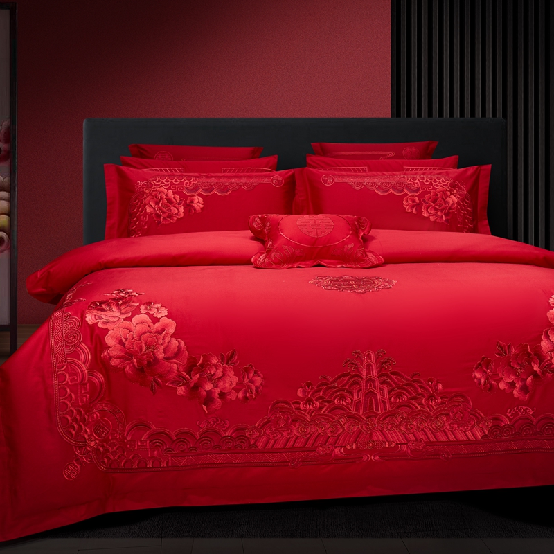 当前位置: 91家纺网 > 商品网购 > 床品套件 > 四件套 > 婚庆四件套 > 布乐意 2025新款全棉长绒棉贡缎提花全工艺喷气重工新中式绣花大红婚庆四件套多件套直播金玉满堂【红】