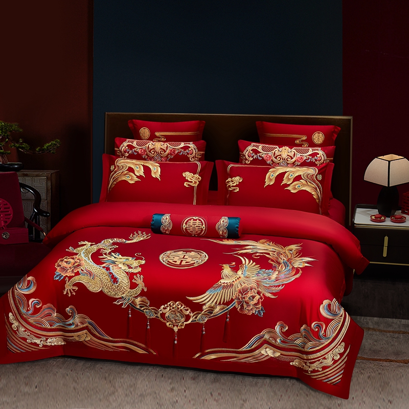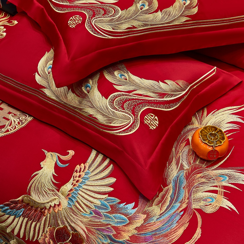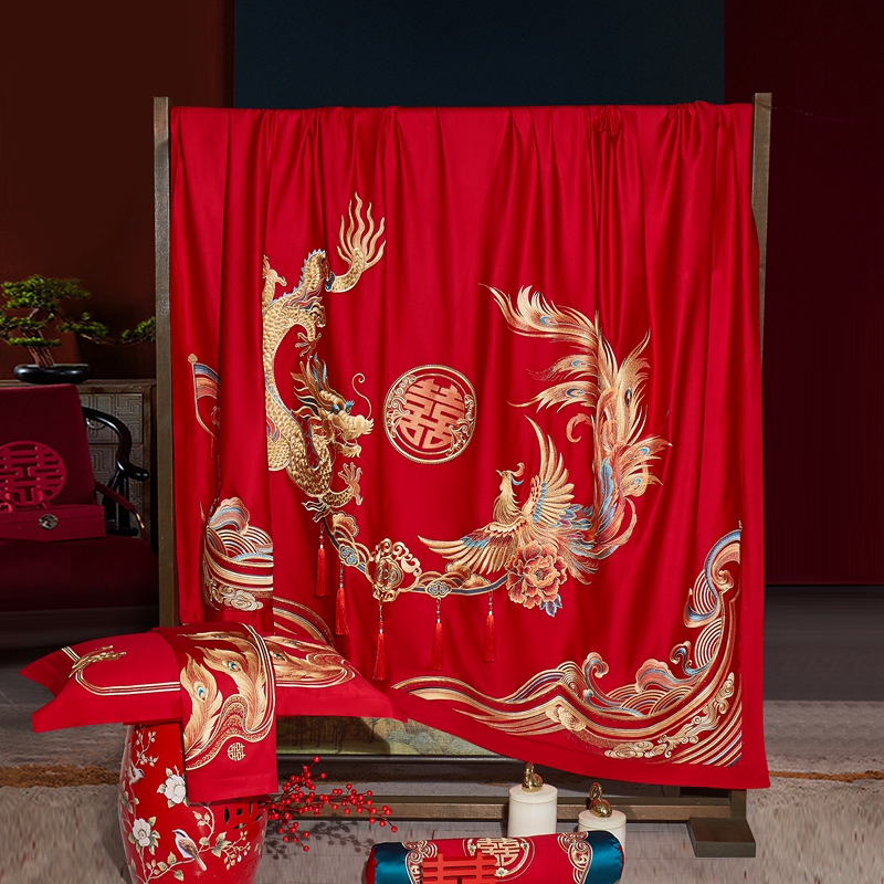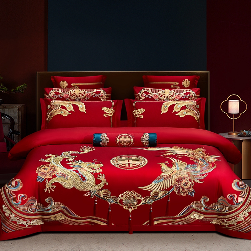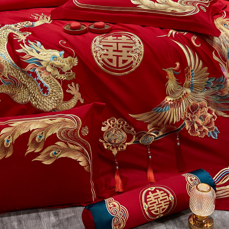 当前位置: 91家纺网 > 商品网购 > 床品套件 > 四件套 > 婚庆四件套 > 布乐意 2025新款全棉长绒棉贡缎提花全工艺喷气重工新中式绣花大红婚庆四件套多件套直播龙凤佳人