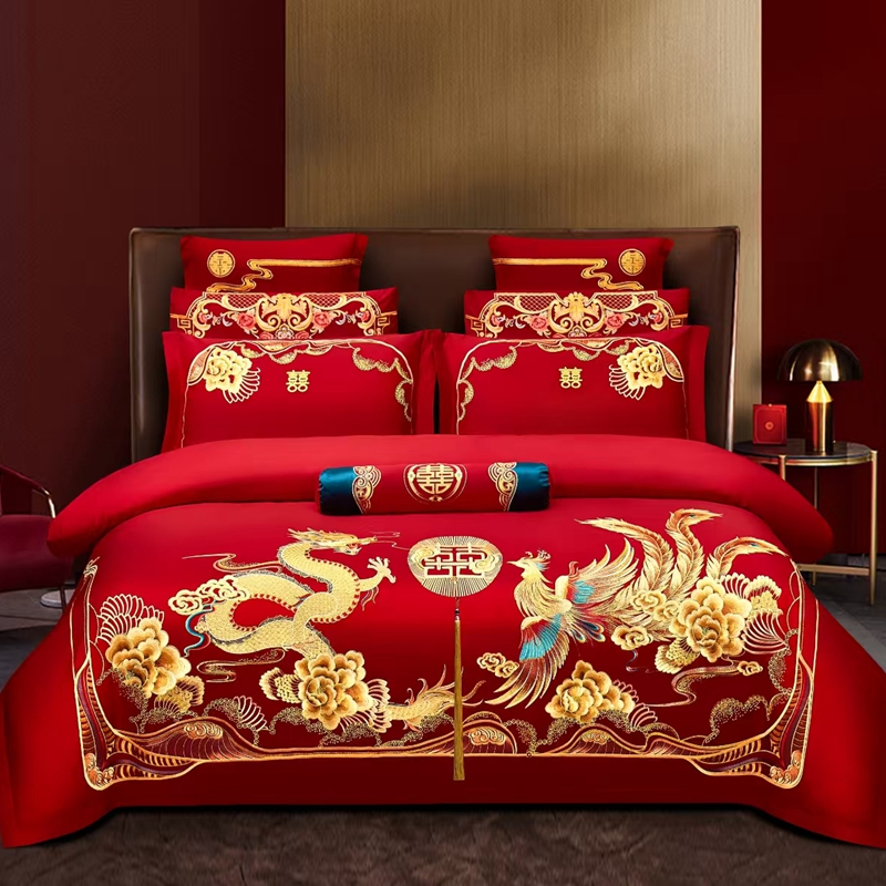 当前位置: 91家纺网 > 商品网购 > 床品套件 > 四件套 > 婚庆四件套 > 布乐意 2025新款全棉长绒棉贡缎提花全工艺喷气重工新中式绣花大红婚庆四件套多件套直播盛世龙凤(140s)