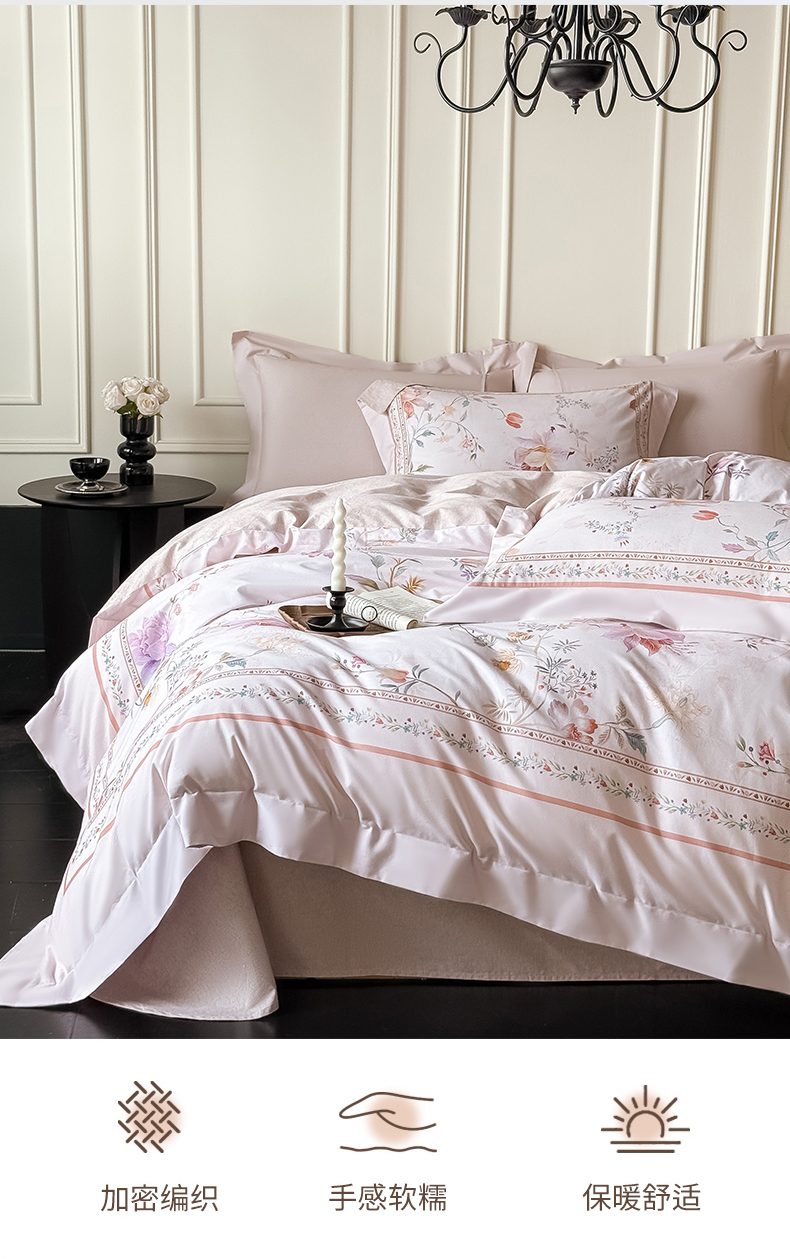 (总)朵希曼 2026新款轻奢全棉提花系列四件套,蝶恋-粉,极简深蓝,南枝-蓝,晚棠 红,知画-灰,织梦 紫