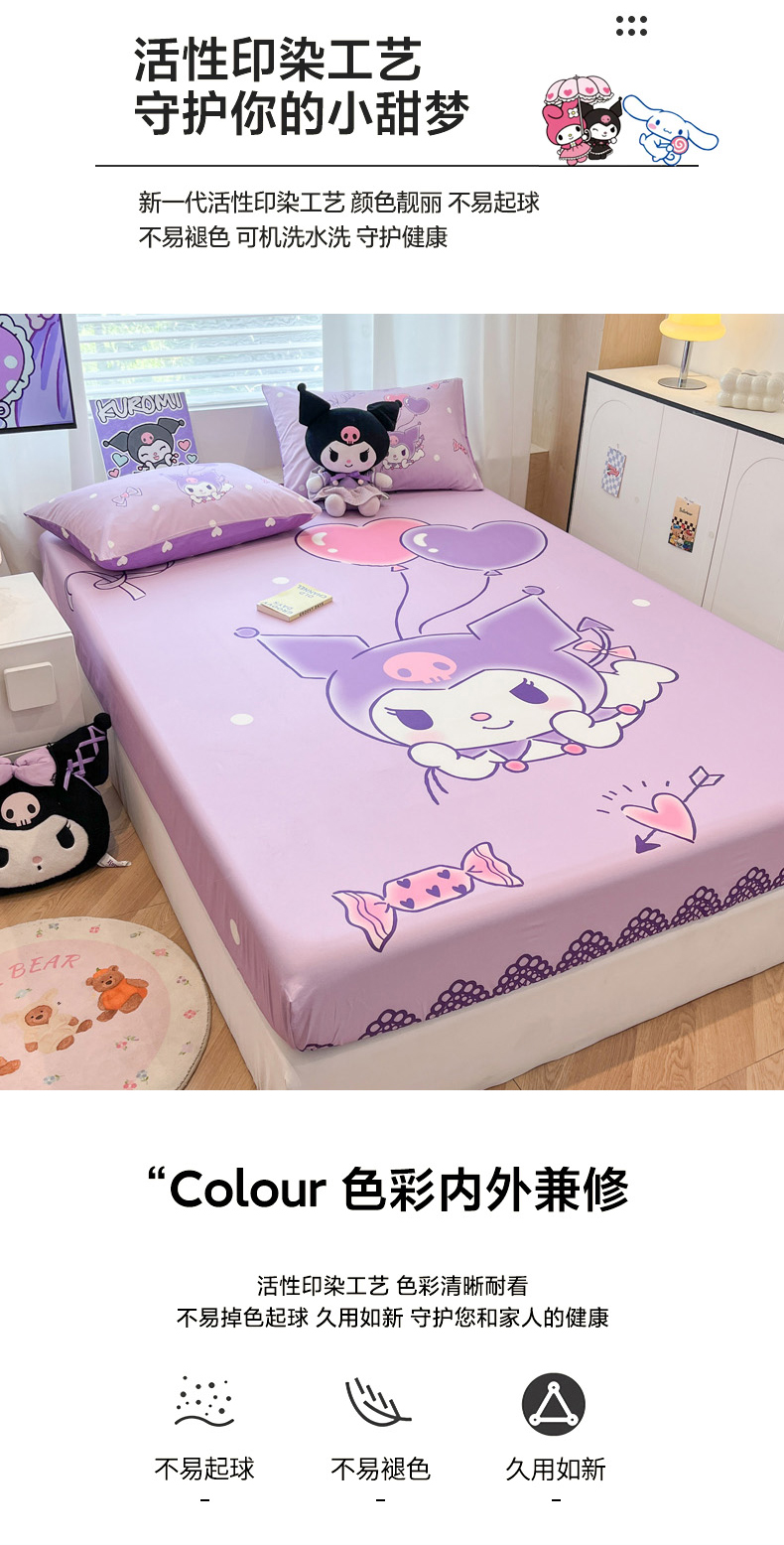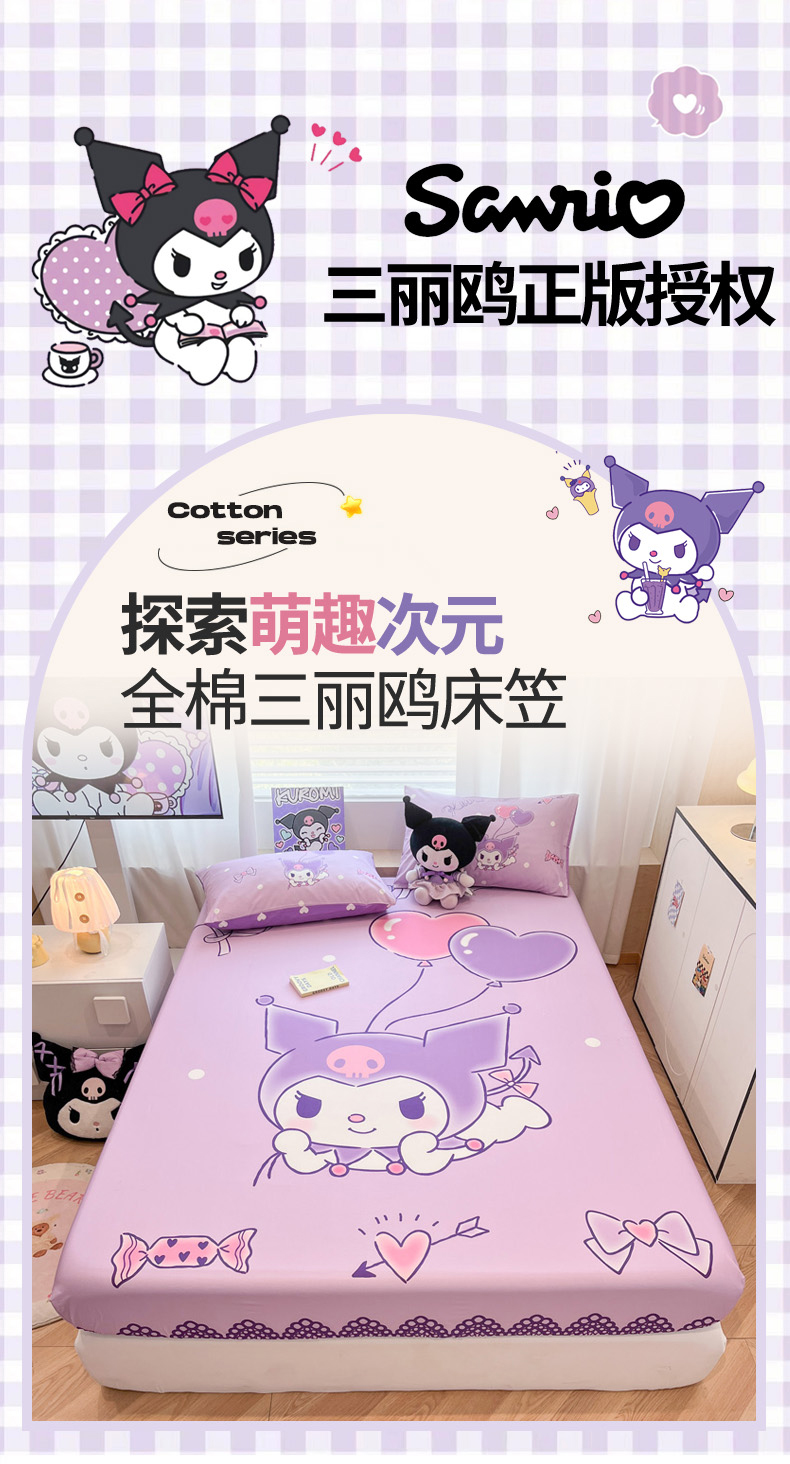 • 91家纺网 家纺一手货源 找家纺 暮思家居 2025新款正版授权三丽鸥大阪全棉数码印花纯棉单品床笠床笠单件单床笠(专版花型) 棉A版-梦想库洛米