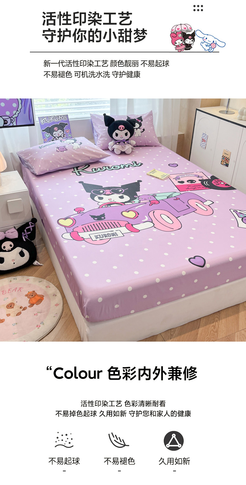 • 91家纺网 家纺一手货源 找家纺 暮思家居 2025新款正版授权三丽鸥大阪全棉数码印花纯棉单品床笠床笠单件单床笠(专版花型) 棉A版-小汽车库洛米