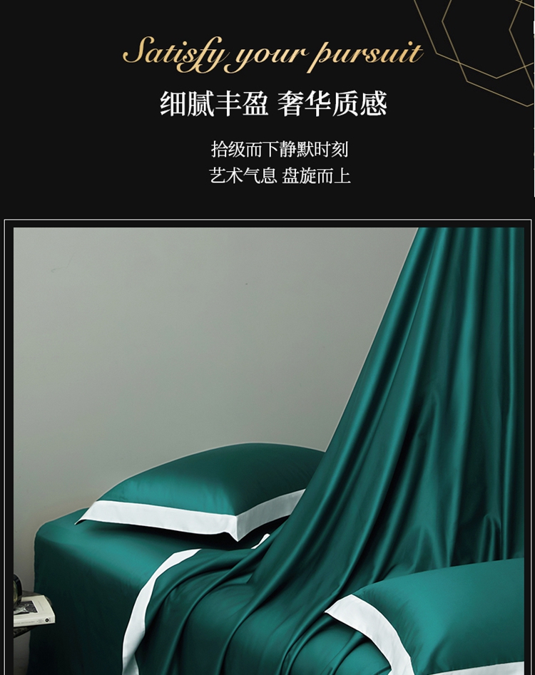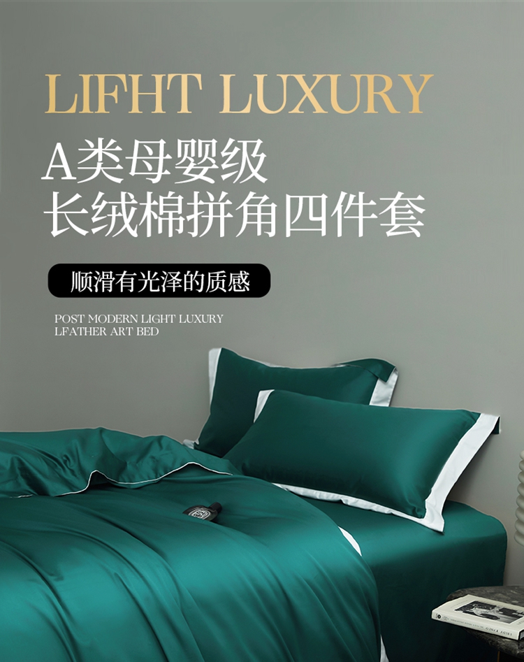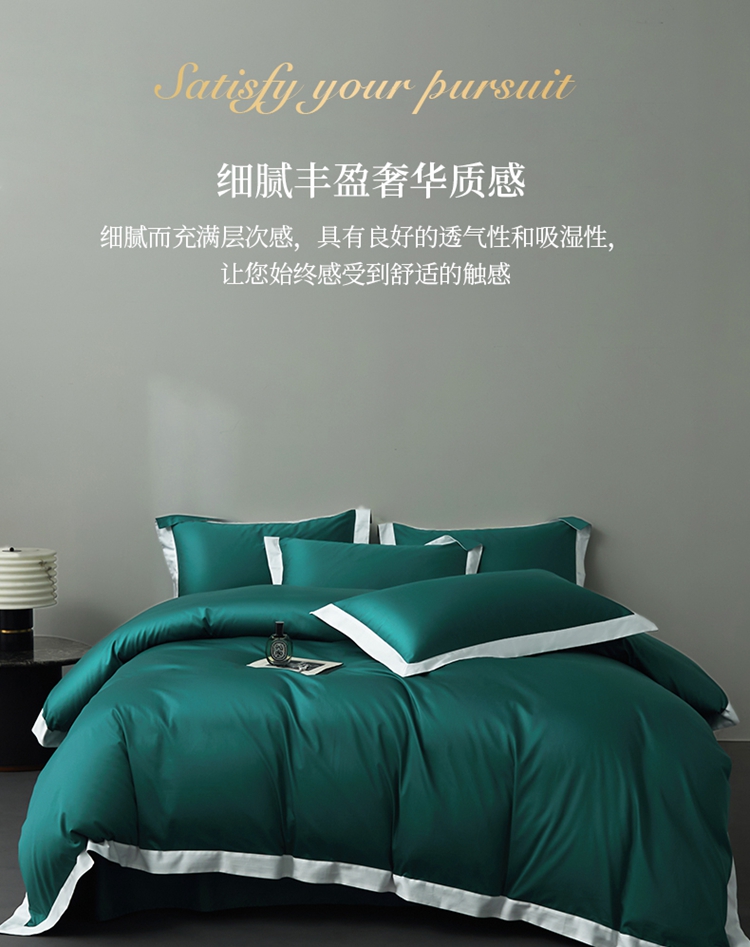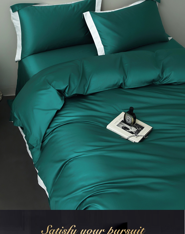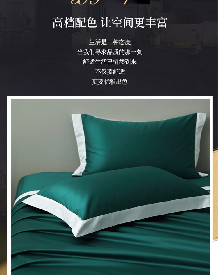 商品名称:柔觉家纺 新款50*50双股长绒棉纯色拼角四件套 雅-黛绿色