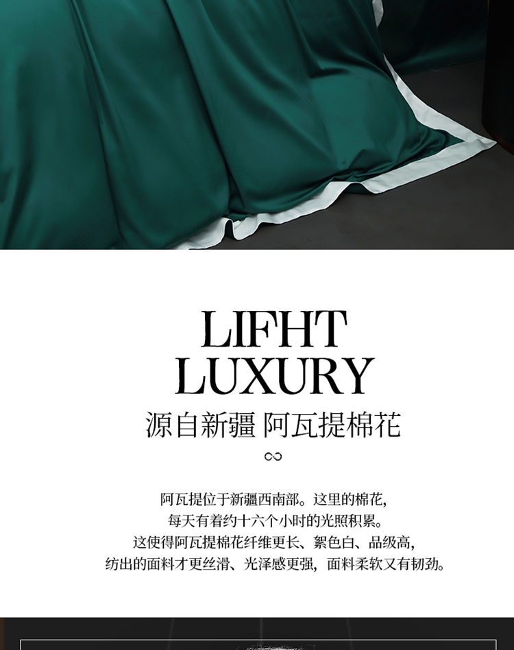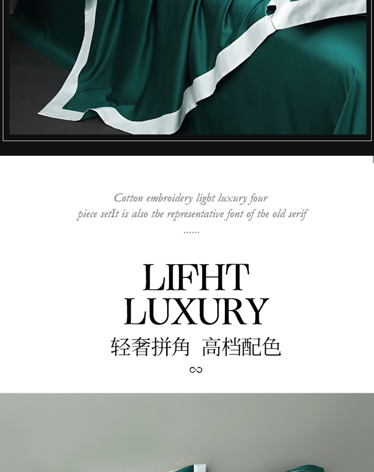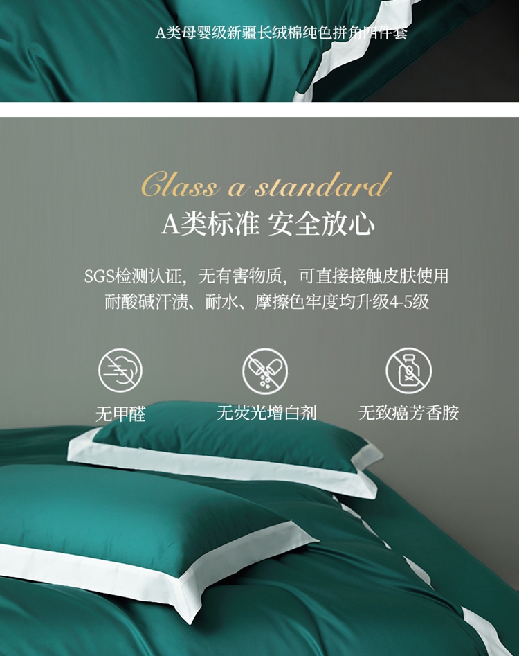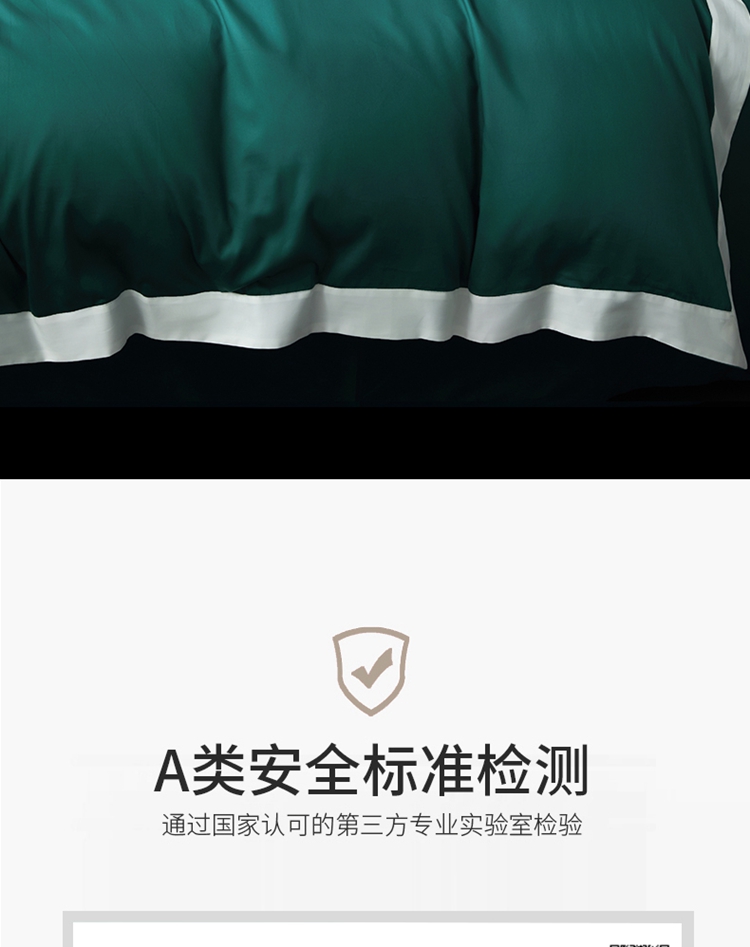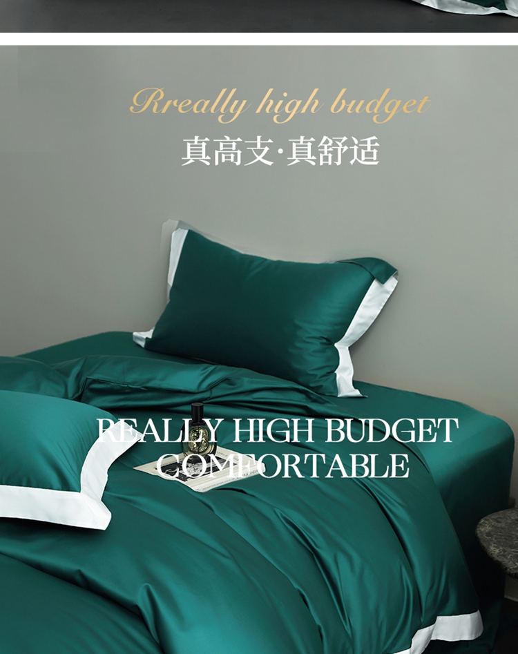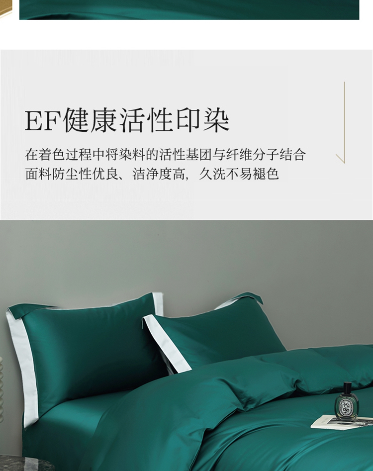 商品名称:柔觉家纺 新款50*50双股长绒棉纯色拼角四件套 雅-黛绿色