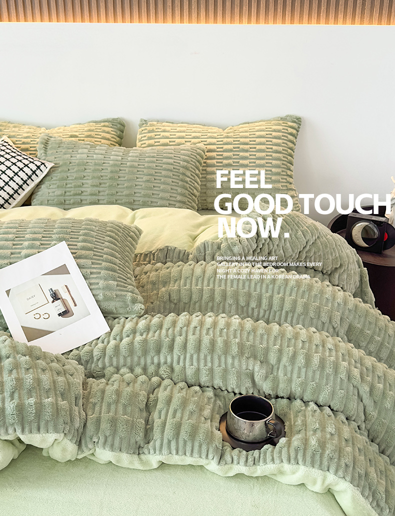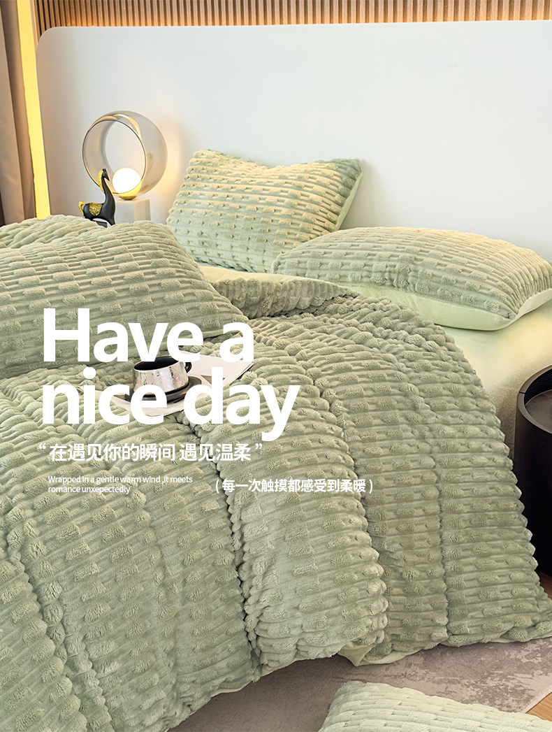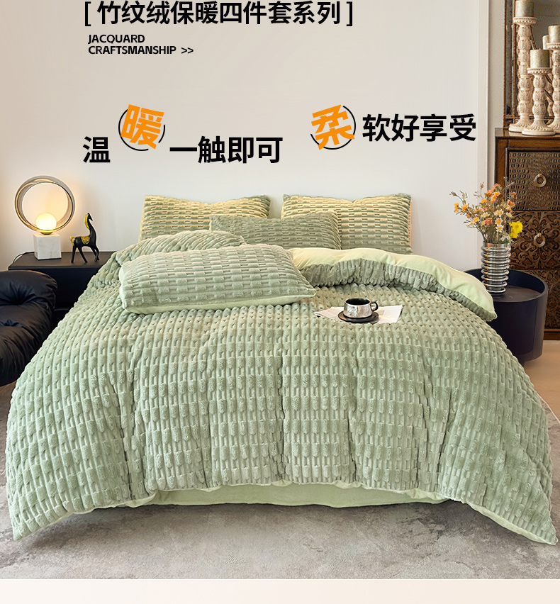 当前位置: 91家纺网 > 商品网购 > 床品套件 > 四件套 > 牛奶绒四件套 > 潮邦创意家居 2025冬季竹纹绒牛奶绒四件套-暖绒竹韵系列 暖绒竹韵-艾绿