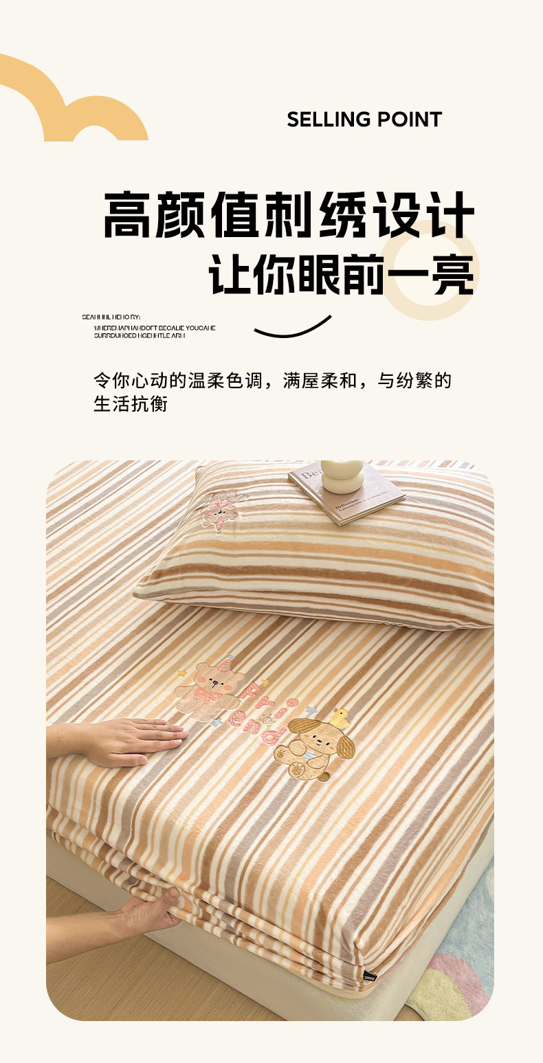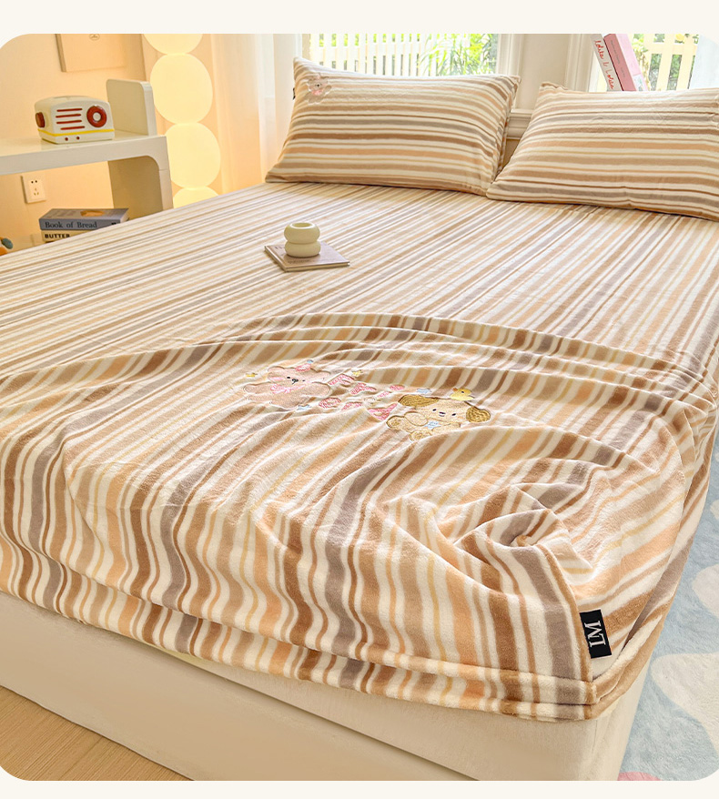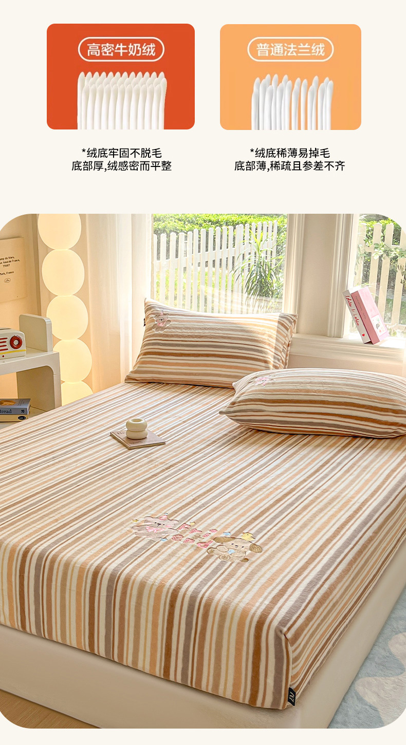 乐美家纺 2025新款A类高克重刺绣牛奶绒床笠三件套 小熊奶盖