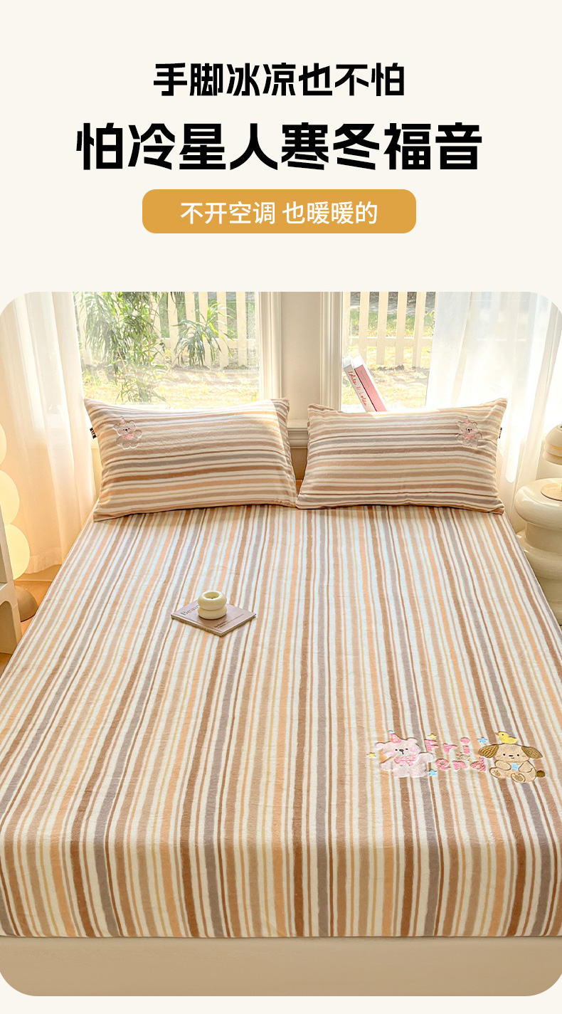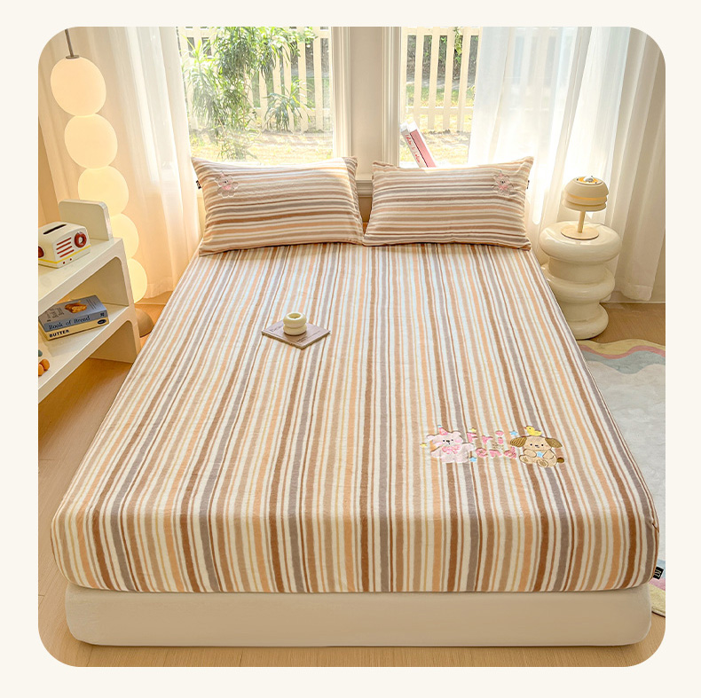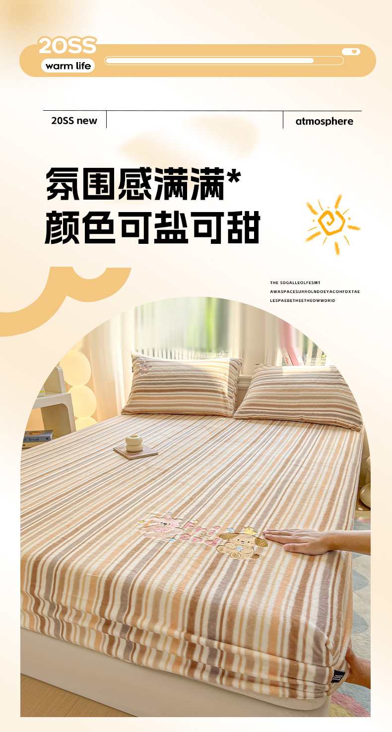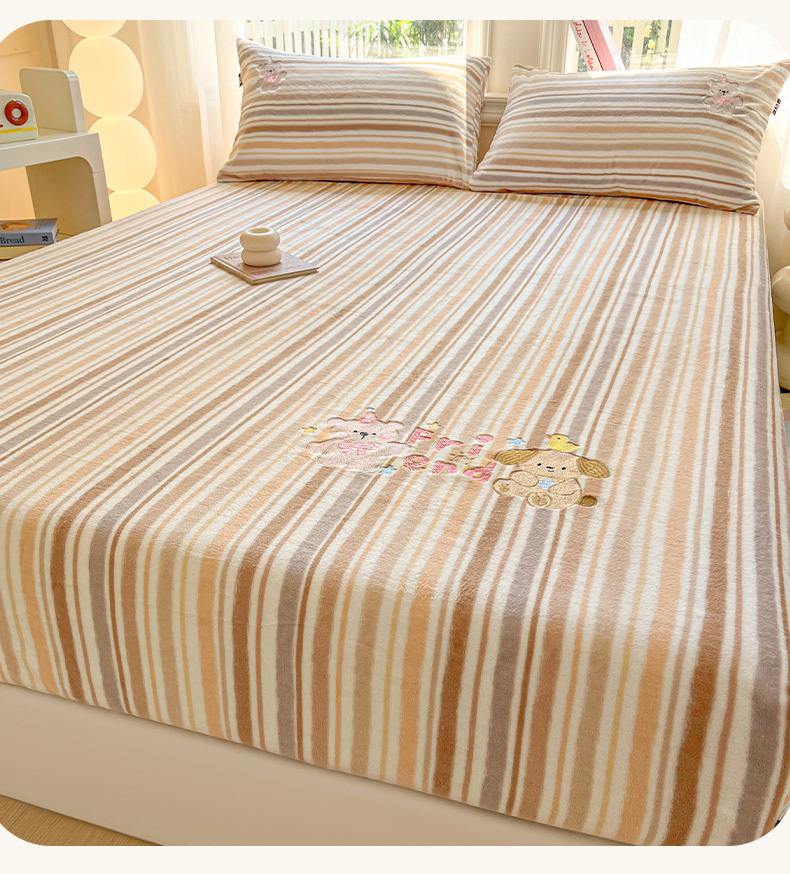 乐美家纺 2025新款A类高克重刺绣牛奶绒床笠三件套 小熊奶盖