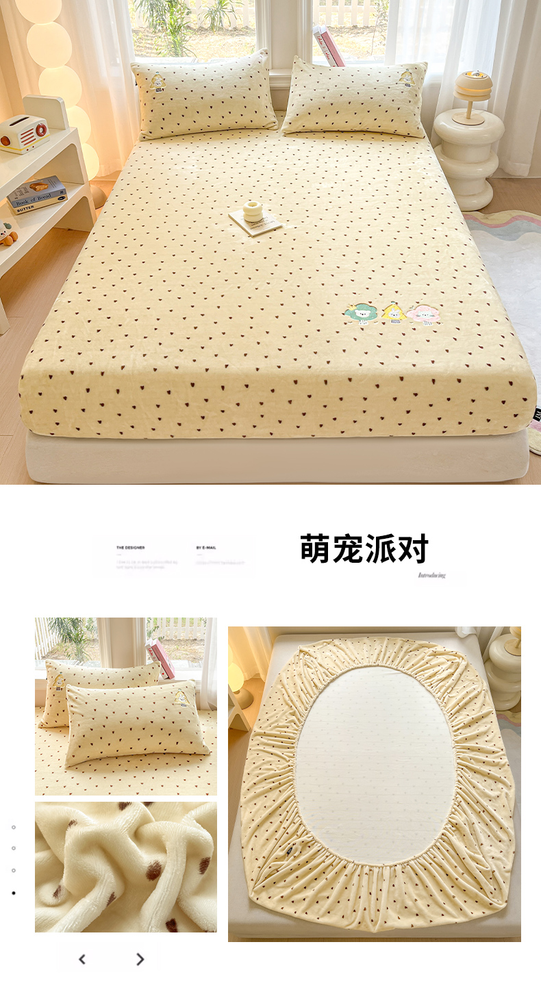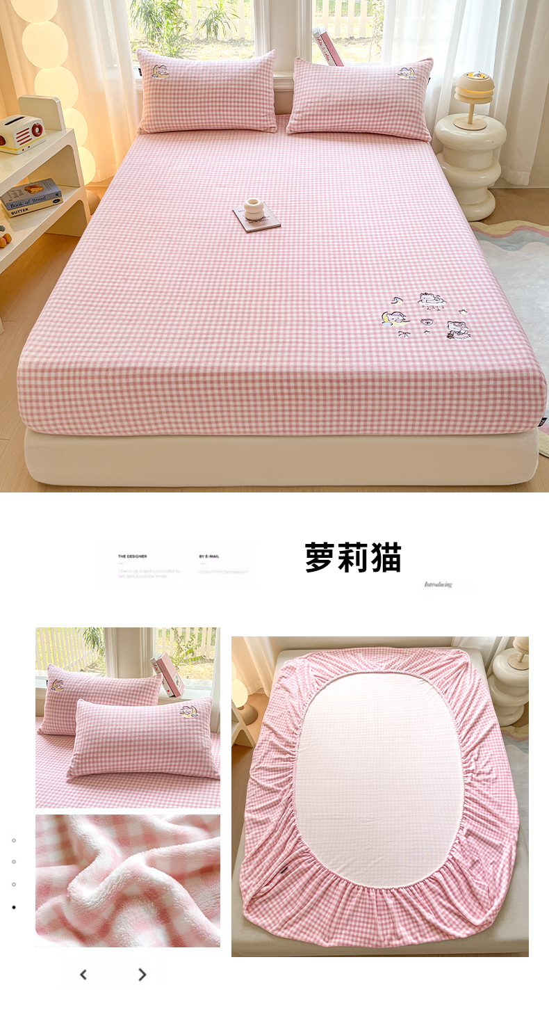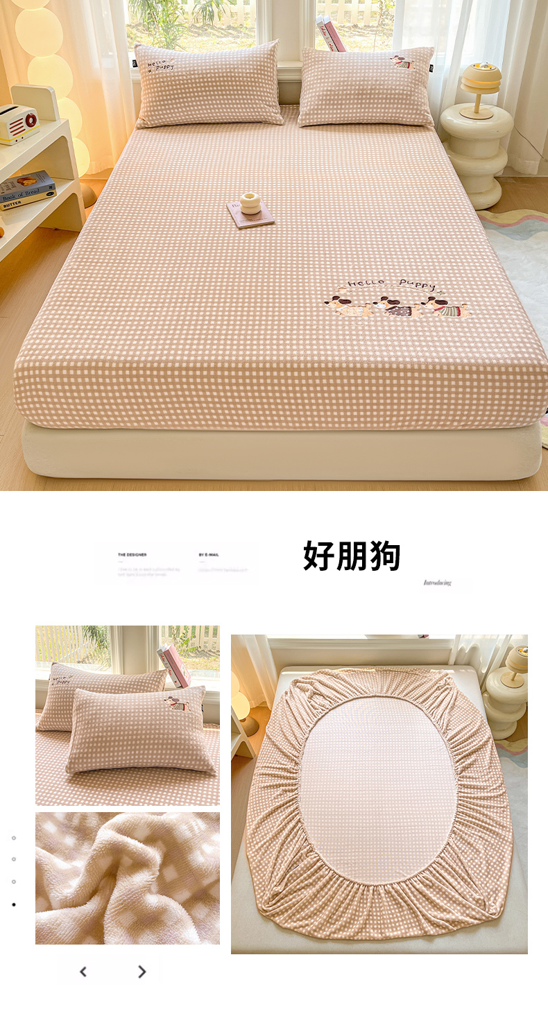 (总)乐美家纺 2025新款A类高克重刺绣牛奶绒床笠三件套,好朋狗,森林乐队,熊熊派对,小熊奶盖,萌宠派对,萝莉猫